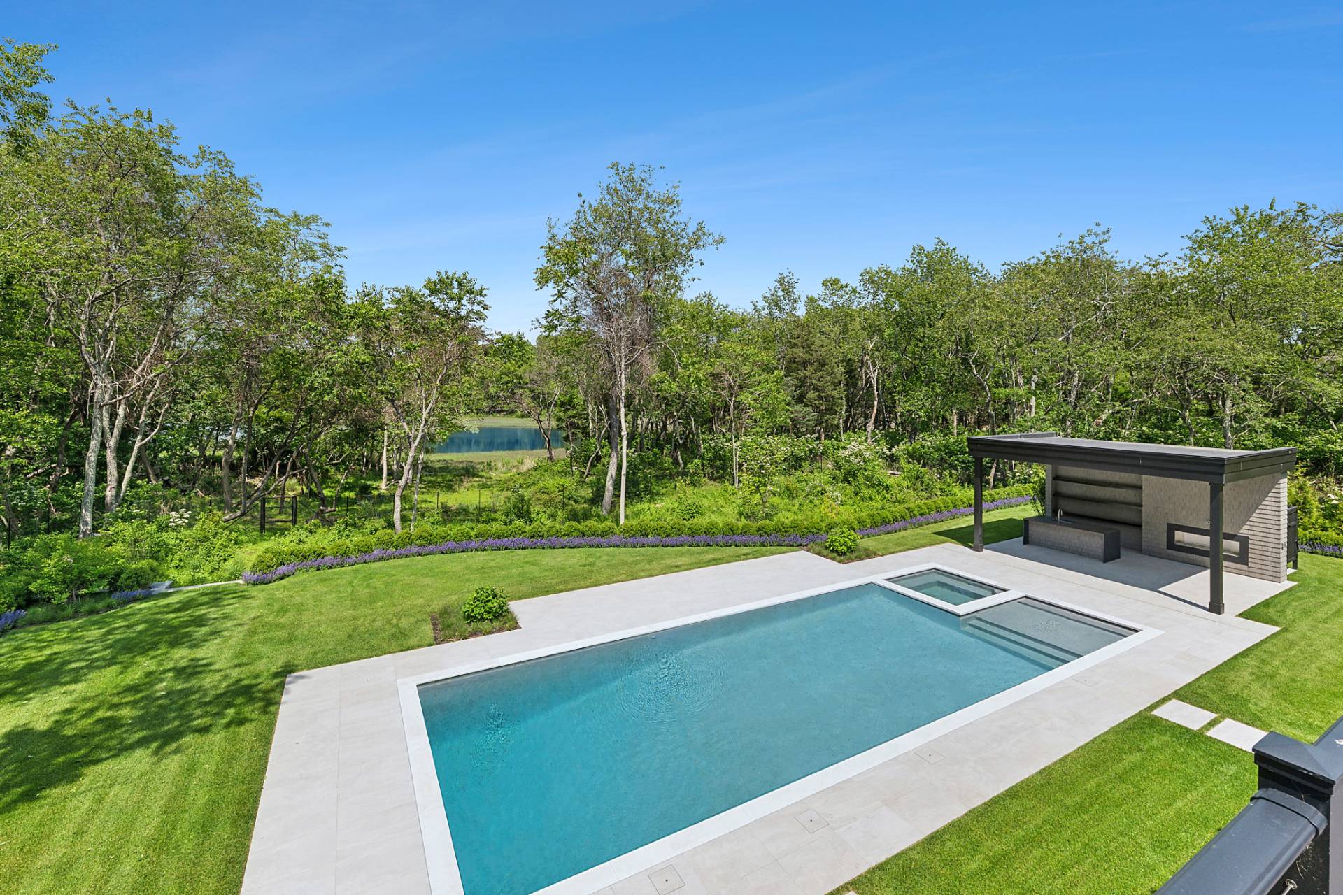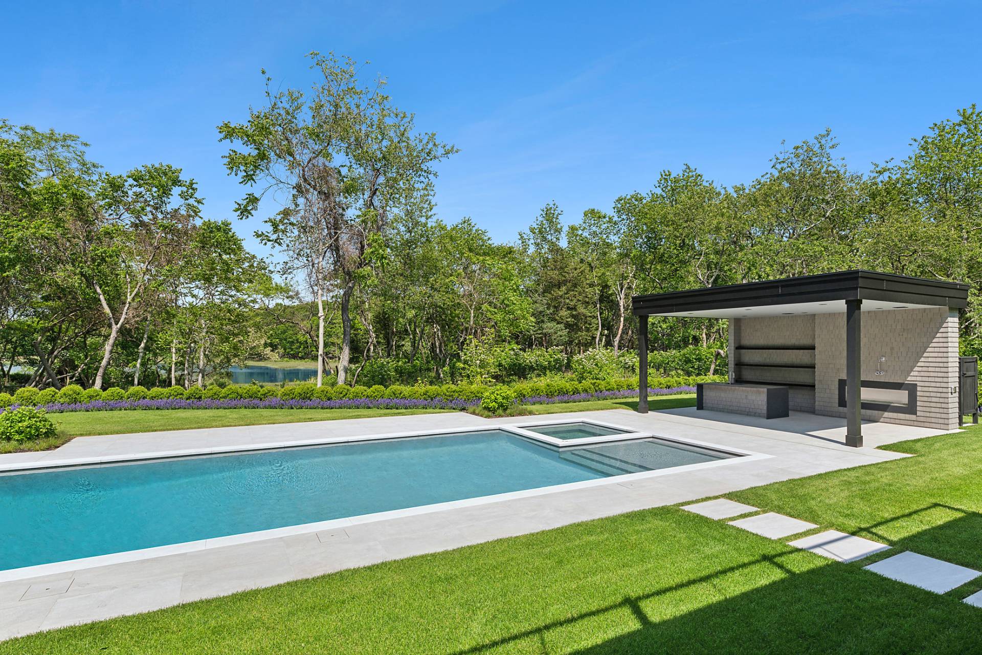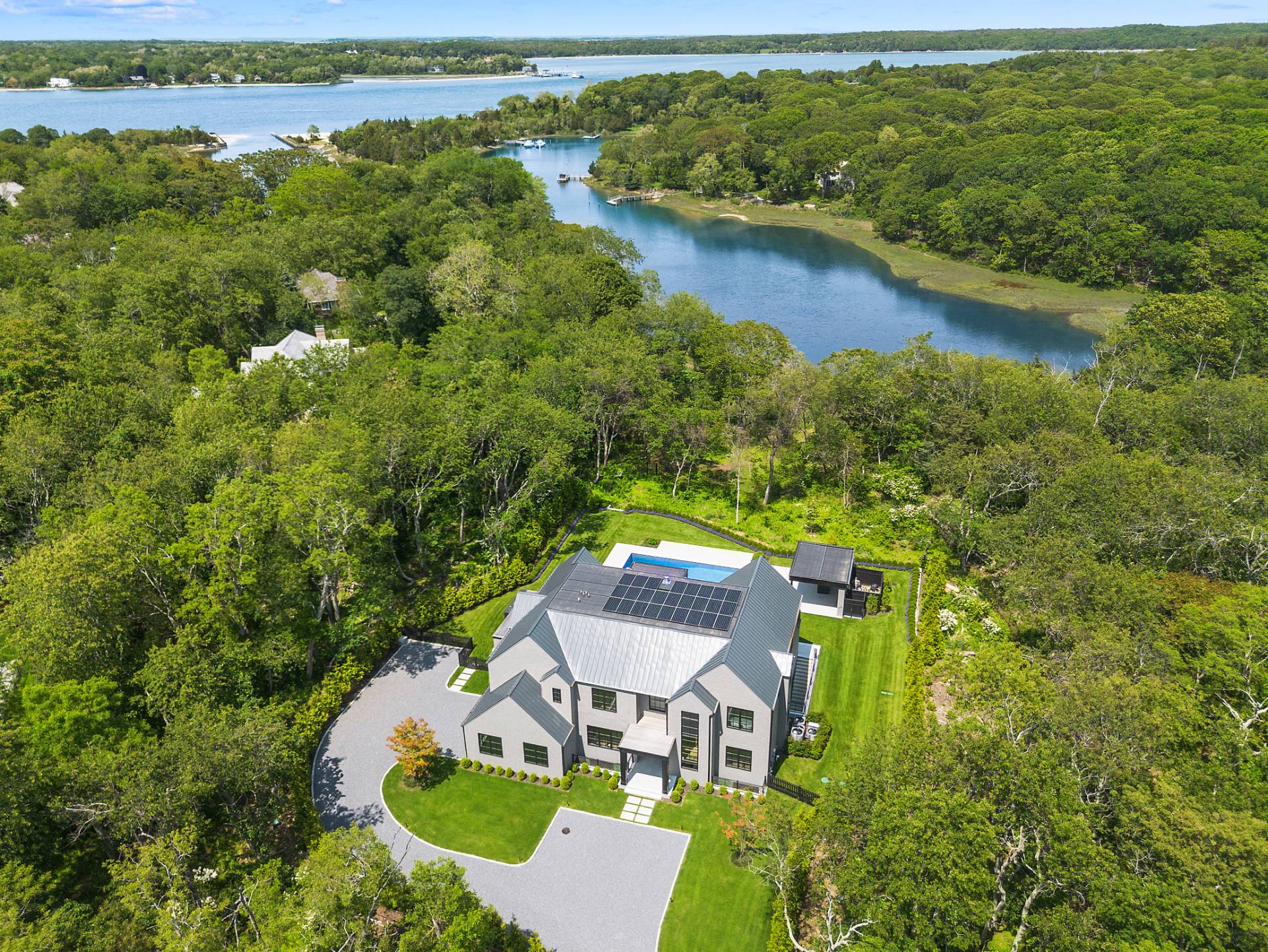 Just completed, an exciting new luxury residence by BJC Custom Homes. Secluded on 2 acres in North Haven Point on the banks of serene Ganet Creek. Truly among nature and just minutes to Sag Harbor Village. Enjoy all the area has to offer: private beach, 3 pristine championship tennis courts and basketball. Designed and crafted to perfection by master builder Matt Pantofel. 9,692 sf of luxury living on three levels with elevator, high-end finish, linear lighting, custom cabinetry, and a keen attention to detail throughout. 8 bedrooms, 10 full bathrooms, and 3 half baths. This sleek open floor plan boasts a sun-filled reception and open floor plan that seamlessly flows through the gallery into the living space. Great room w/ showcase wet bar and White Oak linear gas FP. Sophisticated custom eat-in Chefs kitchen, fully outfitted with high-end appliances, custom cabinetry, oversized island and walk-in prep-pantry. Pass-through Butler's leads to the formal dining room featuring an expansive custom wine closet. The first floor also features an intimate family room/den, spacious junior primary suite, paneled home office, formal powder room, and mudroom with an additional half bath and laundry adjacent to the 2 car heated garage. The second story grand primary suite encompasses the east wing featuring a gracious sleeping chamber w/ gas FP, a large balcony, and two custom WIC fully outfitted with built-in shelving. The spa bath is adorned with exquisite finish and includes a freestanding soaking tub, personal vanities, spa shower, and WC. The second level also features an open upstairs "living room," w/ gas FP and recessed linear lighting. 4 additional spacious guest suites and 4 machine laundry complete. Descend to the lower level boasting the full program. A grand 3,200 sf. Expansive recreation and media space with linear gas FP and entertainment wet bar. Large gym w/ wellness center featuring steam and sauna. Home Cinema. A powder room and 2 additional en suite guest rooms complete. Outback a resort-style oversized heated Gunite pool and spa, open pool cabana w/ wet bar and FP, built-in BBQ, outdoor shower and full pool-cabana bath. Seamless indoor/outdoor living amongst nature's backdrop. 5 Widow Cooper's Path, North Haven Point, Sag Harbor.