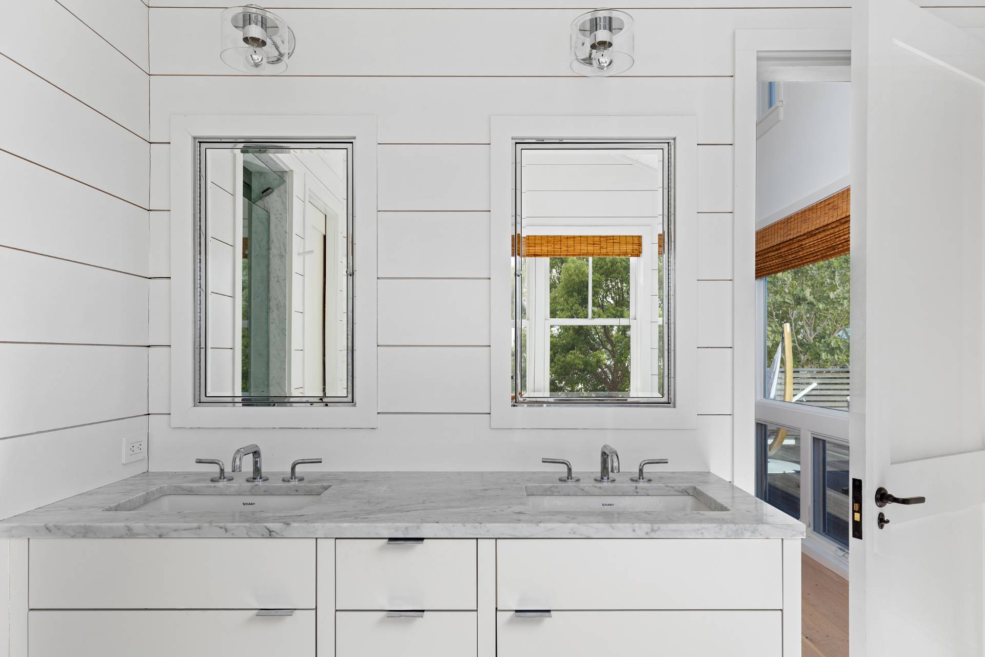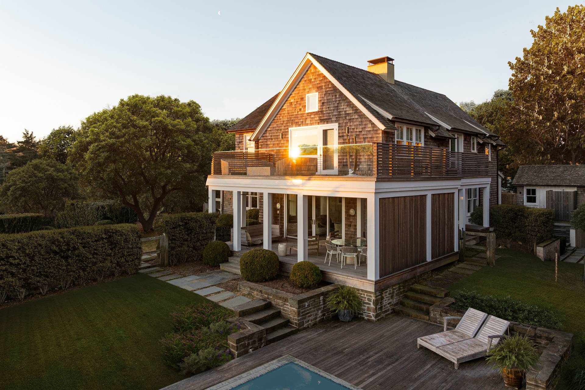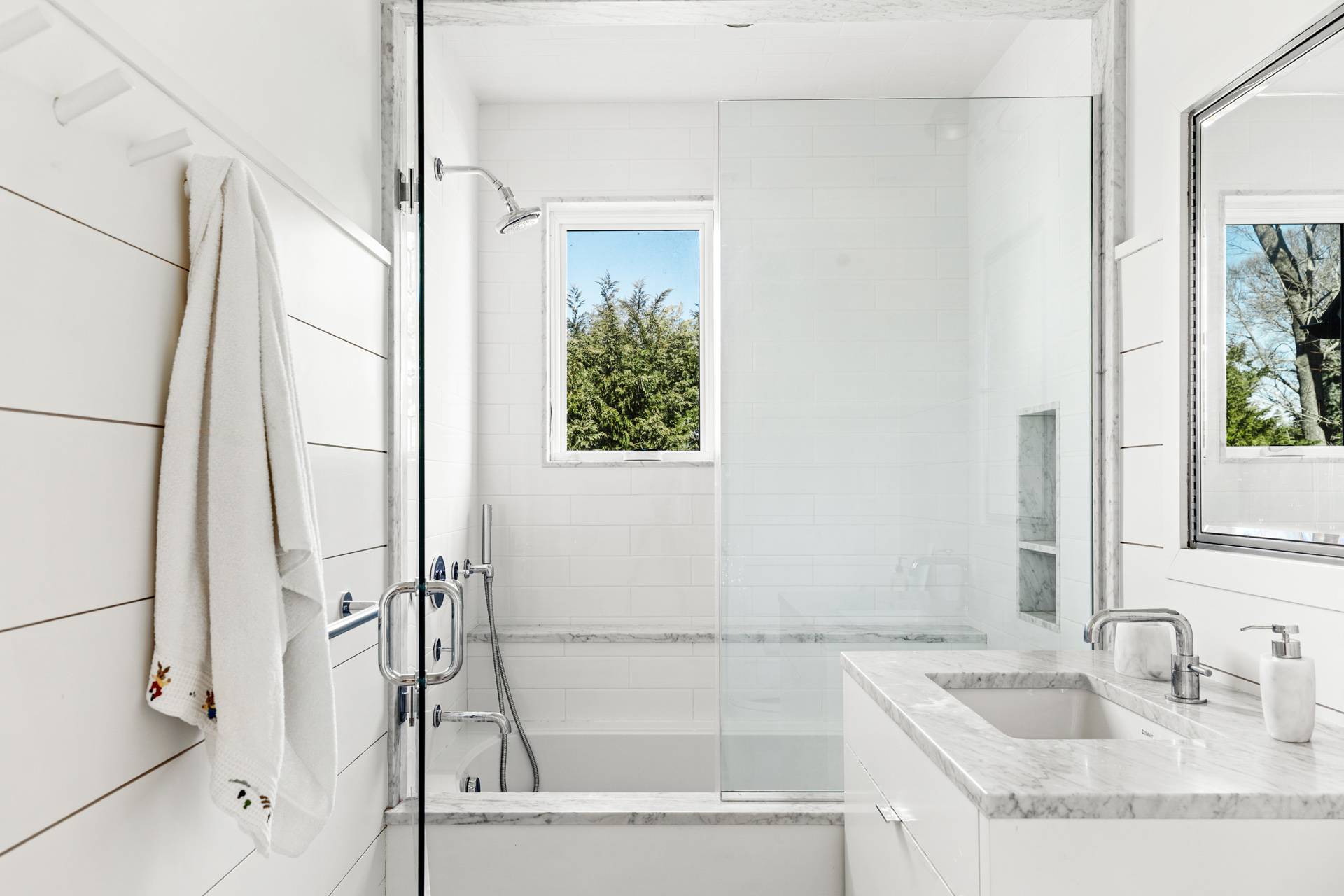 This 5,985 SF+/- custom-residence is situated at the highest point in the coveted Redwood Section of Sag Harbor Village, offering sweeping water views over Sag Harbor Cove. Designed through a collaborative effort between the owners, architect William Beeton, and his wife, a landscape designer, the property spans 0.59 acres+/- and provides a rare opportunity to own an estate that combines sophisticated architecture with unparalleled natural beauty. Additionally, the home boasts dual entry points, enhancing both accessibility and privacy for its residents. Additionally, the home boasts dual entry points, enhancing both accessibility and privacy for its residents. The home features 6 bedrooms, 5 full and 1 half bathroom, alongside a detached garage with a finished interior. With floor-to-ceiling windows, shiplap interiors, and ample natural light, this home is a true sanctuary. The state-of-the-art amenities, including high-end Miele kitchen appliances, 3 fireplaces, and a Gemini security system, complement the carefully curated finishes and custom millwork throughout. Located just 1 mile+/- from Foster Memorial Town Beach and 2 miles+/- from Haven's Beach, the property is perfectly positioned for both privacy and convenience. With easy access to Sag Harbor's vibrant village, this residence is also within close proximity to East Hampton Airport, the Bridgehampton LIRR station, and pristine ocean beaches. The first level is designed for seamless indoor-outdoor living. A covered front porch leads into a spacious entry foyer that connects to the living room, dining area, and den, all of which feature wood-burning fireplaces. The chef's kitchen boasts marble countertops, a center island with bar seating, and Wolf appliances, ensuring a luxurious cooking experience. A guest suite on this floor offers direct exterior access and a walk-in shower, providing a private retreat for visitors. A mudroom, pantry, powder bathroom, storage area, and laundry room complete this level. The second level is dedicated to rest and relaxation, with a stunning primary en-suite bedroom that opens directly onto a private terrace with frameless glass railings. The spacious bedroom includes a walk-in closet and a sitting area, while the en-suite bathroom features dual vanities, a soaking tub, and a walk-in shower. Two additional en-suite guest bedrooms are also located on this floor, each with built-in shelving and dedicated seating areas. The finished lower level offers 1,881 SF+/- of additional living space, including a recreation room with direct access to the exterior patio and a storage room, 2 guest bedrooms, and a shared bathroom with a walk-in shower. A basement space is also included, ensuring ample space for all your needs. Outside, the beautifully landscaped grounds feature multiple outdoor living spaces designed for both relaxation and entertaining. Directly off the living room, an outdoor living area on a patio offers a peaceful retreat. The bluestone walkway leads to the heated gunite pool surrounded by Ipe decking, complete with multiple seating areas, and a firepit. An outdoor dining area, accessible through the den at the front of the house, provides a perfect space for alfresco meals. The meticulously manicured grounds also include privet hedges, specimen trees, and a boxwood garden, while a private outdoor shower adds the finishing touch to this serene setting. The finished detached garage features shiplap interiors, built-in shelving, a dedicated seating area, a sink, and multiple storage options. Flooded with natural light, this additional space offers endless possibilities, whether as a guest house, home office, or retreat. This home embodies the finest in luxury living, with unrivaled water views, meticulous design, and extraordinary attention to detail. It is an exceptional opportunity in one of Sag Harbor's most sought-after locations.