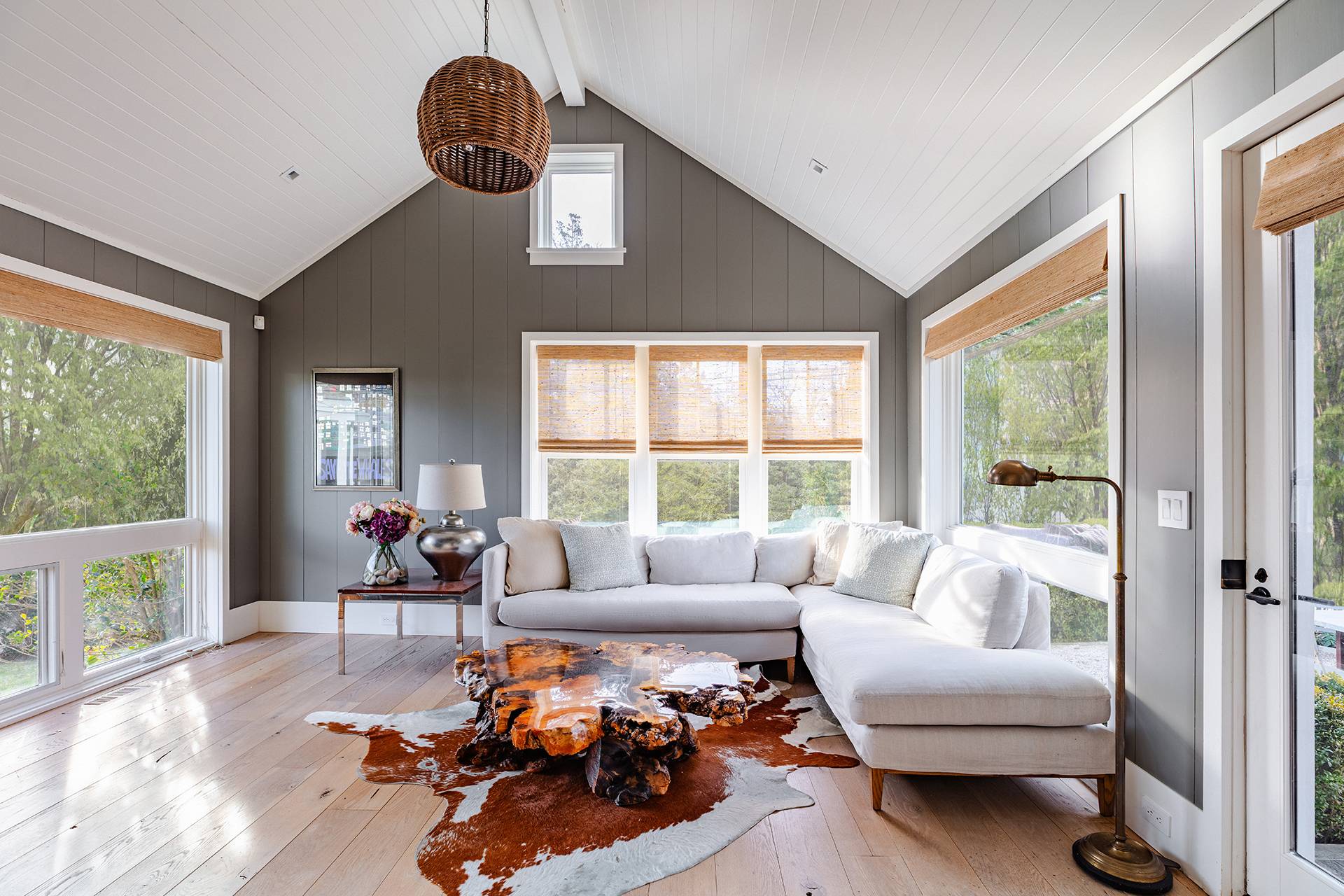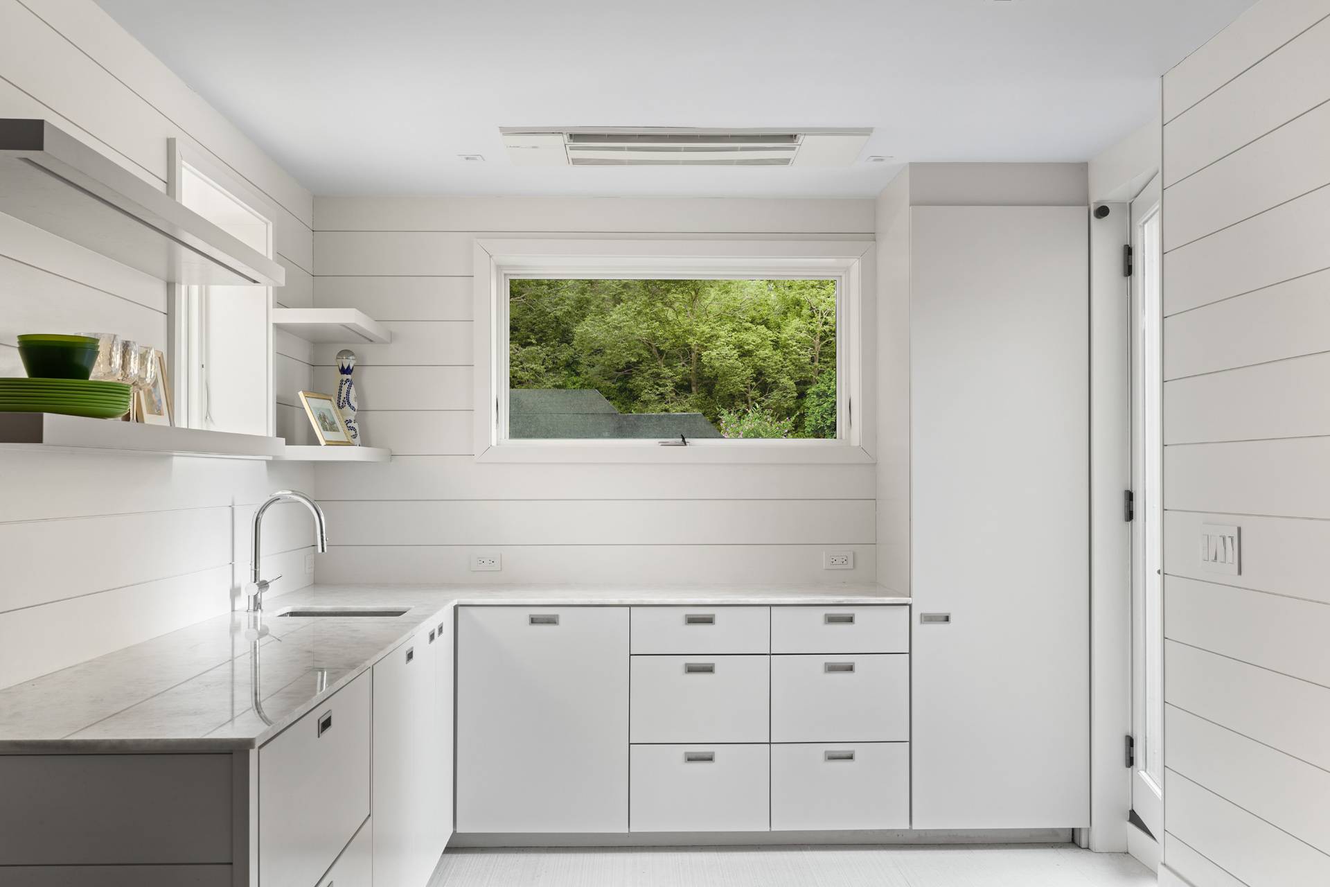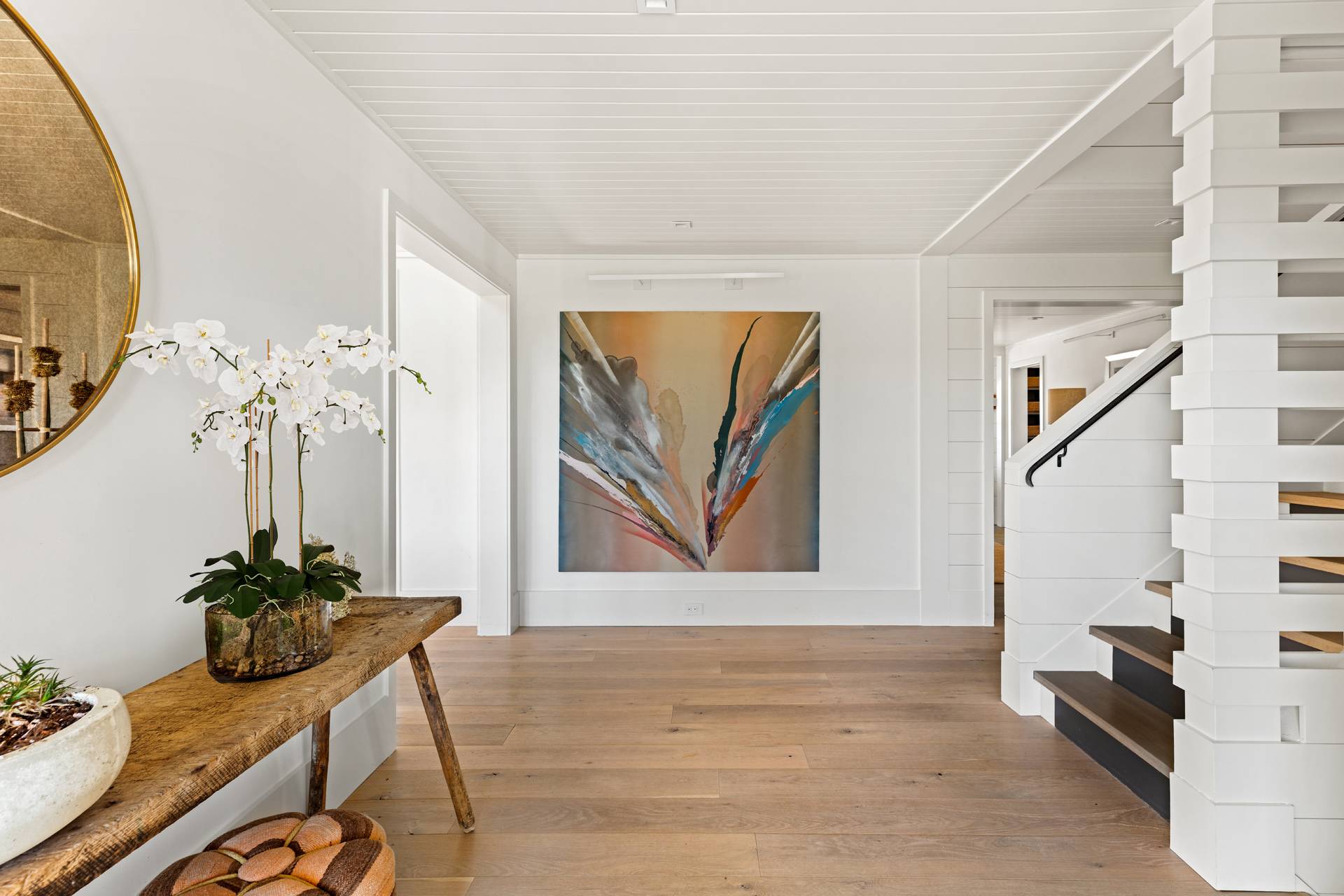 This 5,985 SF+/- custom-residence is situated at the highest point in the coveted Redwood Section of Sag Harbor Village, offering sweeping water views over Sag Harbor Cove. Designed through a collaborative effort between the owners, architect William Beeton, and his wife, a landscape designer, the property spans 0.59 acres+/- and provides a rare opportunity to own an estate that combines sophisticated architecture with unparalleled natural beauty. Additionally, the home boasts dual entry points, enhancing both accessibility and privacy for its residents. Additionally, the home boasts dual entry points, enhancing both accessibility and privacy for its residents. The home features 6 bedrooms, 5 full and 1 half bathroom, alongside a detached garage with a finished interior. With floor-to-ceiling windows, shiplap interiors, and ample natural light, this home is a true sanctuary. The state-of-the-art amenities, including high-end Miele kitchen appliances, 3 fireplaces, and a Gemini security system, complement the carefully curated finishes and custom millwork throughout. Located just 1 mile+/- from Foster Memorial Town Beach and 2 miles+/- from Haven's Beach, the property is perfectly positioned for both privacy and convenience. With easy access to Sag Harbor's vibrant village, this residence is also within close proximity to East Hampton Airport, the Bridgehampton LIRR station, and pristine ocean beaches. The first level is designed for seamless indoor-outdoor living. A covered front porch leads into a spacious entry foyer that connects to the living room, dining area, and den, all of which feature wood-burning fireplaces. The chef's kitchen boasts marble countertops, a center island with bar seating, and Wolf appliances, ensuring a luxurious cooking experience. A guest suite on this floor offers direct exterior access and a walk-in shower, providing a private retreat for visitors. A mudroom, pantry, powder bathroom, storage area, and laundry room complete this level. The second level is dedicated to rest and relaxation, with a stunning primary en-suite bedroom that opens directly onto a private terrace with frameless glass railings. The spacious bedroom includes a walk-in closet and a sitting area, while the en-suite bathroom features dual vanities, a soaking tub, and a walk-in shower. Two additional en-suite guest bedrooms are also located on this floor, each with built-in shelving and dedicated seating areas. The finished lower level offers 1,881 SF+/- of additional living space, including a recreation room with direct access to the exterior patio and a storage room, 2 guest bedrooms, and a shared bathroom with a walk-in shower. A basement space is also included, ensuring ample space for all your needs. Outside, the beautifully landscaped grounds feature multiple outdoor living spaces designed for both relaxation and entertaining. Directly off the living room, an outdoor living area on a patio offers a peaceful retreat. The bluestone walkway leads to the heated gunite pool surrounded by Ipe decking, complete with multiple seating areas, and a firepit. An outdoor dining area, accessible through the den at the front of the house, provides a perfect space for alfresco meals. The meticulously manicured grounds also include privet hedges, specimen trees, and a boxwood garden, while a private outdoor shower adds the finishing touch to this serene setting. The finished detached garage features shiplap interiors, built-in shelving, a dedicated seating area, a sink, and multiple storage options. Flooded with natural light, this additional space offers endless possibilities, whether as a guest house, home office, or retreat. This home embodies the finest in luxury living, with unrivaled water views, meticulous design, and extraordinary attention to detail. It is an exceptional opportunity in one of Sag Harbor's most sought-after locations.