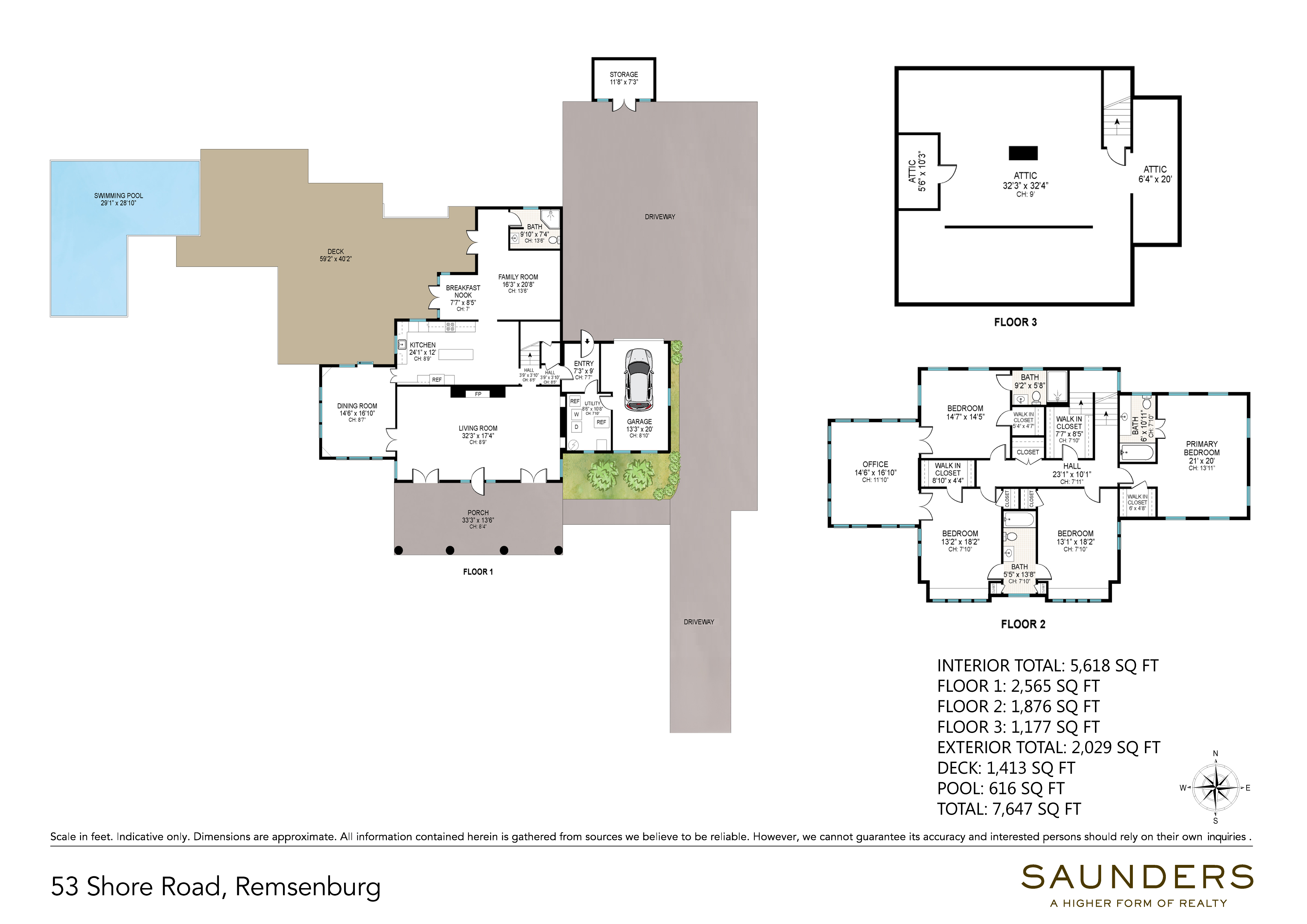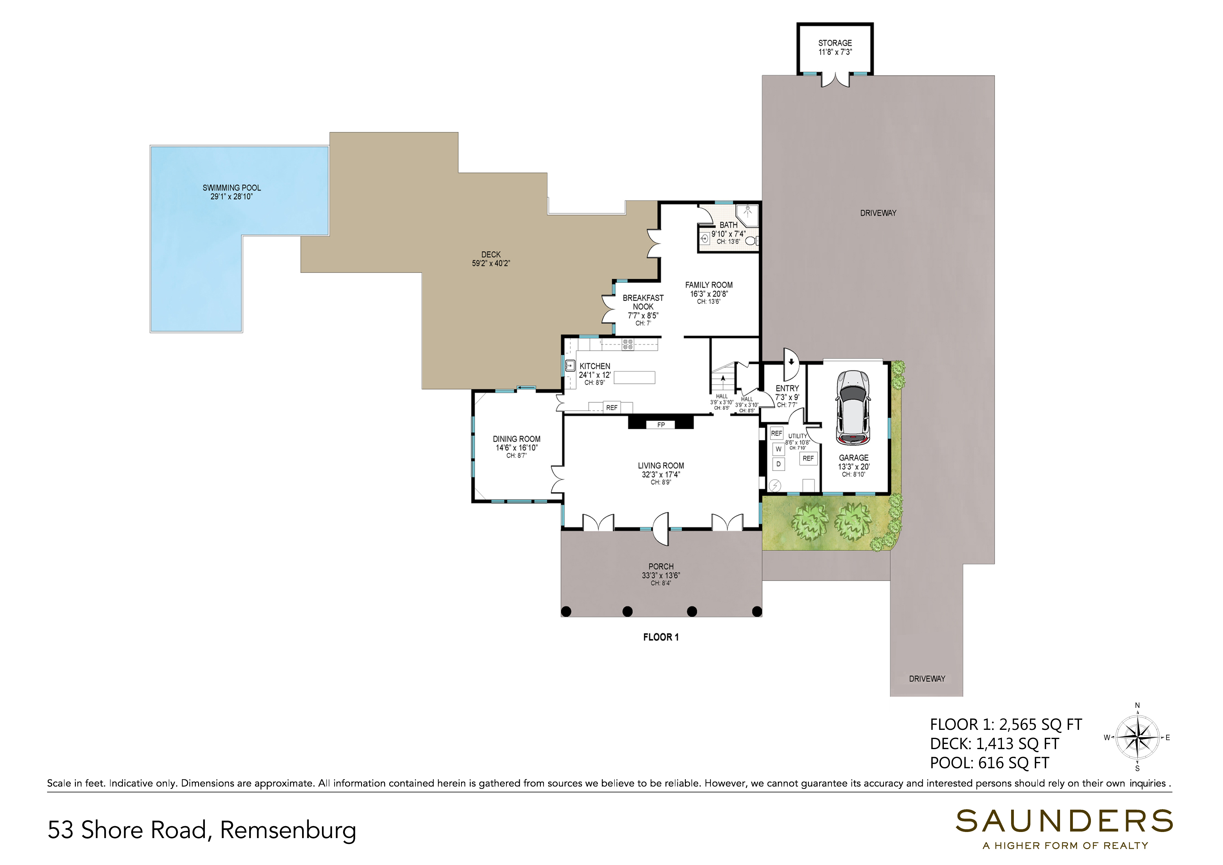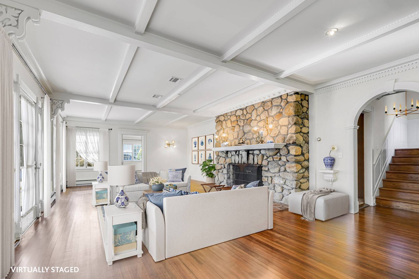 Tucked away behind gated privet hedges lies 53 Shore Road, a stately property that harkens back to a more genteel time when spending lazy afternoons on a wicker-chair porch and gazing out at the hydrangea and rose-filled gardens was commonplace. Built in 1929, this pristinely maintained Dutch Colonial is sure to be a calming escape from today's hectic pace. The 4,400 +/- sq. ft. home perfectly blends Old World charm with modern amenities throughout. The showstopper is a massive stone fireplace, built from local stone, in the oversized English Country living room. The first floor also boasts a farm country kitchen, large dining room with built-ins, family room with a vaulted ceiling, full bath, and cozy breakfast area. On the second floor you'll enjoy a well-appointed primary suite with vaulted ceiling and ensuite bathroom, two guest bedrooms with shared bath, and fourth bedroom with private bathroom. There's also a large, sun-filled office with a wood vaulted ceiling and built-in desks that easily can accommodate a gym, recreation space, or media room. A third-floor attic provides plenty of storage space. Head outside to enjoy the bay breezes, large deck (with an awning for shade), well-manicured lawn, mature specimen trees and gardens, and heated pool with stadium stairs. Water access for kayaking, swimming, and paddle boarding is down the street, and the property is only a quarter mile to the Westhampton Yacht Squadron. Fun factoid about Shore Road: a nearby home was once owned by playwright/lyricist Guy Bolton, who worked here with Alfred Hitchcock, Cole Porter, P.G. Wodehouse and other Broadway greats. "Anything Goes," "Anastasia," and "Psycho" were just a few of the theatrical hits that were written on this lovely street in the quaint hamlet of Remsenburg.
