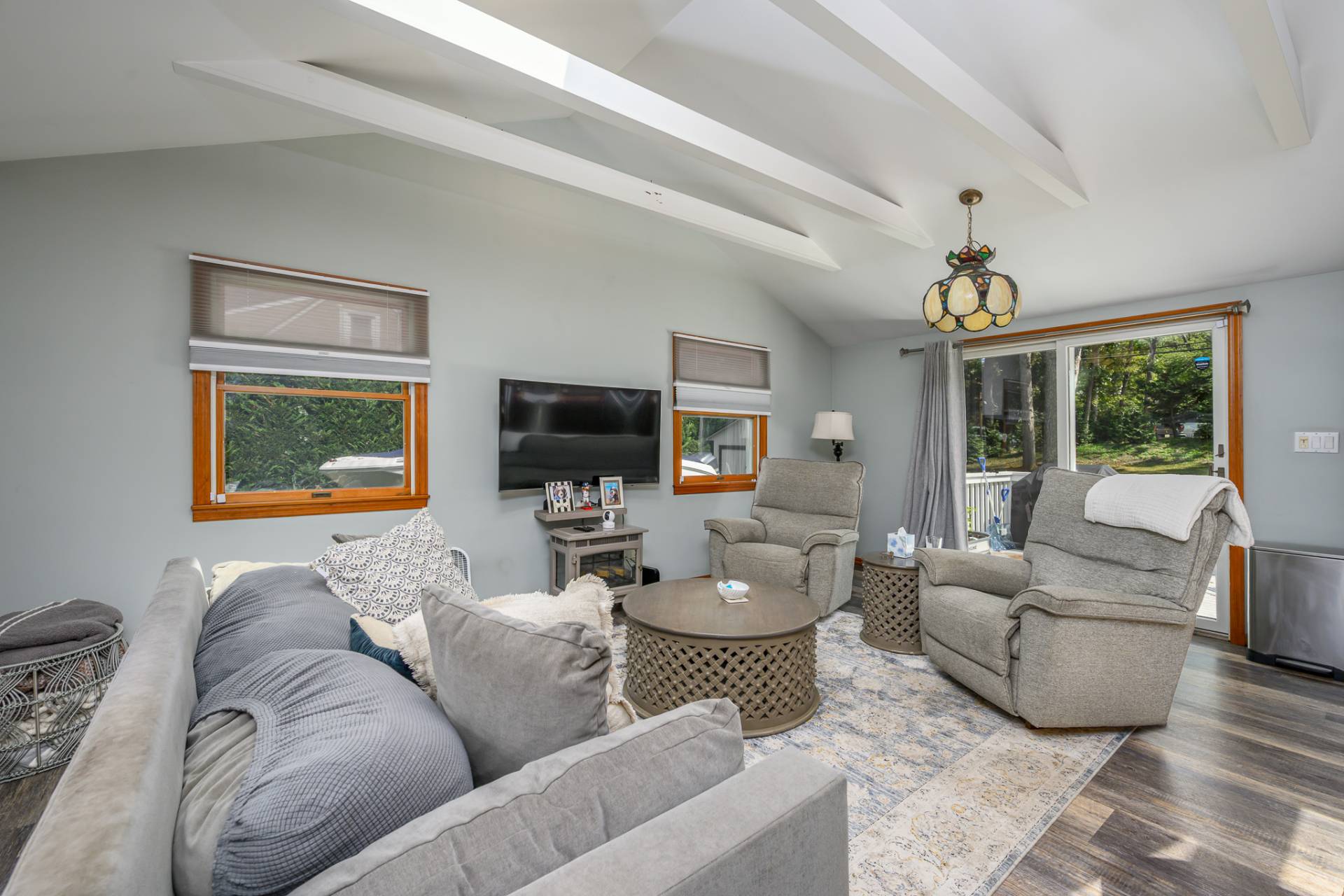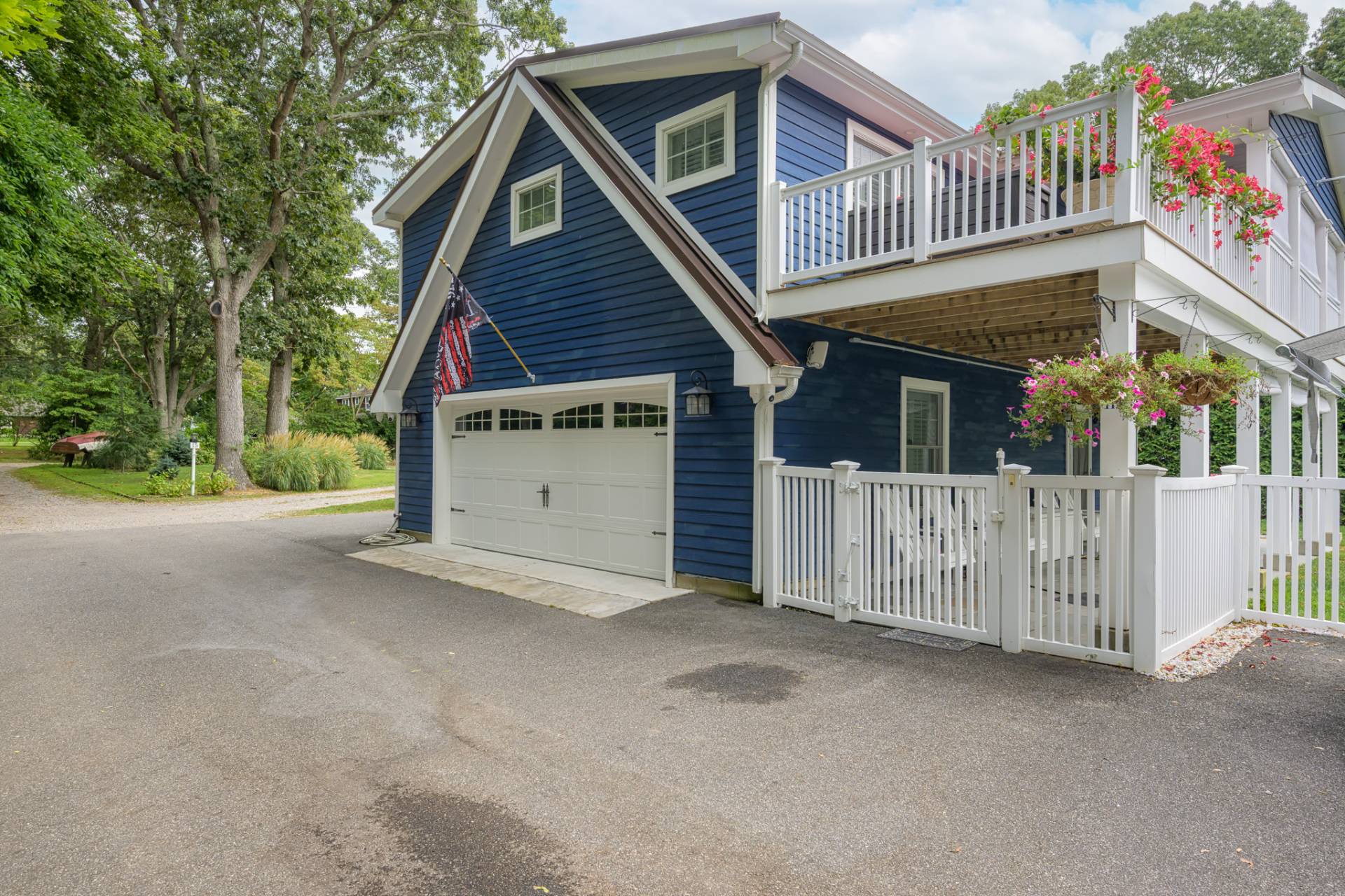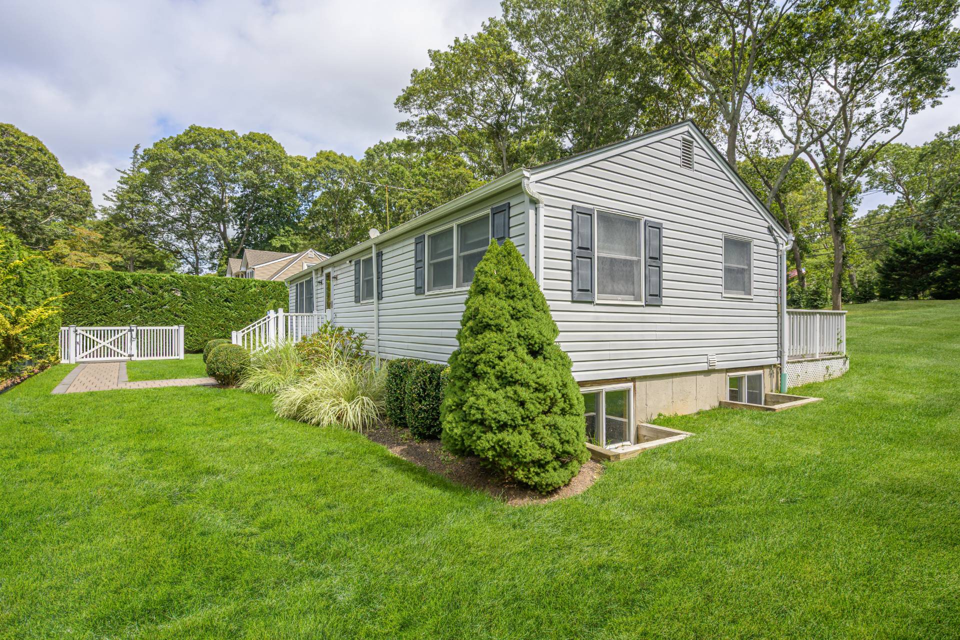 Designed for versatility and modern Hamptons living, this rare Southampton Shores compound sits on over half an acre and offers two fully independent residences with a two-car garage. Located in a coveted waterfront community with access to a private beach on Peconic Bay or the Little Peconic Yacht Club with docking and moorings on Wooley's Pond, tennis courts, and more. Renovated in 2018, the property combines beachy charm, curb appeal, and contemporary comfort. The main residence is a classic two-bedroom, two-bath retreat with an open living, dining, and kitchen layout that flows seamlessly to an inviting large south-facing deck for dining al fresco featuring manicured grounds with room for a pool. An unfinished lower level with oversized windows provides expansion potential, while modern upgrades such as solar power, central air, and a whole-house generator ensure comfort and peace of mind. The second home, an Amish-built 2018 legal rental guest house, has that perfect beachy style and embodies coastal living with an airy open floorplan, modern kitchen, and a west-facing balcony that frames breathtaking sunsets. With two bedrooms, 1.5 baths, a full 2-car garage below with thoughtful details throughout, it is both stylish and practical. Southampton Shores enhances the lifestyle with a private sandy beach on Peconic Bay, community tennis courts, basketball and ball fields, plus easy access to the Little Peconic Yacht Club for docking and moorings. With solar on both homes, Generac generators, fenced yards, and low taxes, this compound is designed for effortless entertaining, flexible living, and enjoying the Hamptons at its best.