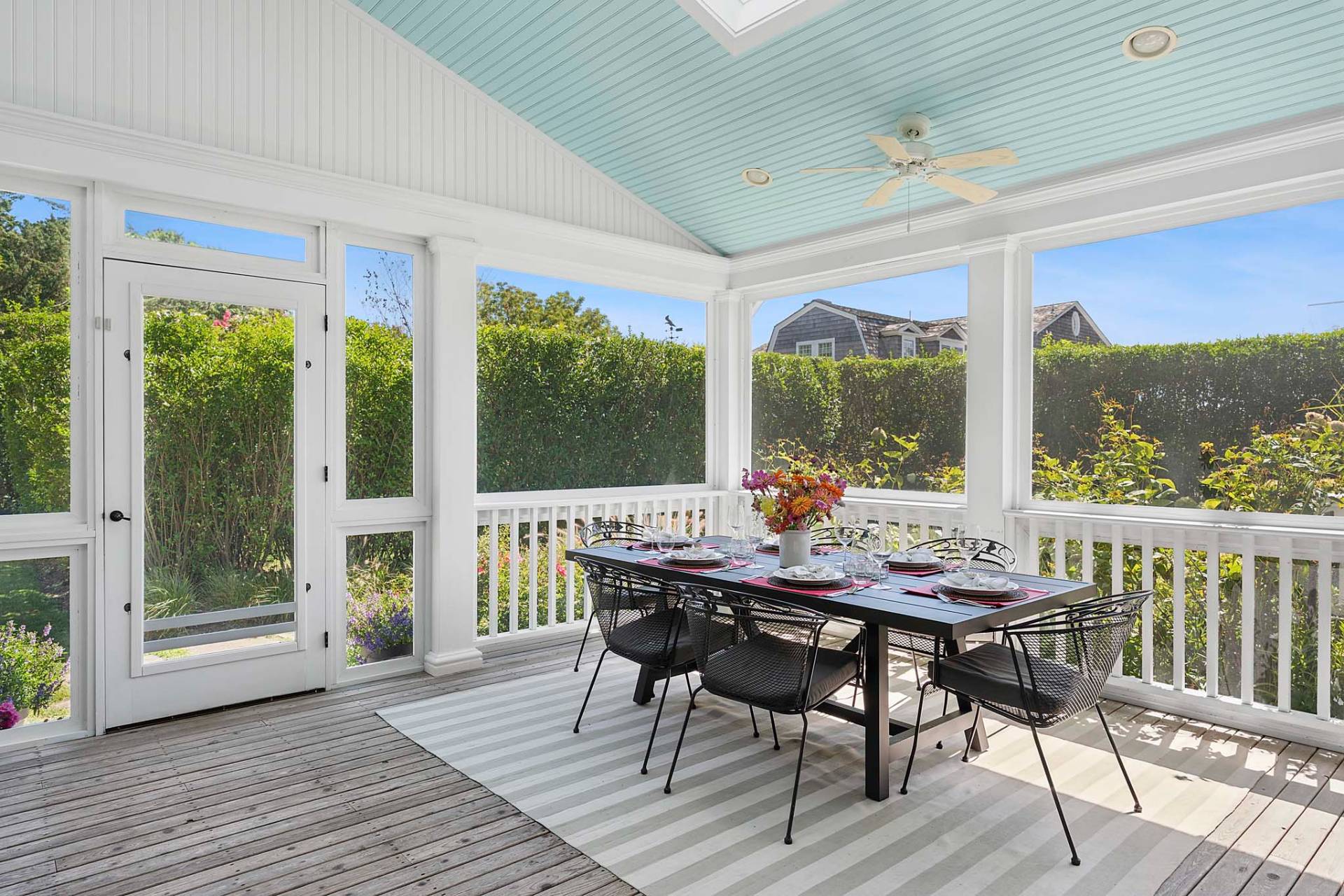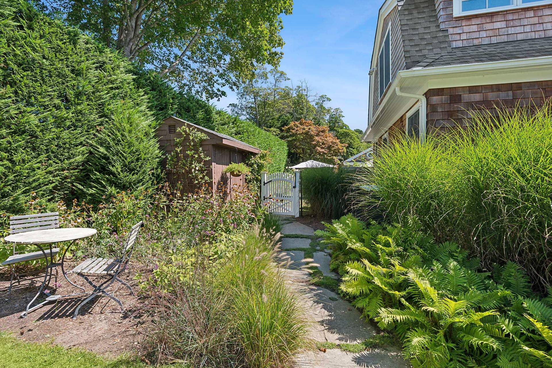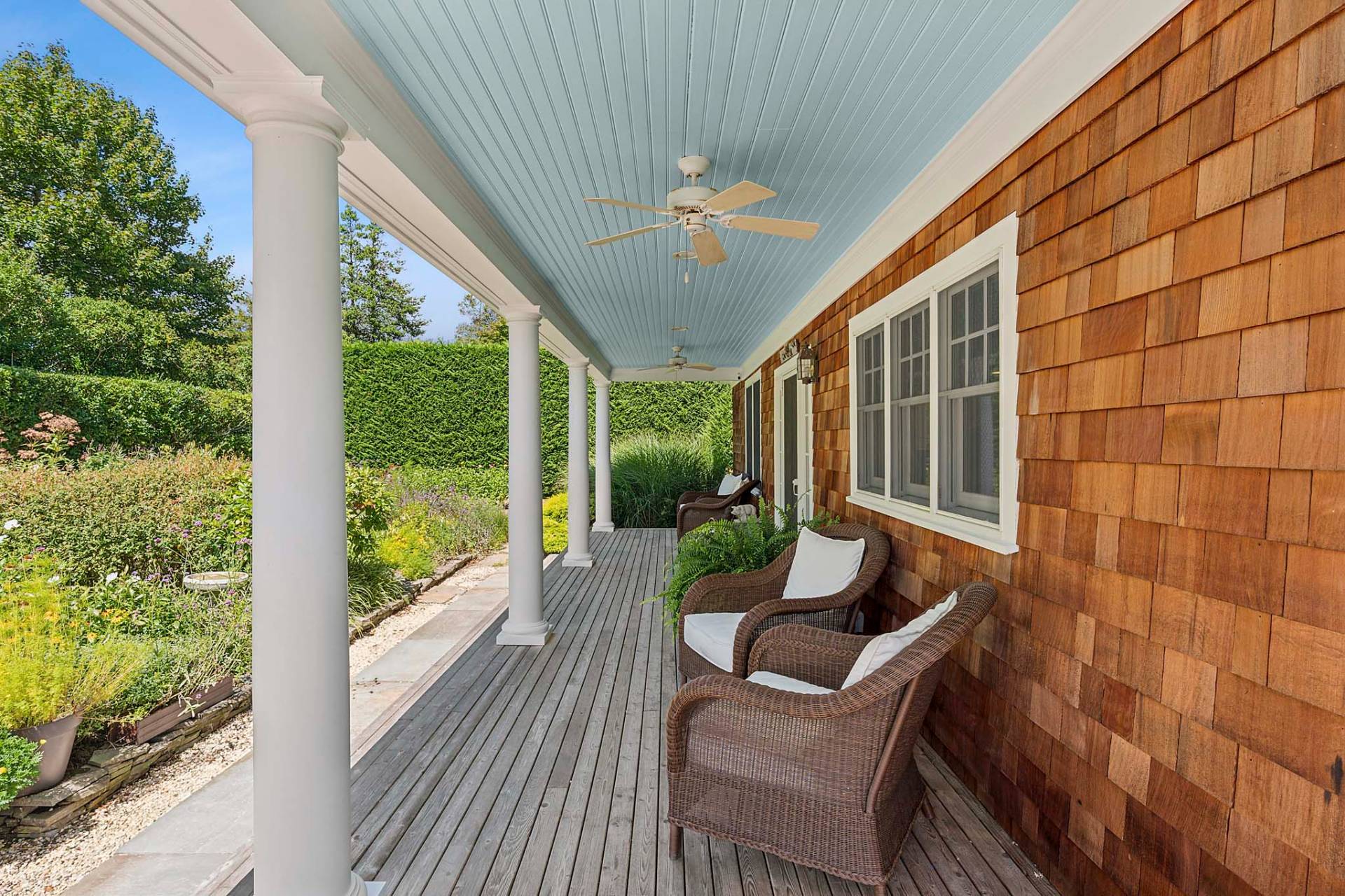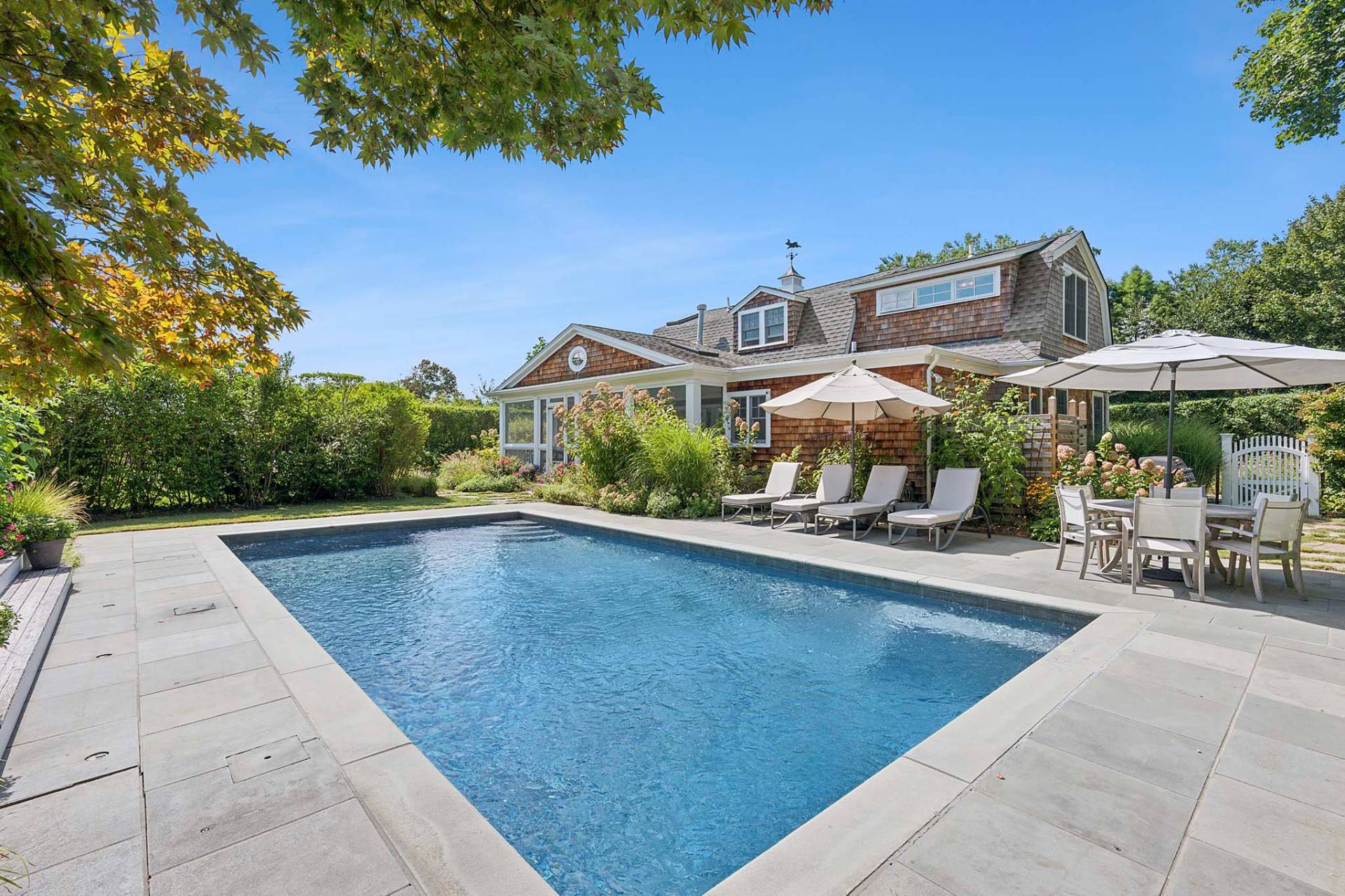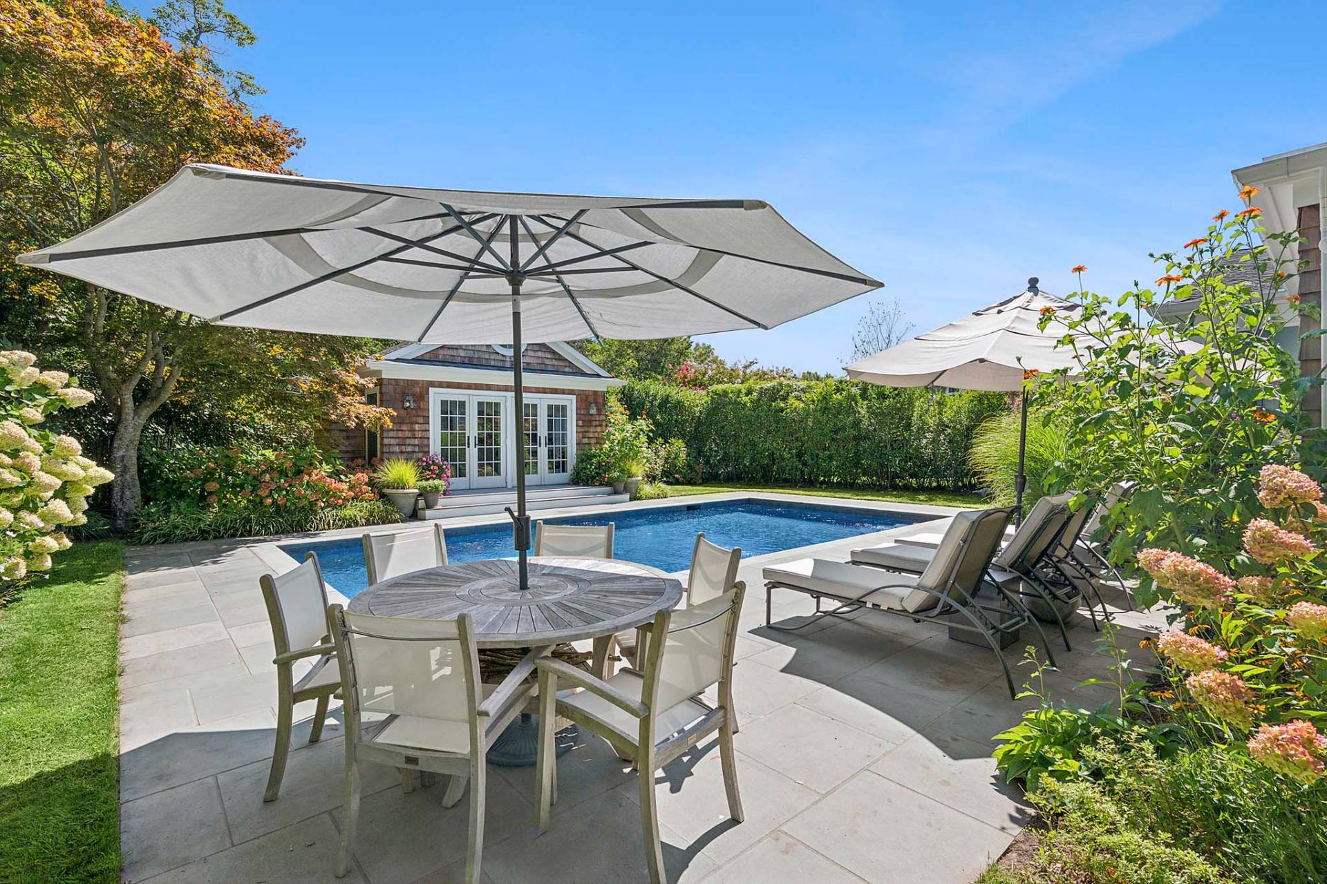 The ultimate Hamptons escape - a thoughtfully converted carriage house designed as a four-bedroom, three-bath residence offering 1,900 +/- square feet of refined living space with a sweeping screened in porch and surrounded by covered porches. Perfectly positioned on a peaceful road with the open bay just at the end, this property captures the essence of coastal luxury while maintaining a warm and welcoming character. From the moment you arrive through the private, gated driveway, you are embraced by elegant gardens with mature plantings, flowering shrubs, and walkways. Inside, the home is filled with natural light from large windows, with an open layout that flows easily between living, dining, and entertaining areas. Multiple gathering spaces provide flexibility, whether you are hosting a summer dinner party or enjoying a quiet evening at home. Each bedroom is designed for comfort and privacy, while the baths feature updated, timeless finishes. The property and home have been meticulously maintained and ready for instant pleasure. The heart of the outdoor living experience is the Gunite saltwater pool, a true centerpiece for seasonal enjoyment with a spacious patio for lounging and dining. A detached studio overlooking the lush grounds adds versatility and can serve as a pool cabana, home office, or creative space. With the open bay at the end of the road and some of the Hamptons best beaches, shops, and dining just minutes away, this property delivers the quintessential Hampton experience.