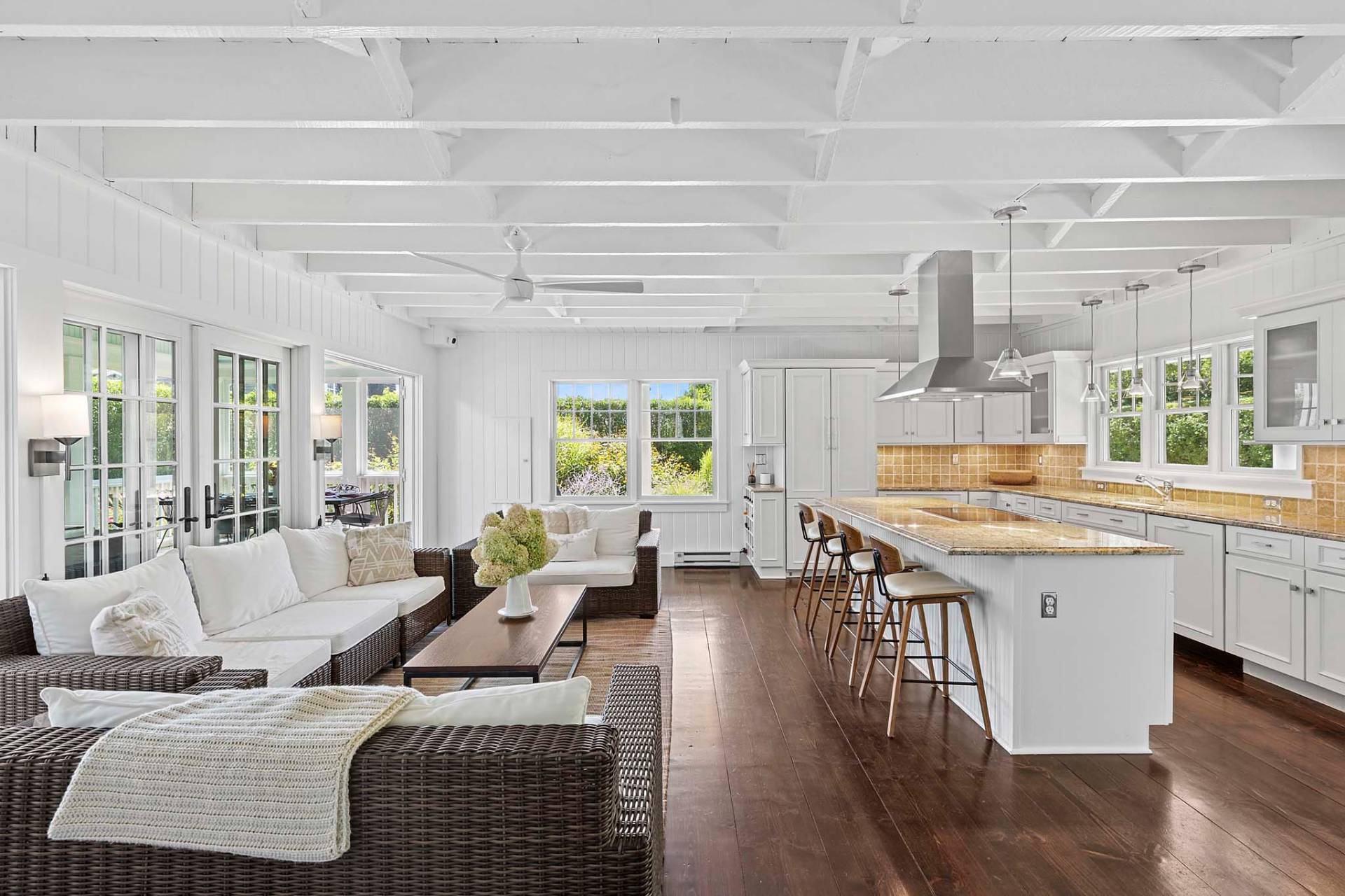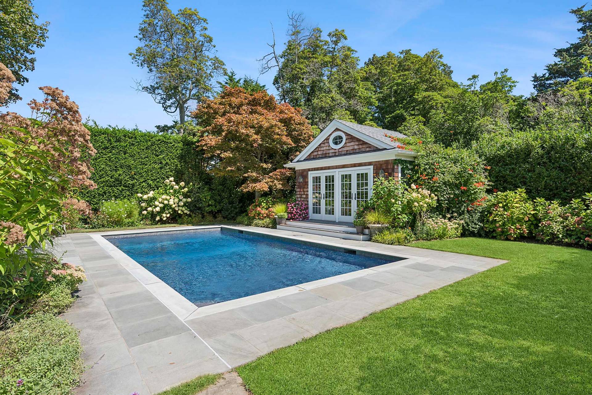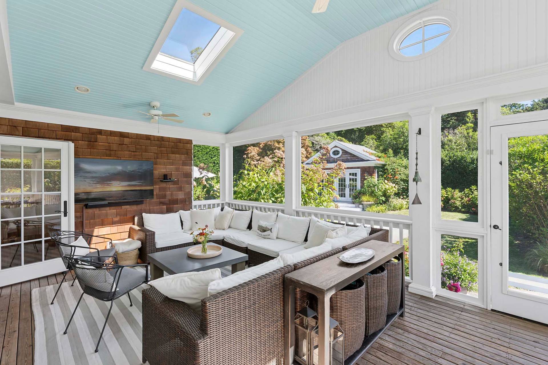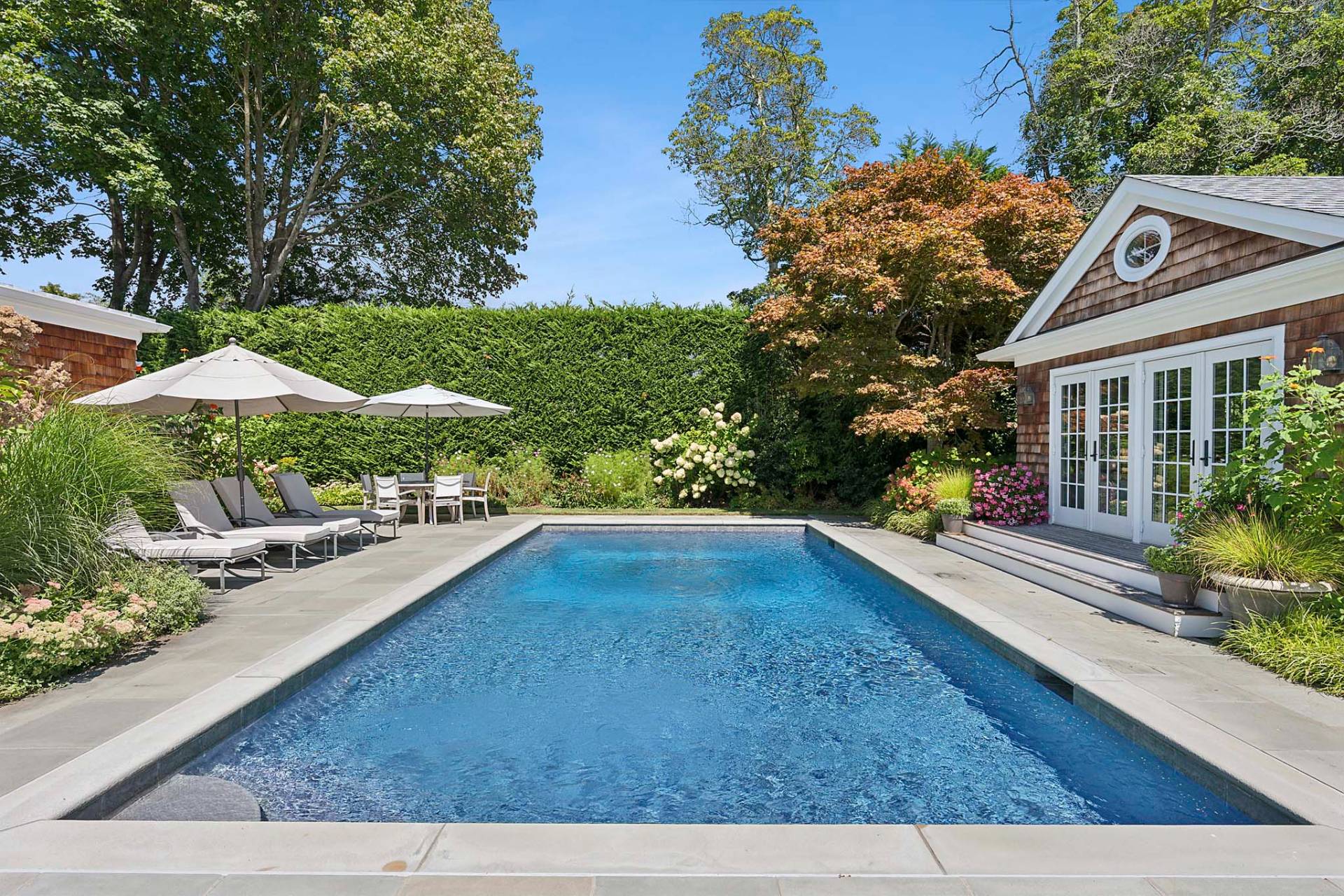 The ultimate Hamptons escape - a thoughtfully converted carriage house designed as a four-bedroom, three-bath residence offering 1,900 +/- square feet of refined living space with a sweeping screened in porch and surrounded by covered porches. Perfectly positioned on a peaceful road with the open bay just at the end, this property captures the essence of coastal luxury while maintaining a warm and welcoming character. From the moment you arrive through the private, gated driveway, you are embraced by elegant gardens with mature plantings, flowering shrubs, and walkways. Inside, the home is filled with natural light from large windows, with an open layout that flows easily between living, dining, and entertaining areas. Multiple gathering spaces provide flexibility, whether you are hosting a summer dinner party or enjoying a quiet evening at home. Each bedroom is designed for comfort and privacy, while the baths feature updated, timeless finishes. The property and home have been meticulously maintained and ready for instant pleasure. The heart of the outdoor living experience is the Gunite saltwater pool, a true centerpiece for seasonal enjoyment with a spacious patio for lounging and dining. A detached studio overlooking the lush grounds adds versatility and can serve as a pool cabana, home office, or creative space. With the open bay at the end of the road and some of the Hamptons best beaches, shops, and dining just minutes away, this property delivers the quintessential Hampton experience.