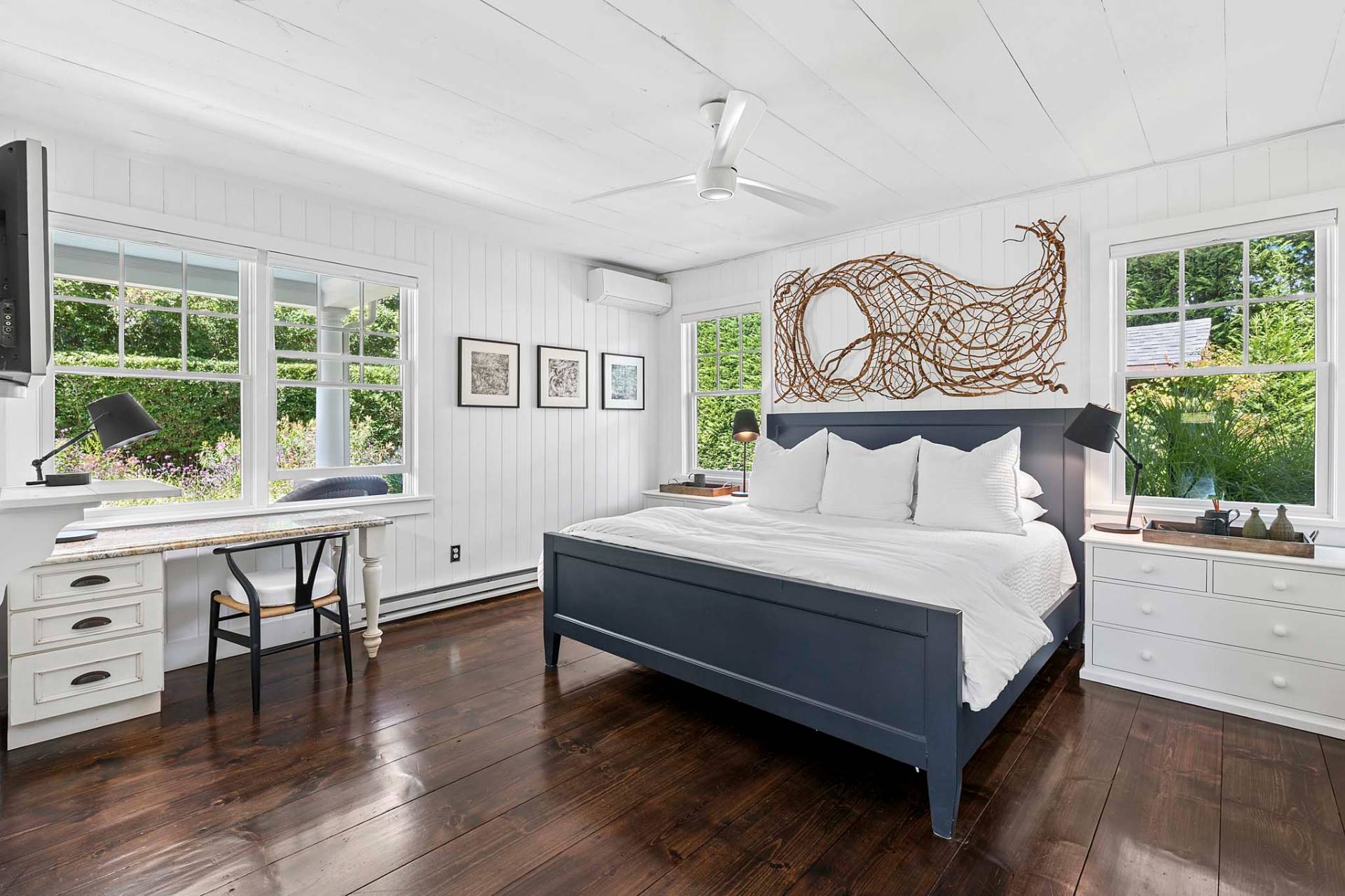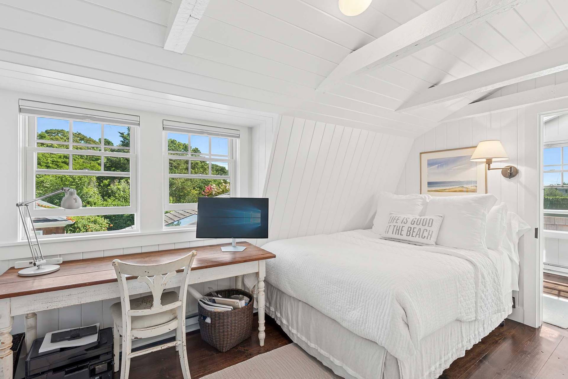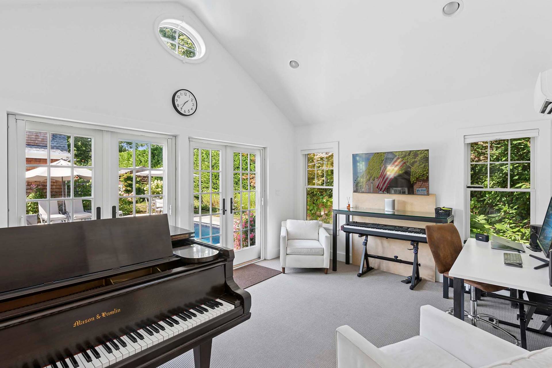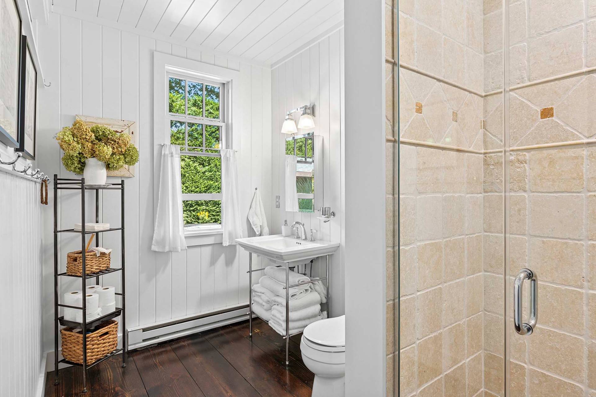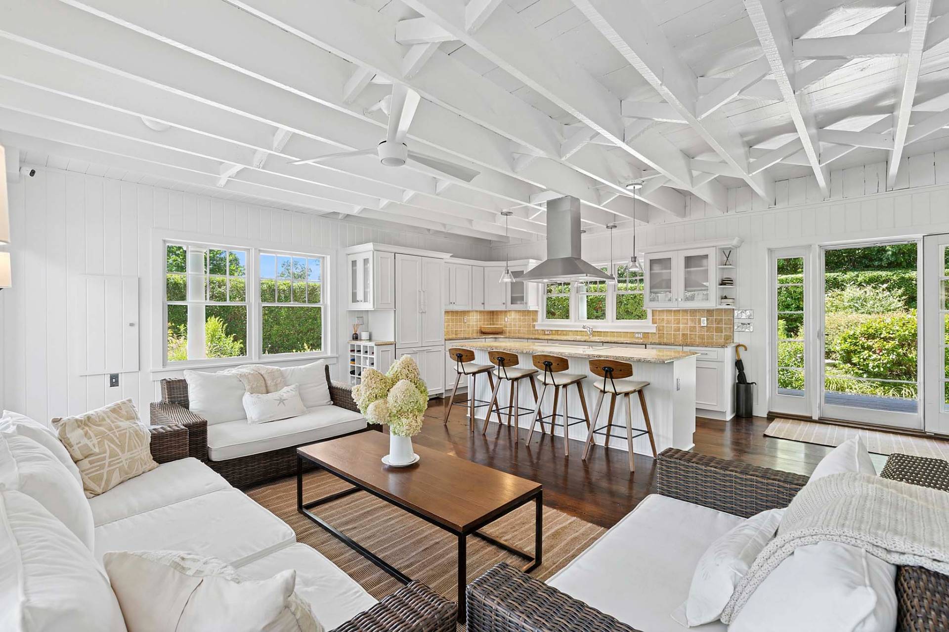 The ultimate Hamptons escape - a thoughtfully converted carriage house designed as a four-bedroom, three-bath residence offering 1,900 +/- square feet of refined living space with a sweeping screened in porch and surrounded by covered porches. Perfectly positioned on a peaceful road with the open bay just at the end, this property captures the essence of coastal luxury while maintaining a warm and welcoming character. From the moment you arrive through the private, gated driveway, you are embraced by elegant gardens with mature plantings, flowering shrubs, and walkways. Inside, the home is filled with natural light from large windows, with an open layout that flows easily between living, dining, and entertaining areas. Multiple gathering spaces provide flexibility, whether you are hosting a summer dinner party or enjoying a quiet evening at home. Each bedroom is designed for comfort and privacy, while the baths feature updated, timeless finishes. The property and home have been meticulously maintained and ready for instant pleasure. The heart of the outdoor living experience is the Gunite saltwater pool, a true centerpiece for seasonal enjoyment with a spacious patio for lounging and dining. A detached studio overlooking the lush grounds adds versatility and can serve as a pool cabana, home office, or creative space. With the open bay at the end of the road and some of the Hamptons best beaches, shops, and dining just minutes away, this property delivers the quintessential Hampton experience.