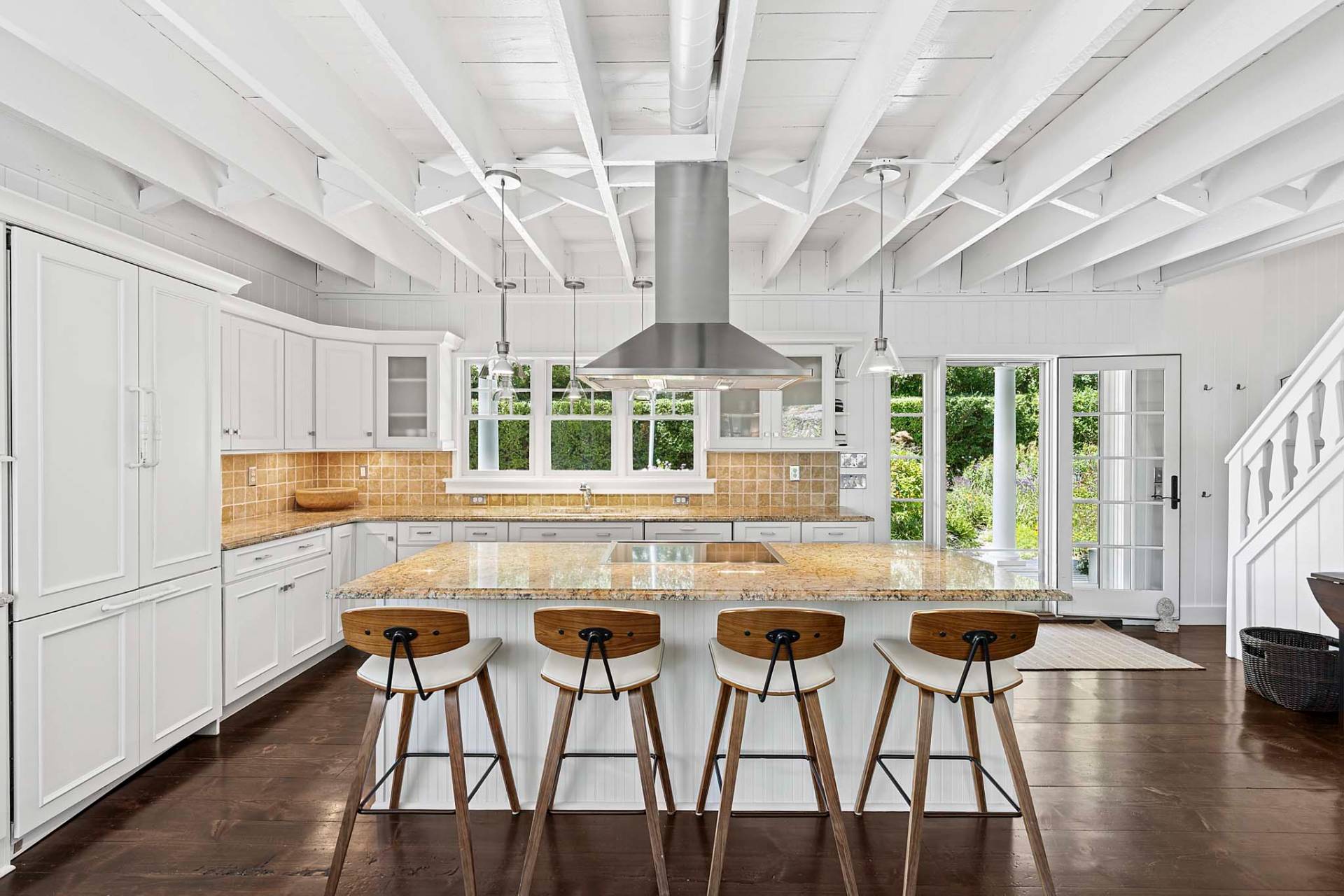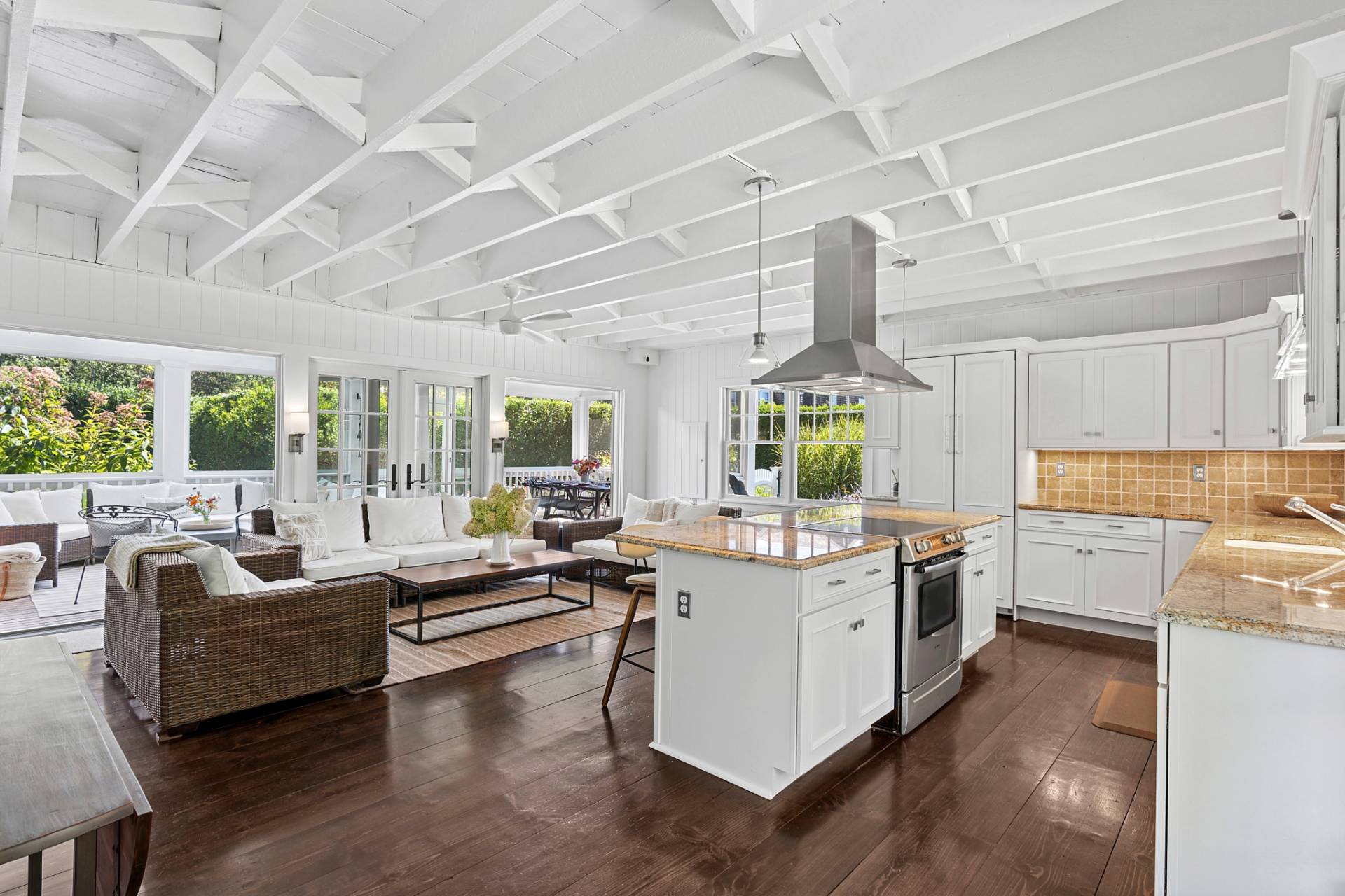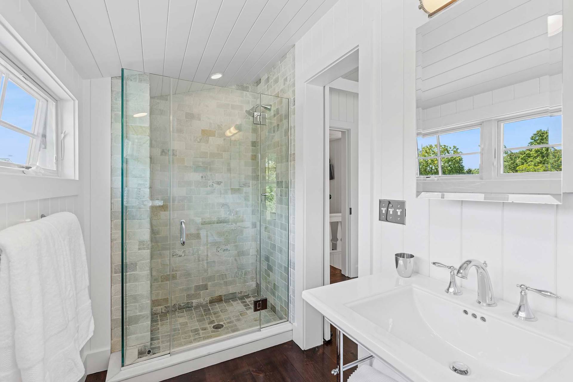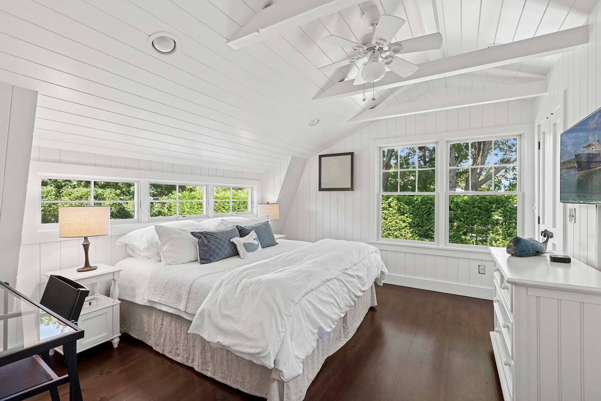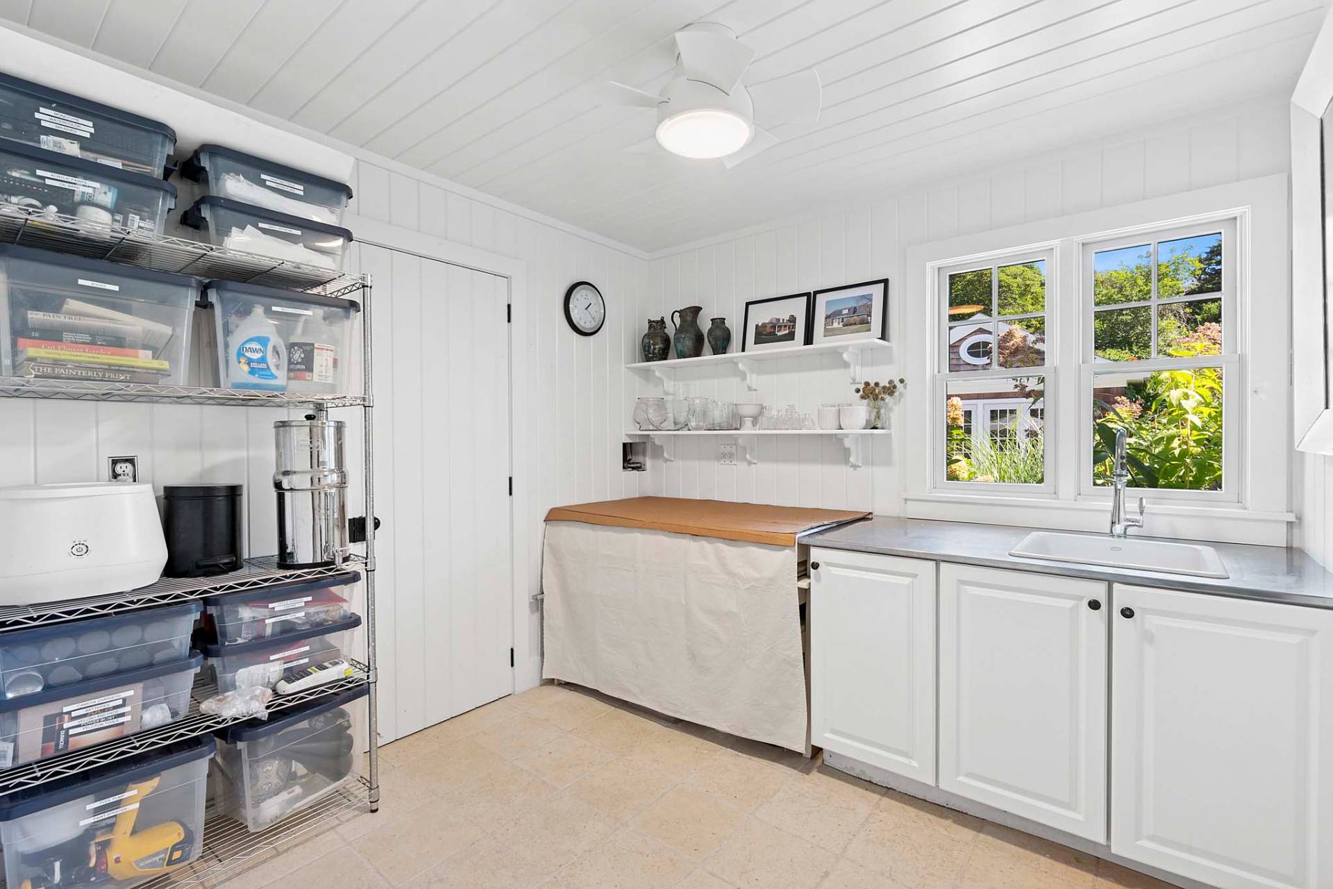 The ultimate Hamptons escape - a thoughtfully converted carriage house designed as a four-bedroom, three-bath residence offering 1,900 +/- square feet of refined living space with a sweeping screened in porch and surrounded by covered porches. Perfectly positioned on a peaceful road with the open bay just at the end, this property captures the essence of coastal luxury while maintaining a warm and welcoming character. From the moment you arrive through the private, gated driveway, you are embraced by elegant gardens with mature plantings, flowering shrubs, and walkways. Inside, the home is filled with natural light from large windows, with an open layout that flows easily between living, dining, and entertaining areas. Multiple gathering spaces provide flexibility, whether you are hosting a summer dinner party or enjoying a quiet evening at home. Each bedroom is designed for comfort and privacy, while the baths feature updated, timeless finishes. The property and home have been meticulously maintained and ready for instant pleasure. The heart of the outdoor living experience is the Gunite saltwater pool, a true centerpiece for seasonal enjoyment with a spacious patio for lounging and dining. A detached studio overlooking the lush grounds adds versatility and can serve as a pool cabana, home office, or creative space. With the open bay at the end of the road and some of the Hamptons best beaches, shops, and dining just minutes away, this property delivers the quintessential Hampton experience.