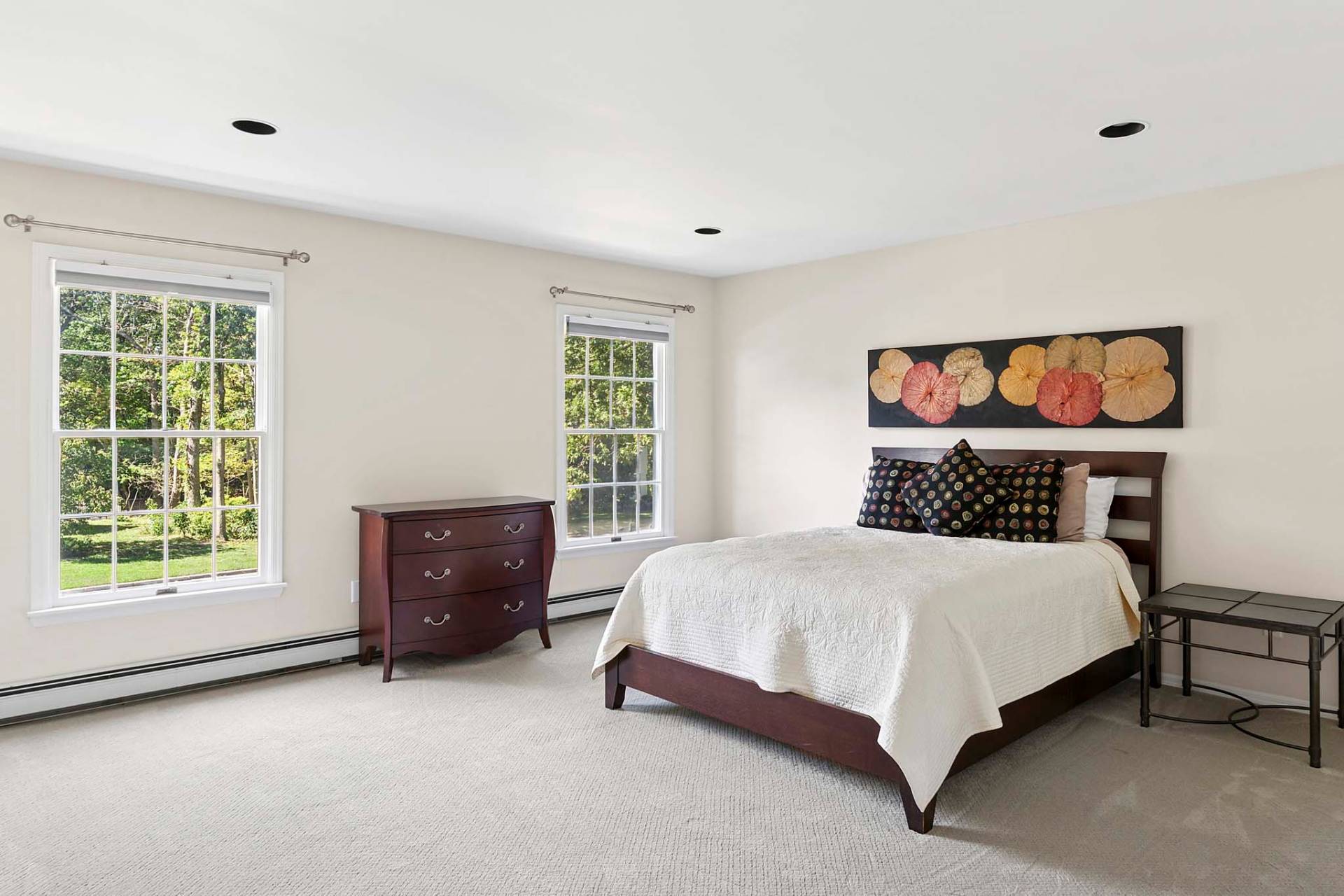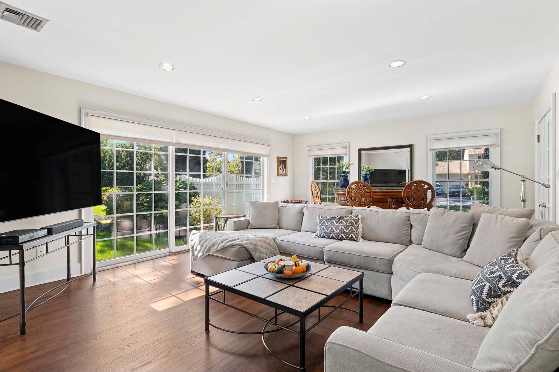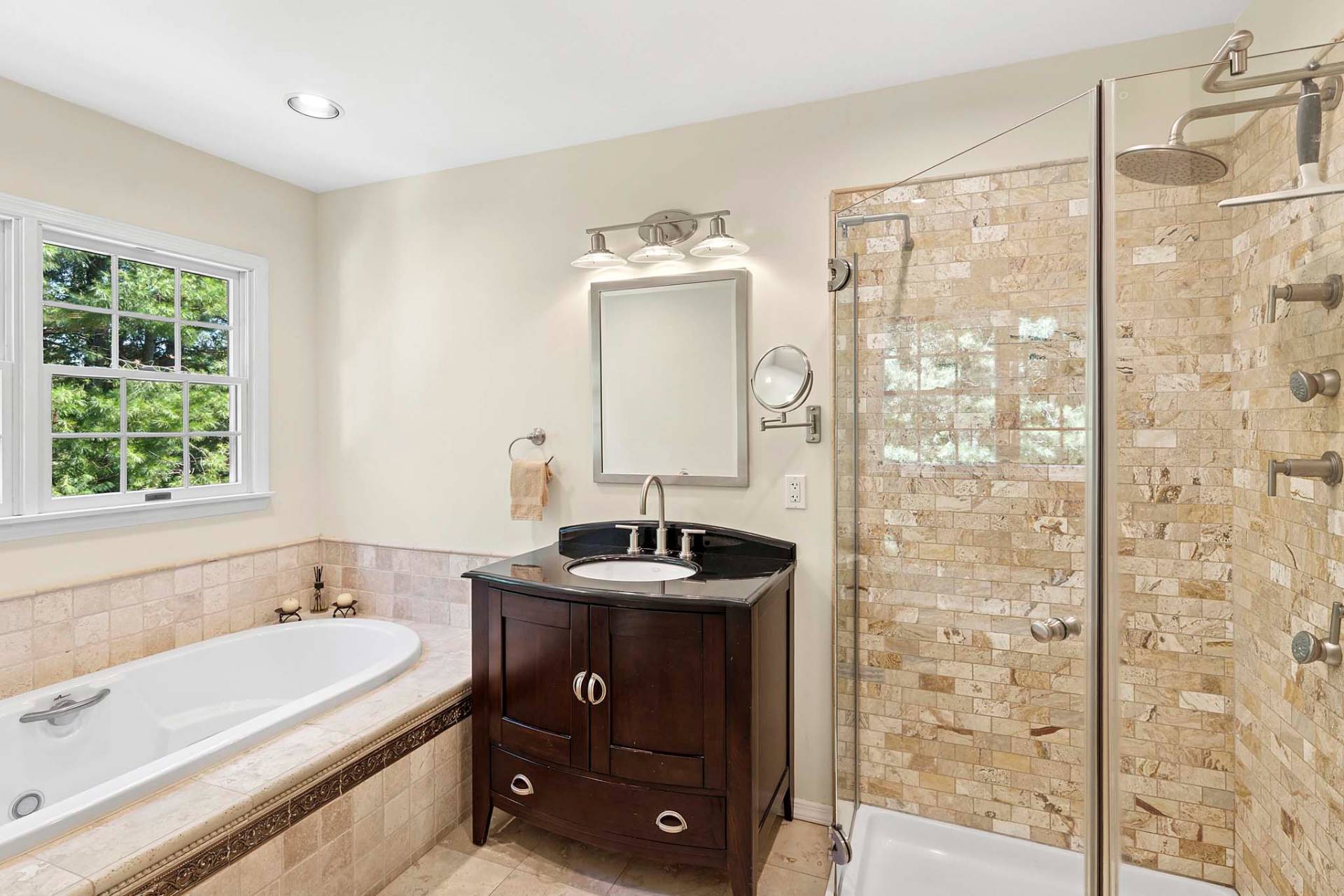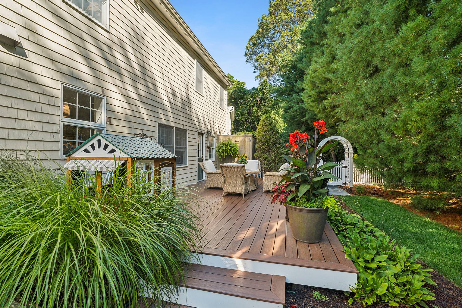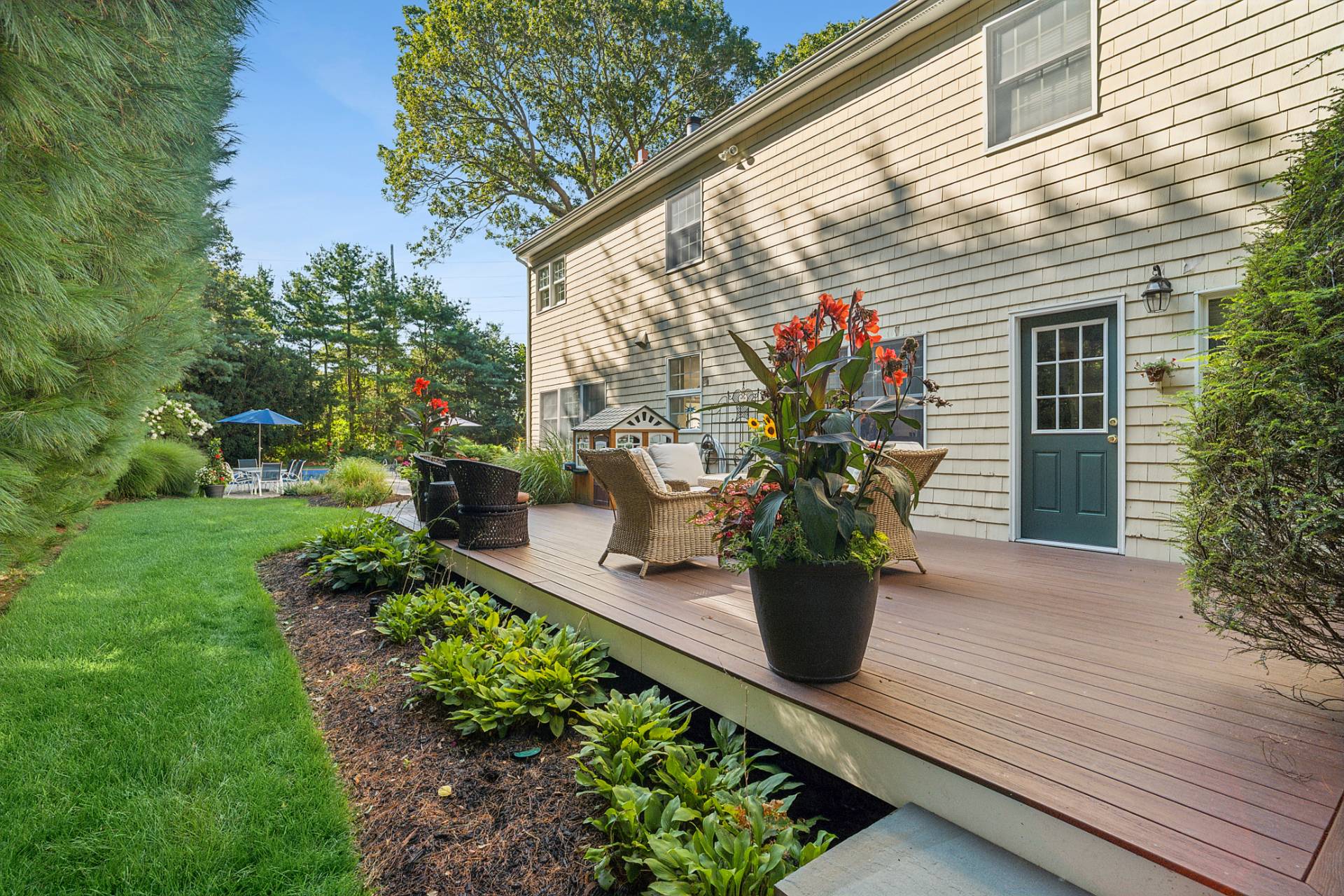 Set on nearly three-quarters of an acre, this elegant Colonial blends timeless design with modern updates. Offering 3,765 +/- sq. ft. of living space, the home features a welcoming foyer, sunlit living and dining rooms, a versatile den/office, and an eat-in kitchen at the heart of the home. The second floor includes a primary bedroom suite with a walk-in closet and spacious bath & office, along with 2 more guest bedrooms and full bath. An expansive addition over the garage creates even more flexibility, with a private bedroom, living room, dining area, and 1.5 baths - ideal for loved ones, guests, or a separate retreat. Outdoors, a 20'x40' saltwater pool is the centerpiece, surrounded by a spacious patio, outdoor shower, and lush landscaping. Additional highlights include a 2-car garage, cedar shake siding, hardwood floors, and 2-zone heating and central air. Private and thoughtfully maintained, this residence is designed for both comfortable living and effortless entertaining.