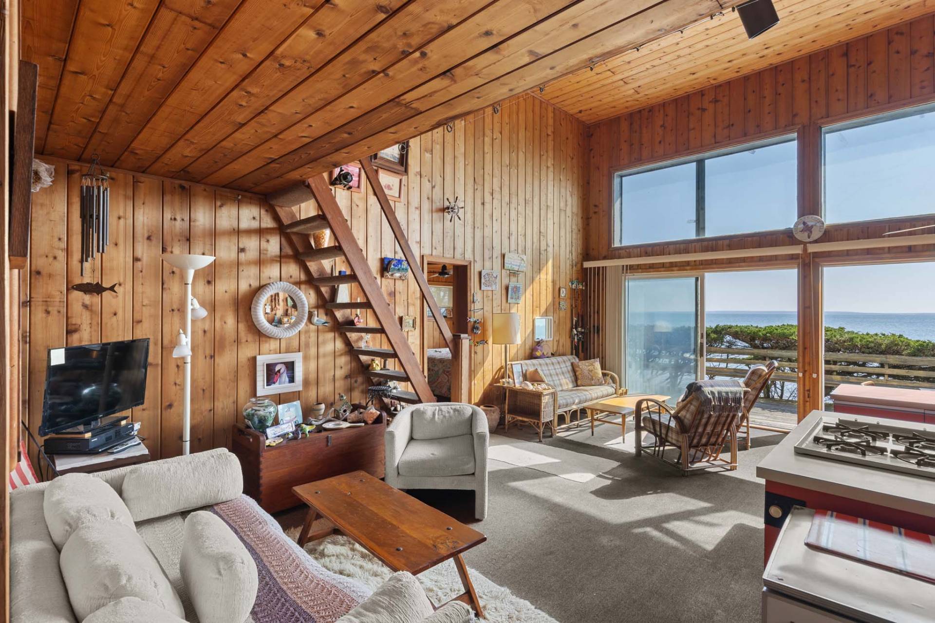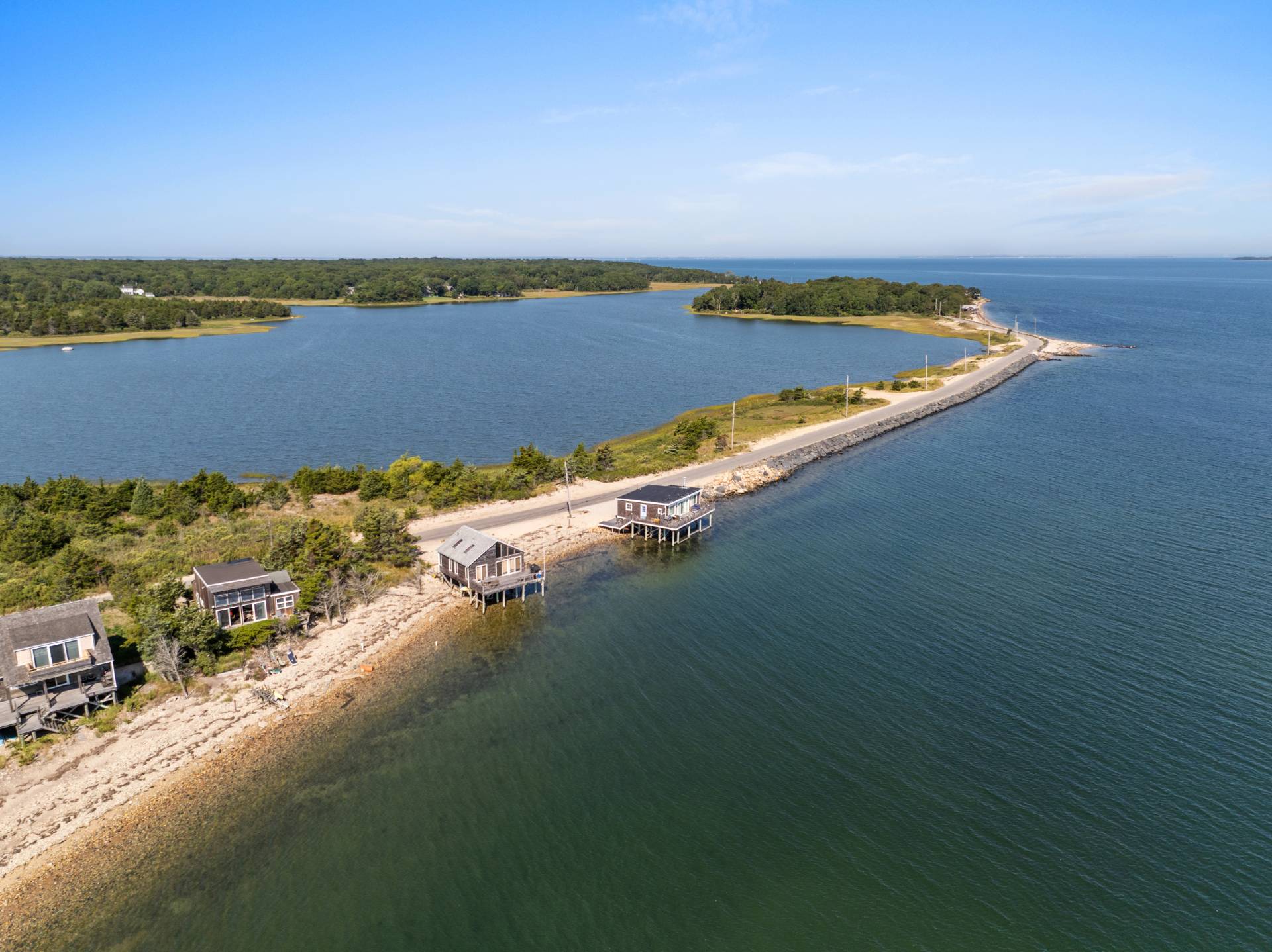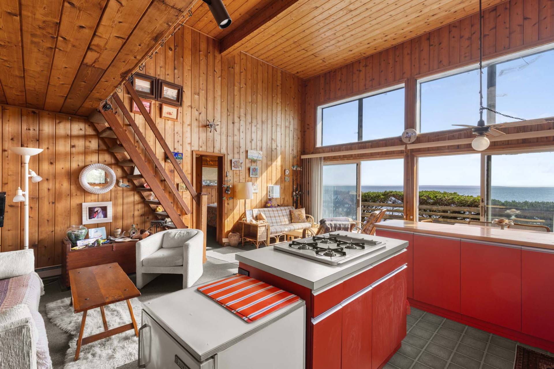 Relax and enjoy summer from one of East Hampton's most iconic waterfront locations. Owned by the same family for almost 40 years, this charming retro three-bedroom one bath home awaits someone seeking authentic old East Hampton living by the bay. Slow down and experience Gerard Drive's spectacular views, abundant recreational opportunities, beaches, and memorable sunsets. The home features a wraparound deck with panoramic water views, large double height ceiling, a large open floorplan living and kitchen area, plus a loft. This special home is being offered along with the adjoining undeveloped property, 225 Gerard Drive, creating a unique, combined .35 acres of land on one of the most outstanding bayfronts on the East End. Don't miss this compelling opportunity to live your dream.