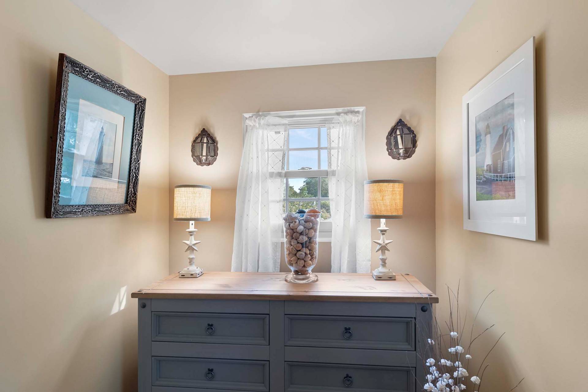 First impressions are everything, and 58 Ocean Avenue certainly makes a good one thanks to its classic black-and-white exterior, charming window boxes, and thoughtfully designed landscaping. Built in 1997, this 1,600 +/- sq. ft. Cape Cod has benefited from many upgrades over the years, including a newly installed solar system, which will significantly reduce energy costs. The home's Coastal Farmhouse aesthetic and vibe are felt in its warm shiplap accents, oak floors, wood-burning fireplace, and large picture window. For anyone needing a first-floor bedroom, you'll find one here - as well as a full bath and media room for relaxing. The sunny kitchen is perfect for making your favorite recipes, and the adjoining dining room is large enough to enjoy meals with loved ones and friends. From the living room, a staircase leads to the expansive primary bedroom, which stands out with its vaulted ceiling, skylight, two large closets, and full bath. An additional bedroom also enjoys a vaulted ceiling and walk-in closet. There's also a one-car garage and full basement with finishing potential. For outdoor enjoyment, the .23-acre property boasts an outdoor shower, spacious wooden deck for relaxing and alfresco dining, and has room for a pool. Desirably located South of the Highway, only minutes to one of the best ocean beaches in the Hamptons and many popular waterfront restaurants. Best of all, Hampton Bays is only 90-minutes from Midtown Manhattan. Easy to show and priced to sell!