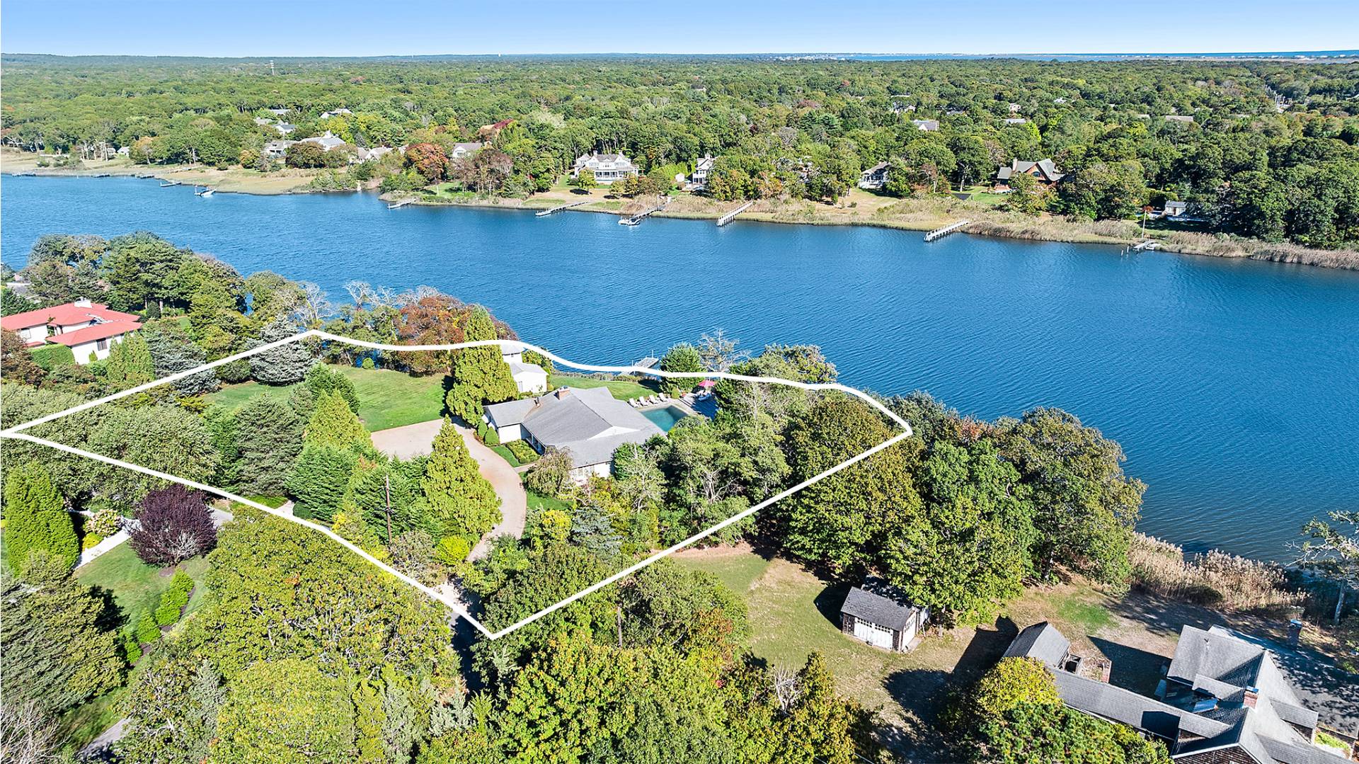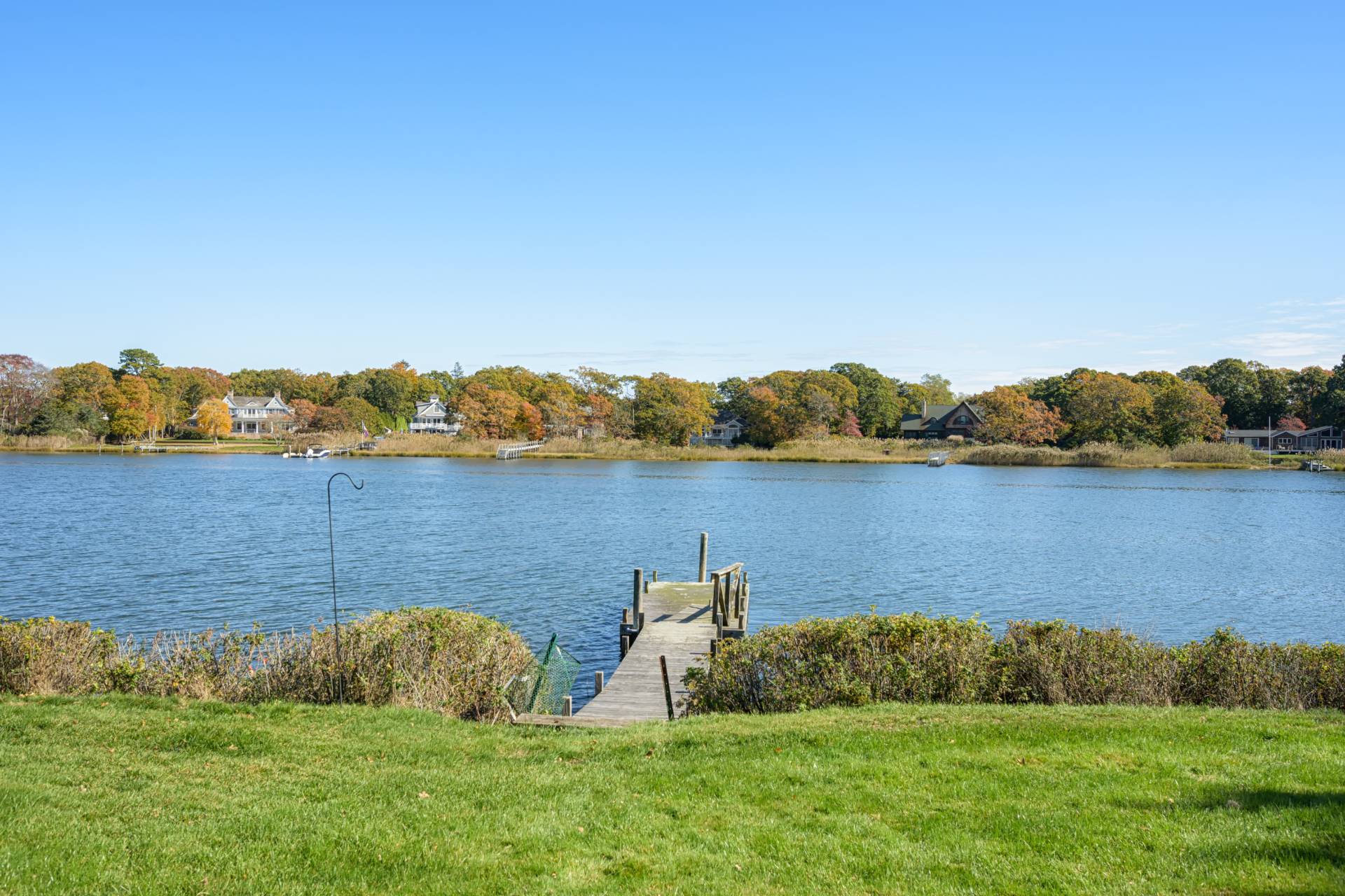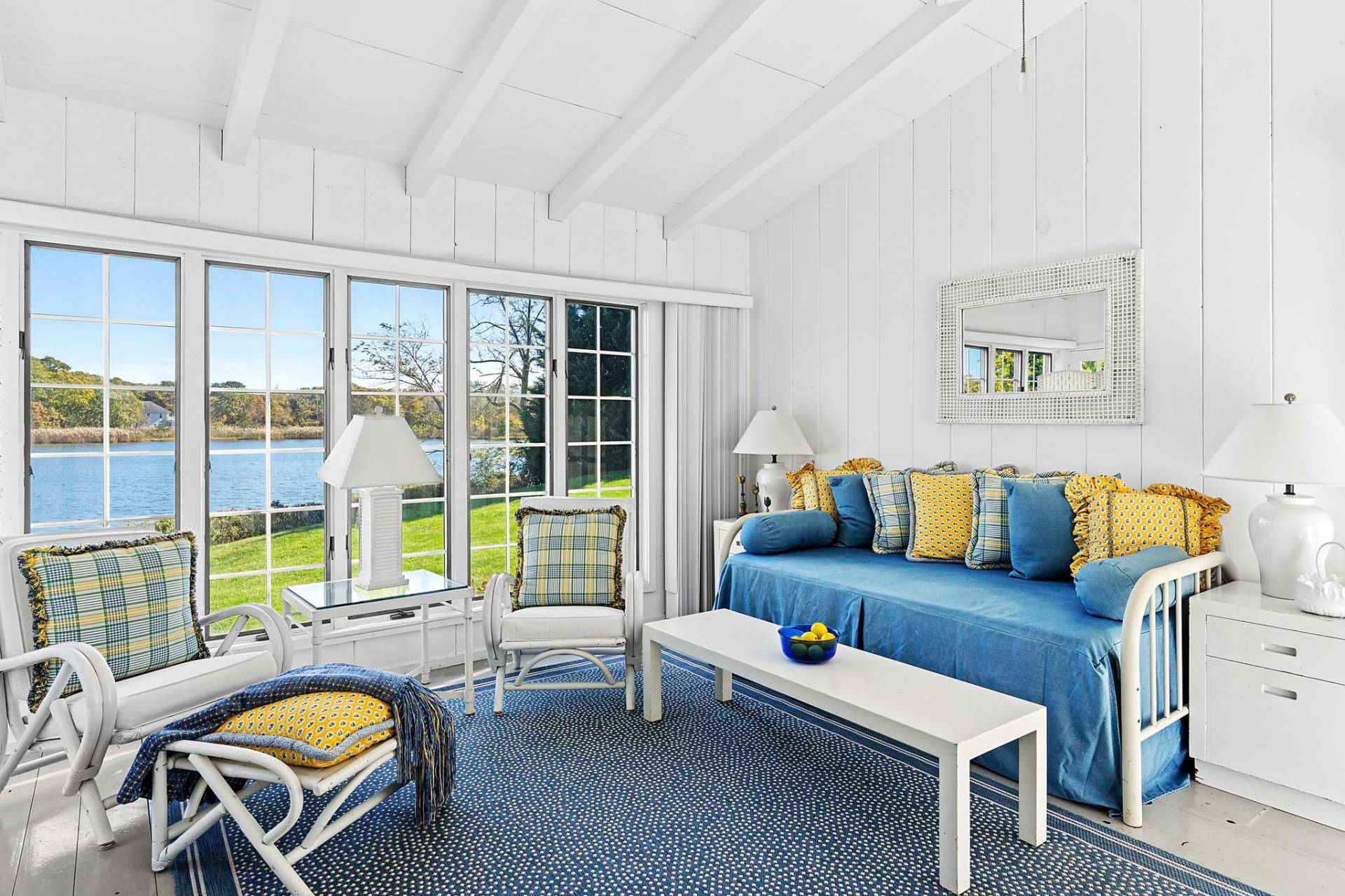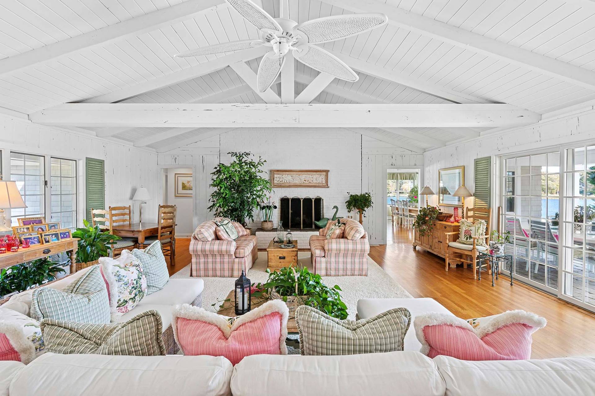 One of the first things you'll notice about this property is just how private and special it is, from the lush landscaping dotted with decades-old specimen trees to the carefully tended English gardens overlooking more than 320' of Quantuck Bay frontage. Located in the historic hamlet of Quiogue (between Quogue and Westhampton Beach), the 1.5-acre property was once part of Quantuck Bay Farms, owned by the Conklin family to service its magnificent Meadowcroft Estate. Remaining evidence of its farming past can be found in the small windmill attached to the property's 479 +/- sq. ft. legal guest cottage. Built in 1958 and lovingly renovated over the years, the single-story main house has 5 bedrooms and 3 baths. The charm of the home begins at its old-fashioned covered porch and fuchsia-colored front door that opens to the expansive 33'x22' great room. The memorable living space features a wood-burning fireplace, shiplap ceiling, wooden cross beams, whitewashed walls, and bank of French doors overlooking the pool and water. From there, head to the beautiful George Vickers-designed chef's kitchen and light-filled dining room offering peaceful water views. The north wing also has a laundry room and two bedrooms. On the south wing, find the primary bedroom suite and two additional bedrooms. The backyard is just as delightful. There you can relax and entertain loved ones and friends under the covered porch and sun and swim by the large deck and heated gunite pool. The outdoor enjoyment continues at the dock, perfect for fishing and launching a kayak or paddleboard. Boating enthusiasts will find it deep enough to keep an outboard boat (approximately 21'). This is a very special property now ready for a new owner to share in its magic and next chapter.