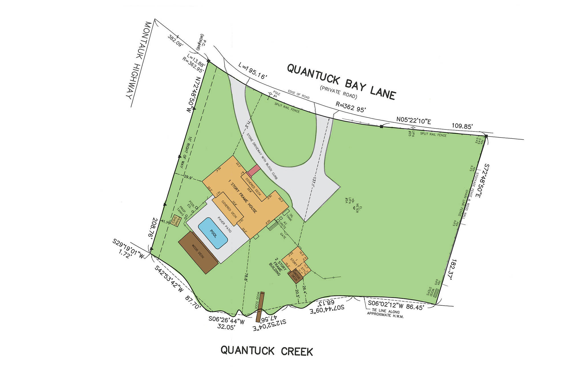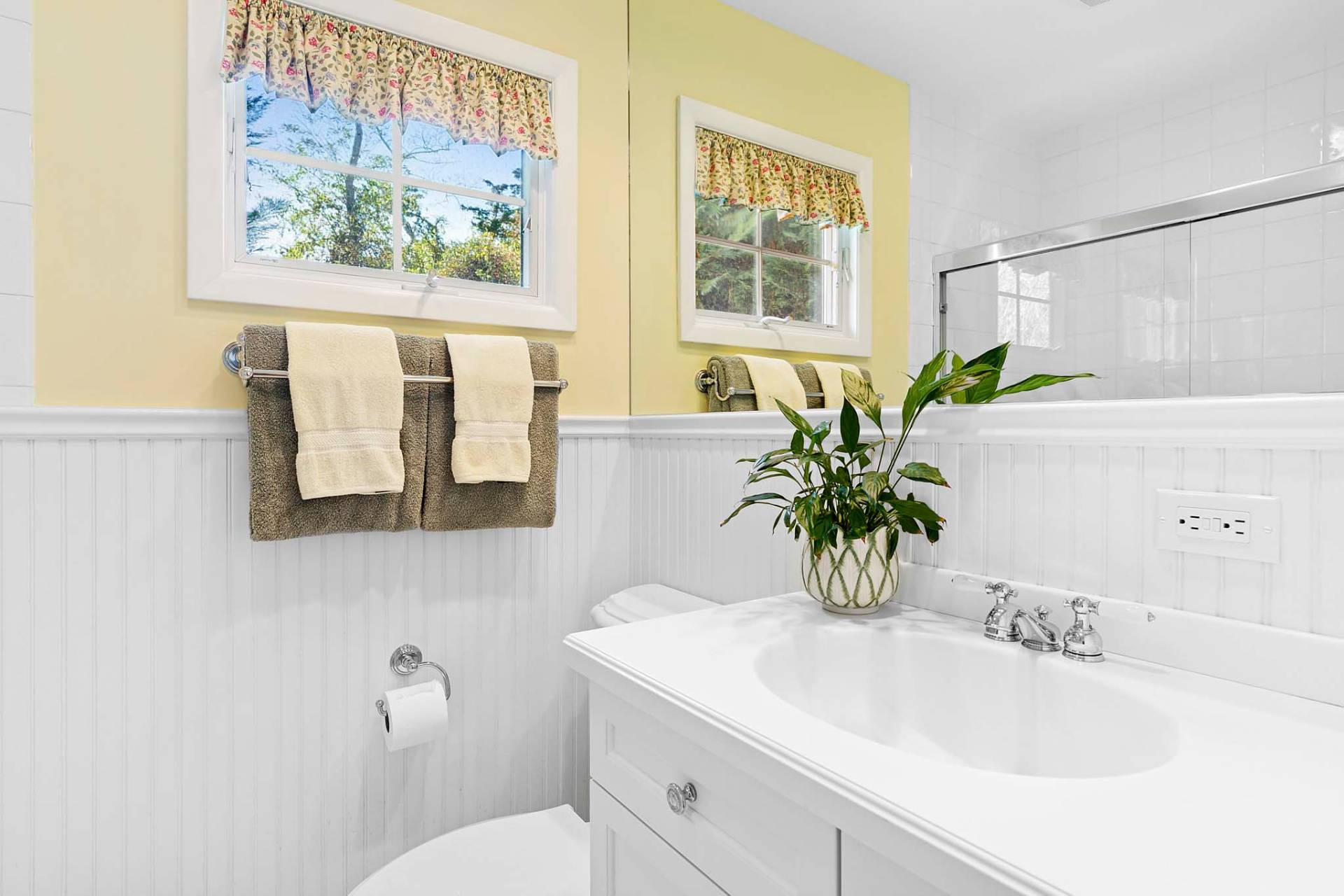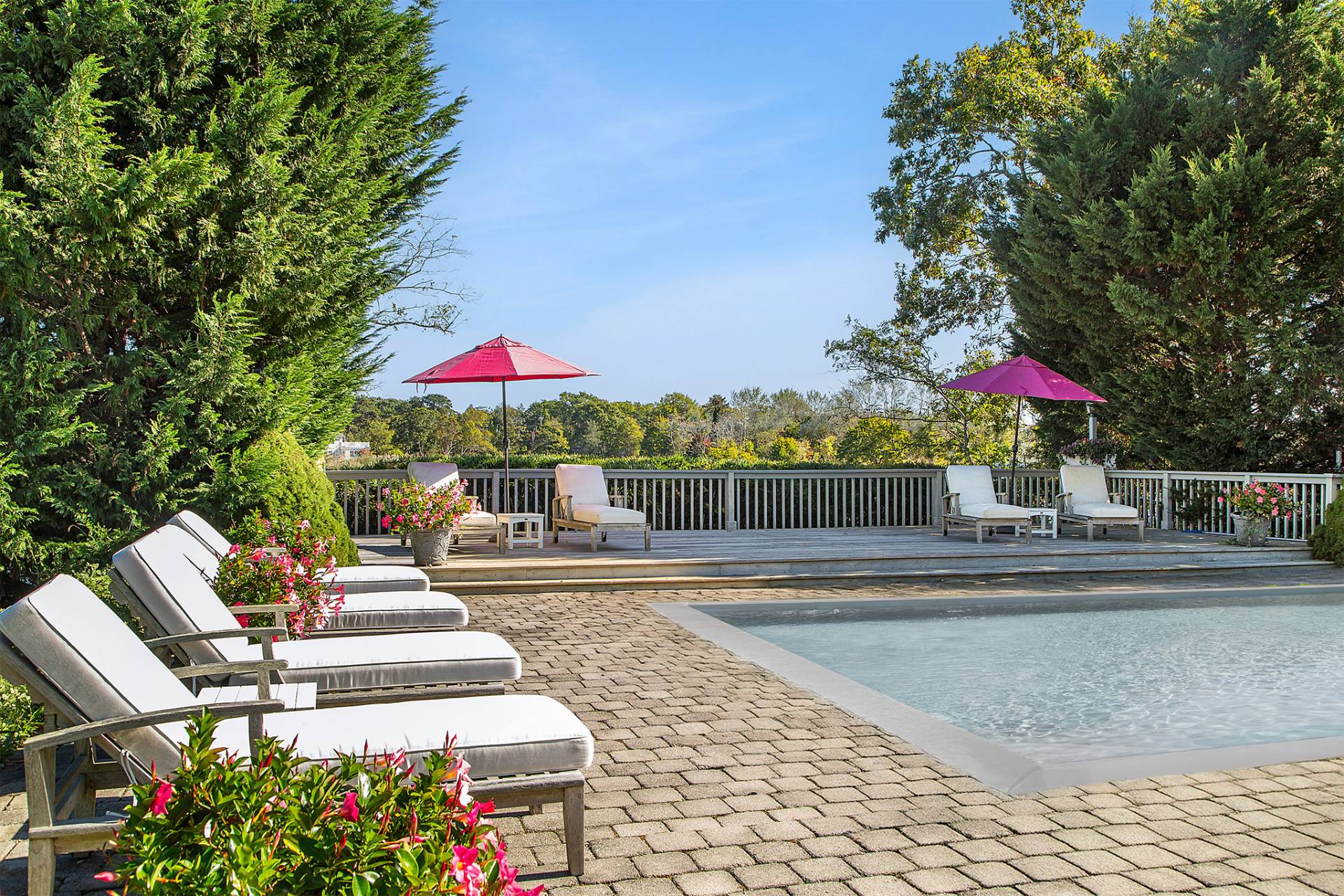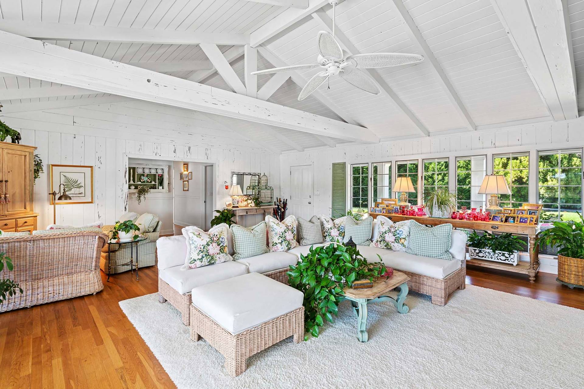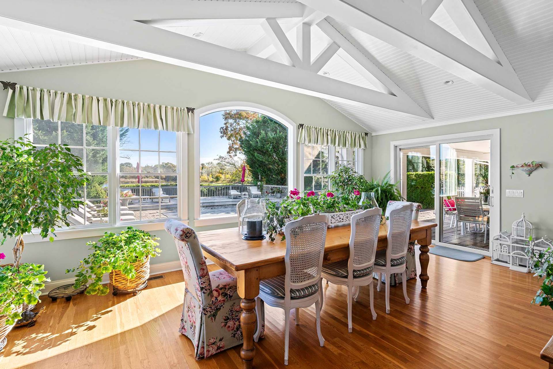 One of the first things you'll notice about this property is just how private and special it is, from the lush landscaping dotted with decades-old specimen trees to the carefully tended English gardens overlooking more than 320' of Quantuck Bay frontage. Located in the historic hamlet of Quiogue (between Quogue and Westhampton Beach), the 1.5-acre property was once part of Quantuck Bay Farms, owned by the Conklin family to service its magnificent Meadowcroft Estate. Remaining evidence of its farming past can be found in the small windmill attached to the property's 479 +/- sq. ft. legal guest cottage. Built in 1958 and lovingly renovated over the years, the single-story main house has 5 bedrooms and 3 baths. The charm of the home begins at its old-fashioned covered porch and fuchsia-colored front door that opens to the expansive 33'x22' great room. The memorable living space features a wood-burning fireplace, shiplap ceiling, wooden cross beams, whitewashed walls, and bank of French doors overlooking the pool and water. From there, head to the beautiful George Vickers-designed chef's kitchen and light-filled dining room offering peaceful water views. The north wing also has a laundry room and two bedrooms. On the south wing, find the primary bedroom suite and two additional bedrooms. The backyard is just as delightful. There you can relax and entertain loved ones and friends under the covered porch and sun and swim by the large deck and heated gunite pool. The outdoor enjoyment continues at the dock, perfect for fishing and launching a kayak or paddleboard. Boating enthusiasts will find it deep enough to keep an outboard boat (approximately 21'). This is a very special property now ready for a new owner to share in its magic and next chapter.