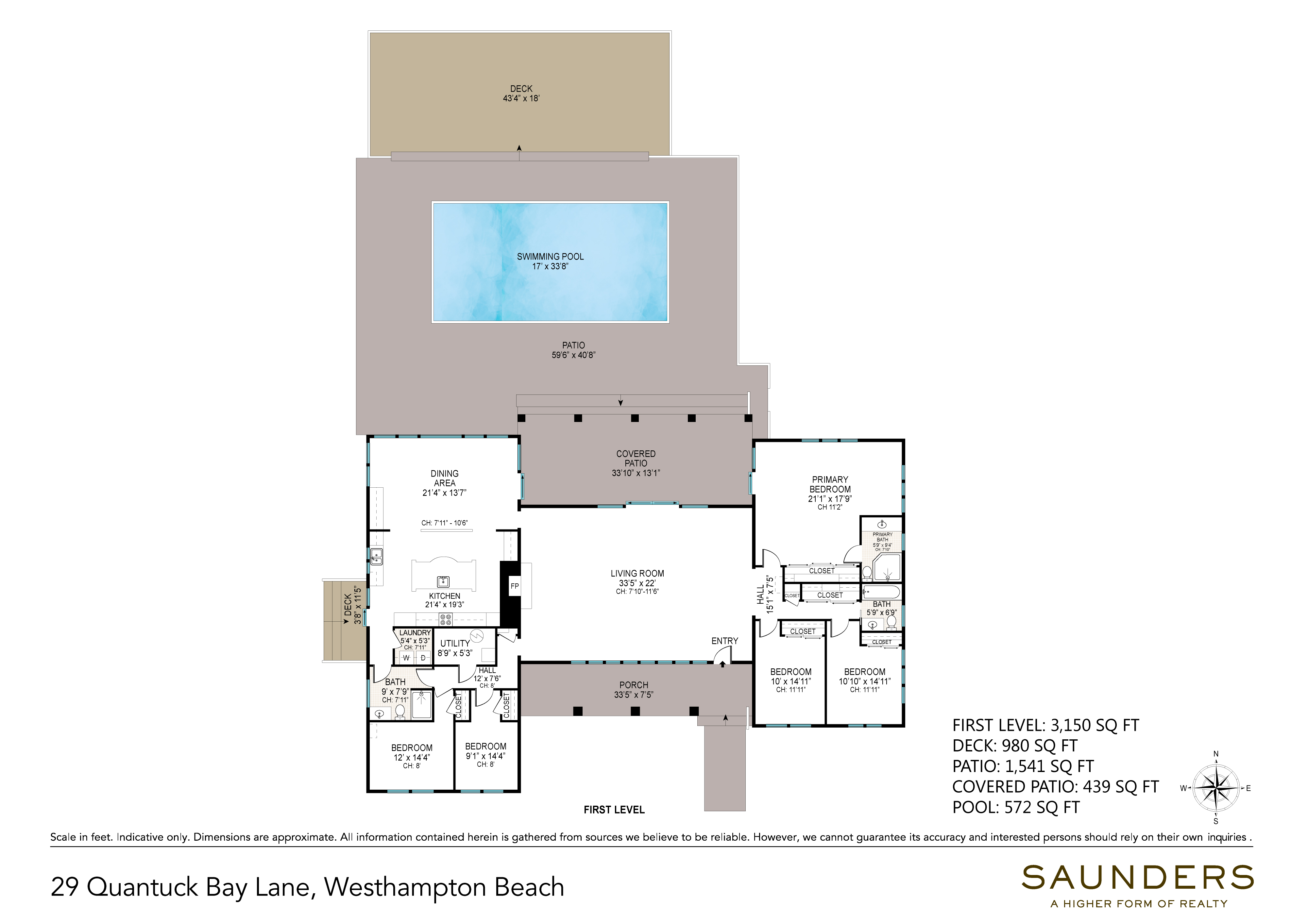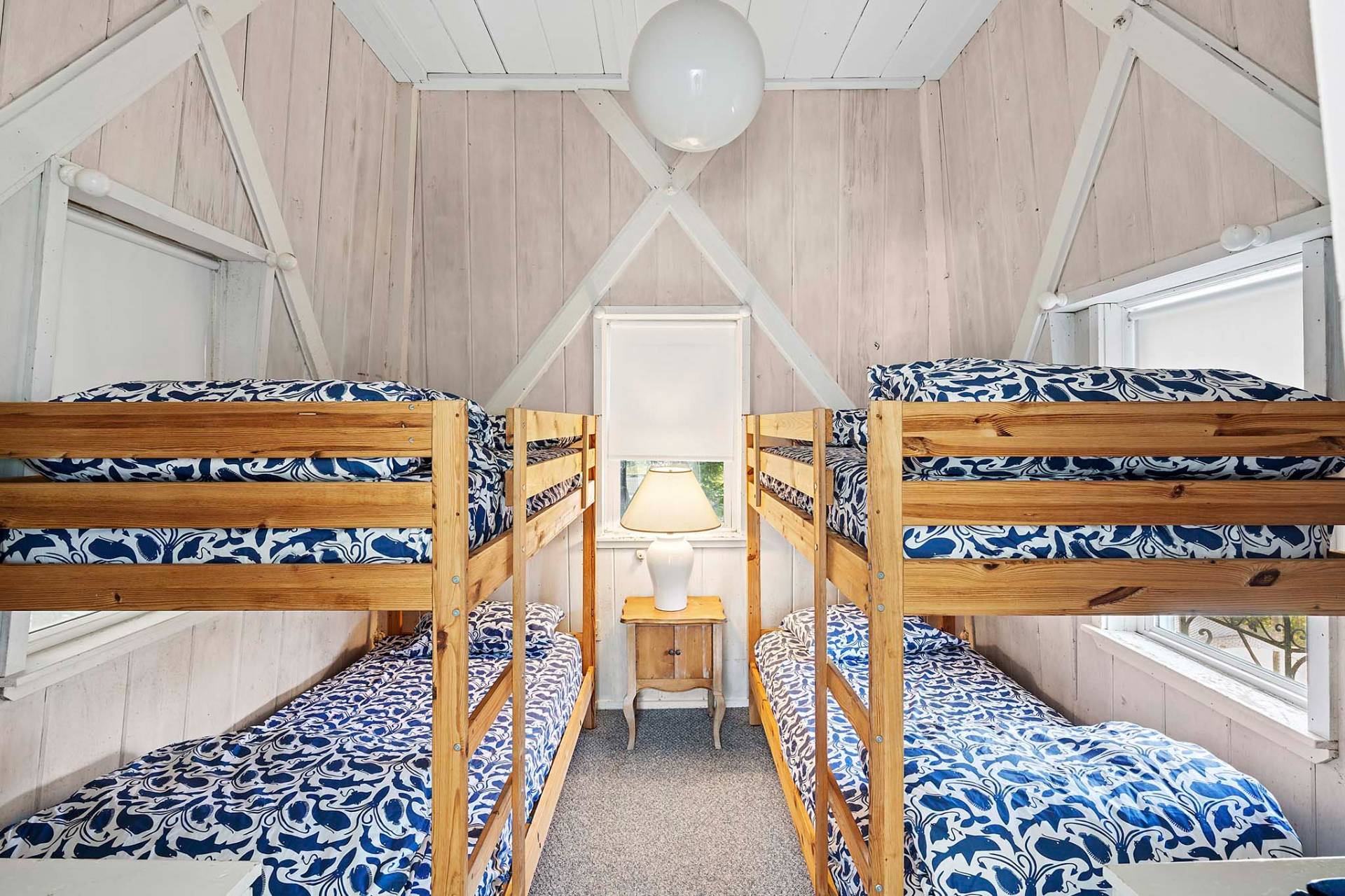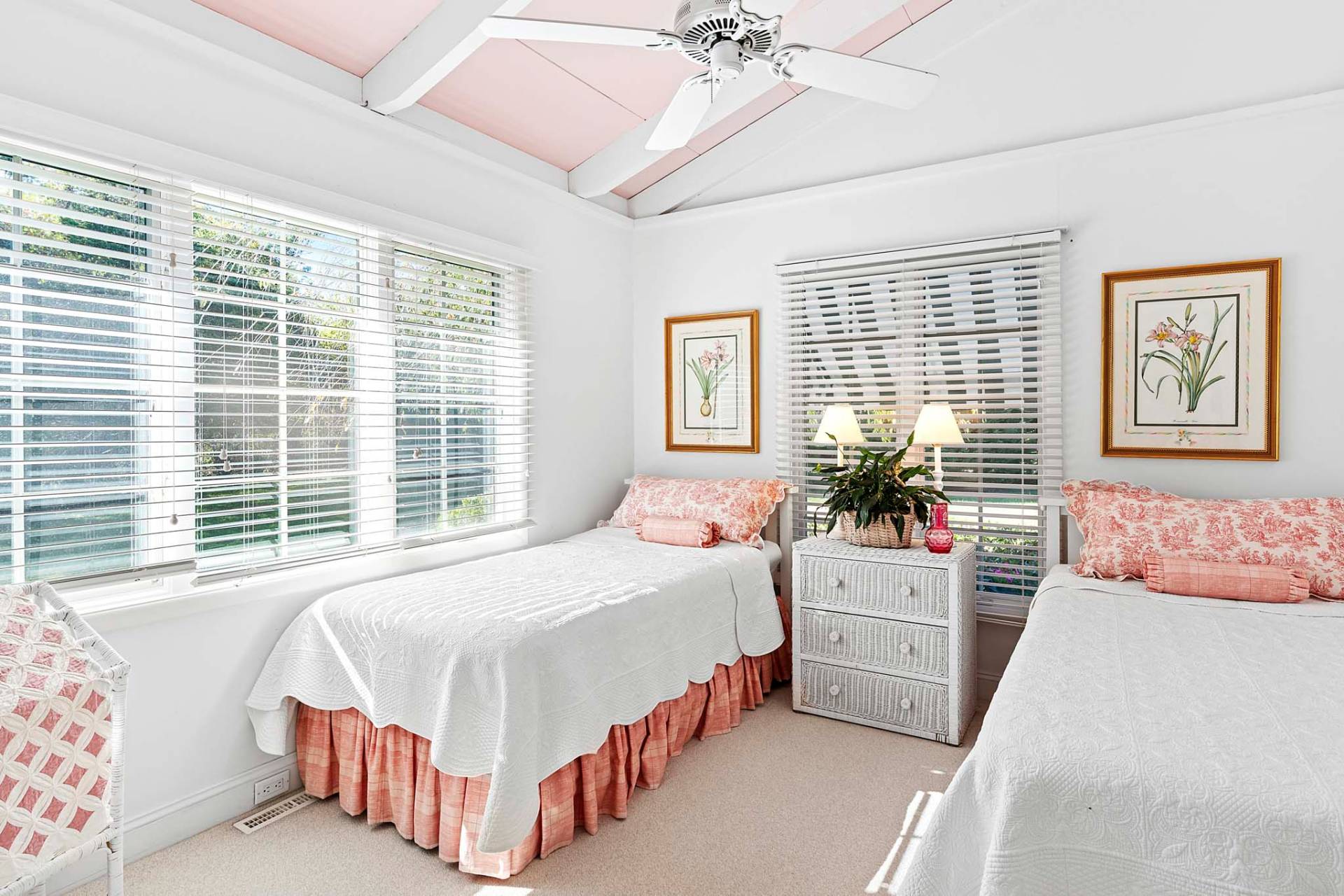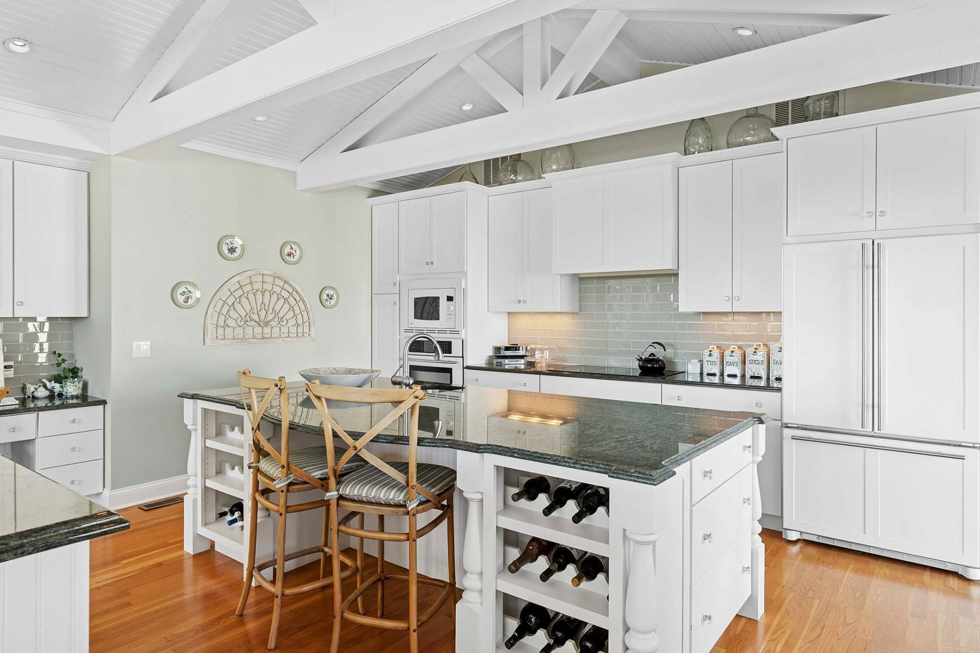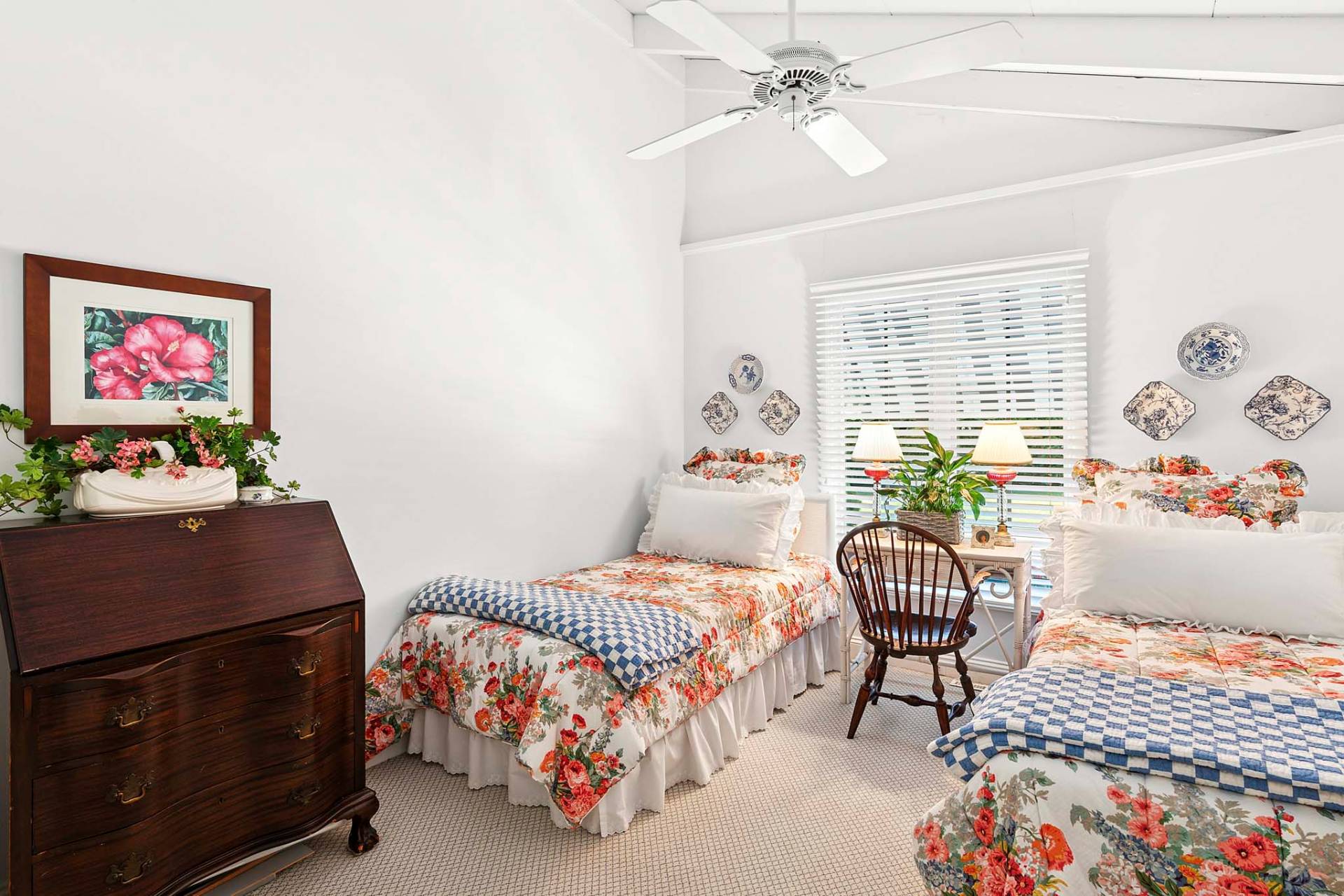 One of the first things you'll notice about this property is just how private and special it is, from the lush landscaping dotted with decades-old specimen trees to the carefully tended English gardens overlooking more than 320' of Quantuck Bay frontage. Located in the historic hamlet of Quiogue (between Quogue and Westhampton Beach), the 1.5-acre property was once part of Quantuck Bay Farms, owned by the Conklin family to service its magnificent Meadowcroft Estate. Remaining evidence of its farming past can be found in the small windmill attached to the property's 479 +/- sq. ft. legal guest cottage. Built in 1958 and lovingly renovated over the years, the single-story main house has 5 bedrooms and 3 baths. The charm of the home begins at its old-fashioned covered porch and fuchsia-colored front door that opens to the expansive 33'x22' great room. The memorable living space features a wood-burning fireplace, shiplap ceiling, wooden cross beams, whitewashed walls, and bank of French doors overlooking the pool and water. From there, head to the beautiful George Vickers-designed chef's kitchen and light-filled dining room offering peaceful water views. The north wing also has a laundry room and two bedrooms. On the south wing, find the primary bedroom suite and two additional bedrooms. The backyard is just as delightful. There you can relax and entertain loved ones and friends under the covered porch and sun and swim by the large deck and heated gunite pool. The outdoor enjoyment continues at the dock, perfect for fishing and launching a kayak or paddleboard. Boating enthusiasts will find it deep enough to keep an outboard boat (approximately 21'). This is a very special property now ready for a new owner to share in its magic and next chapter.
