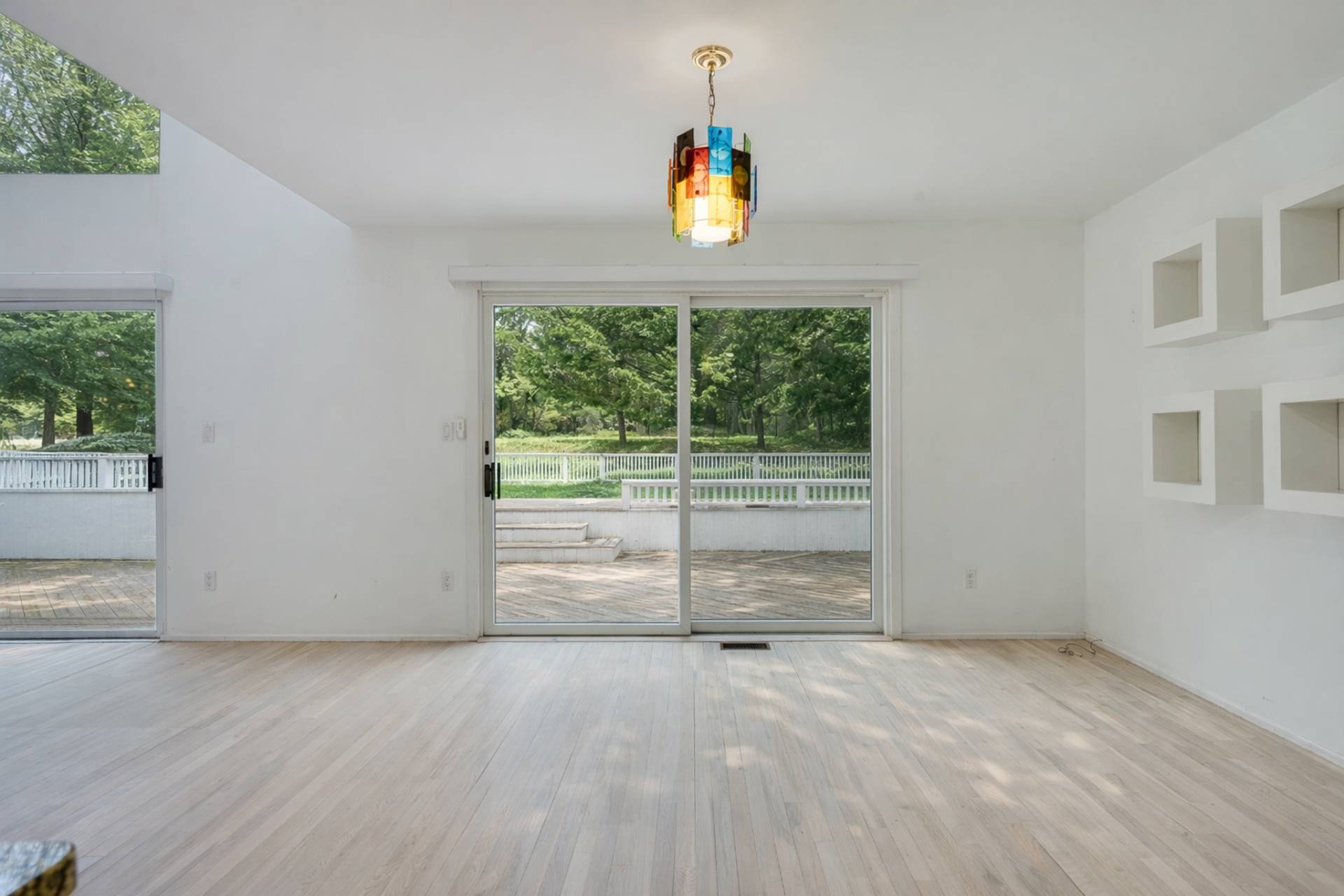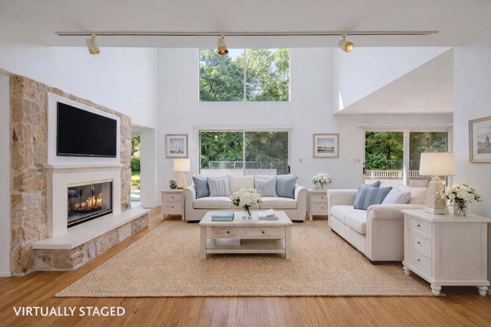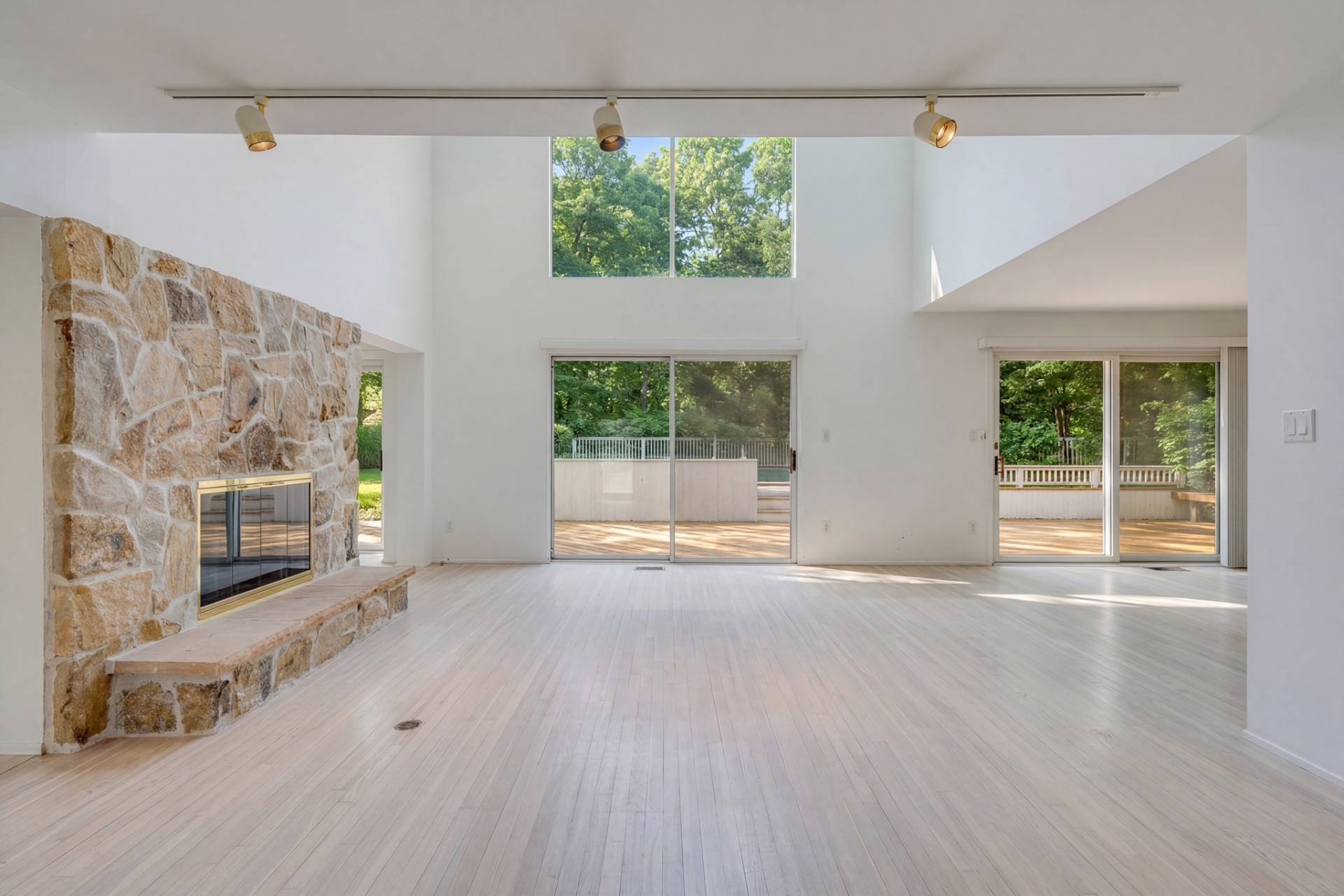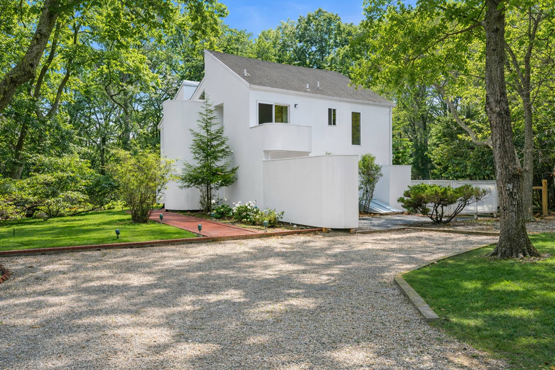 Originally designed and built in 1981 by renowned Argentine modern architect Jorge Sosa, this distinctive home is set on 0.98 acres just over a mile outside of East Hampton Village. A substantial 1,080 SF addition was completed in 1990, followed by a 150 SF screened porch in 2004, along with expansive decking and a saltwater pool. The home features soaring ceilings in every bedroom and in the dramatic living space, anchored by a large stone wood-burning fireplace. Rich in architectural character and scale, this is a rare opportunity to reimagine an original modern residence for the 21st century and significantly enhance its value. Ideally located just two minutes into East Hampton's Northwest Woods, approximately one mile from East Hampton Village, five minutes to the bay beaches, and ten minutes to the ocean.