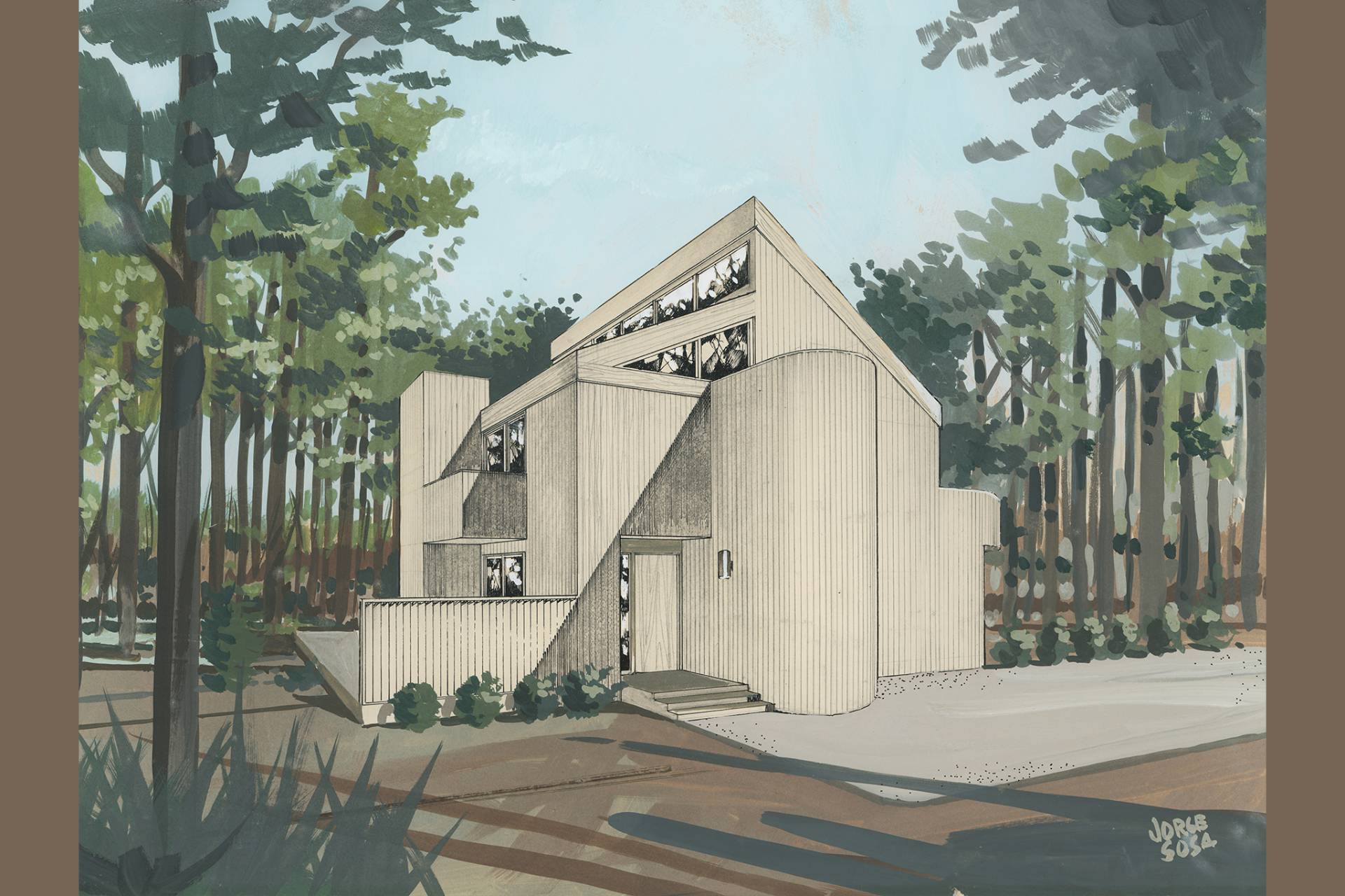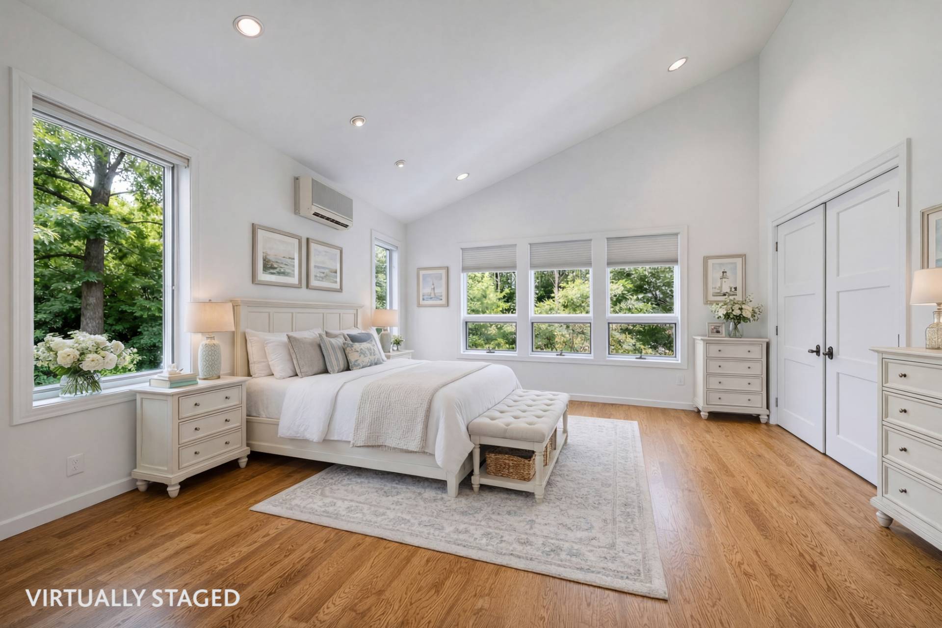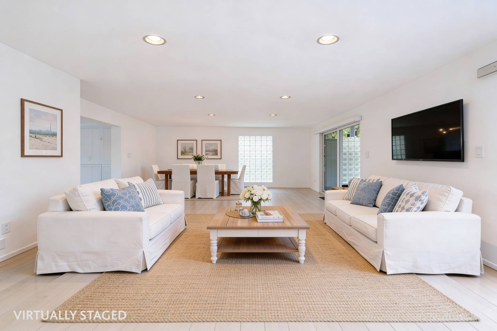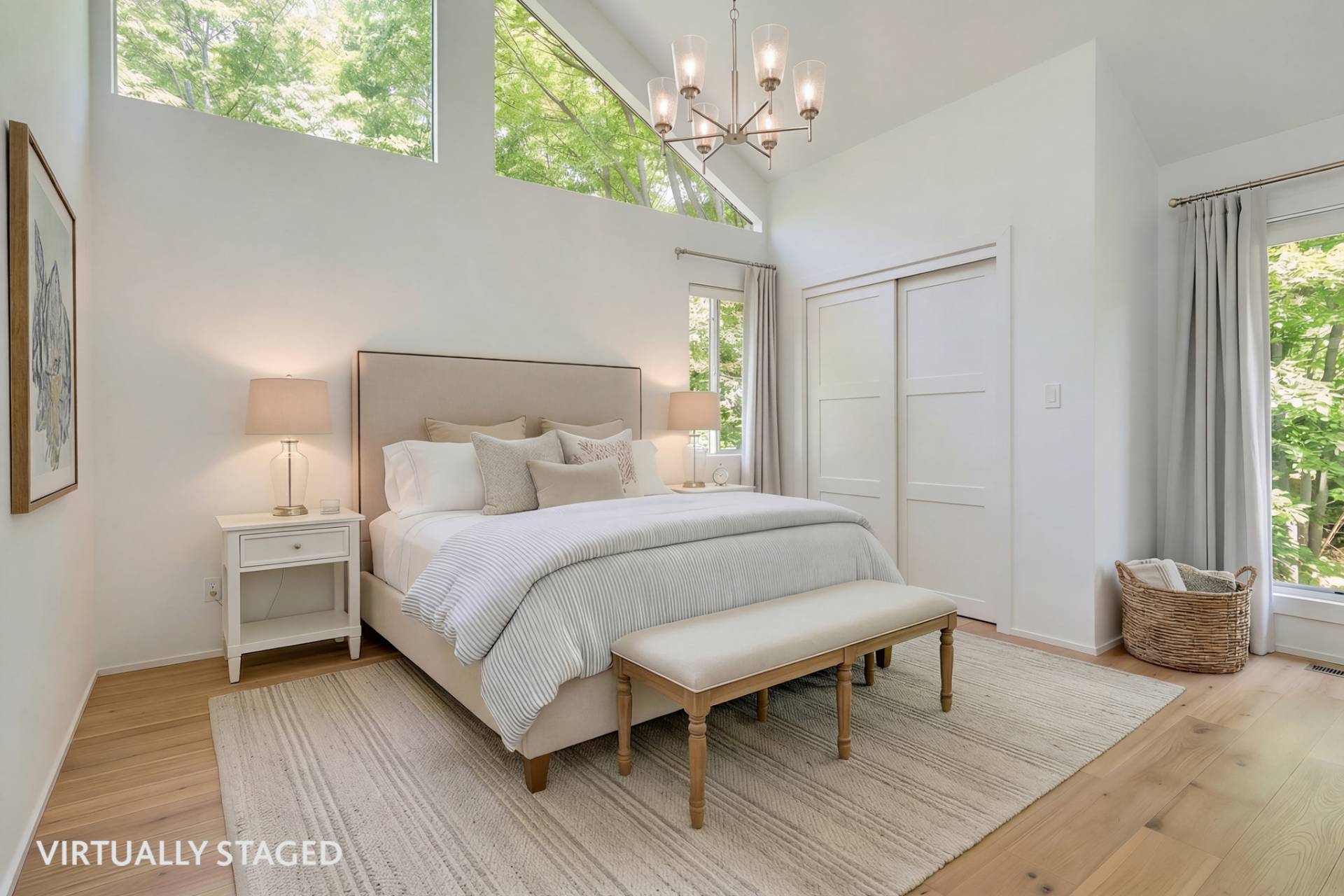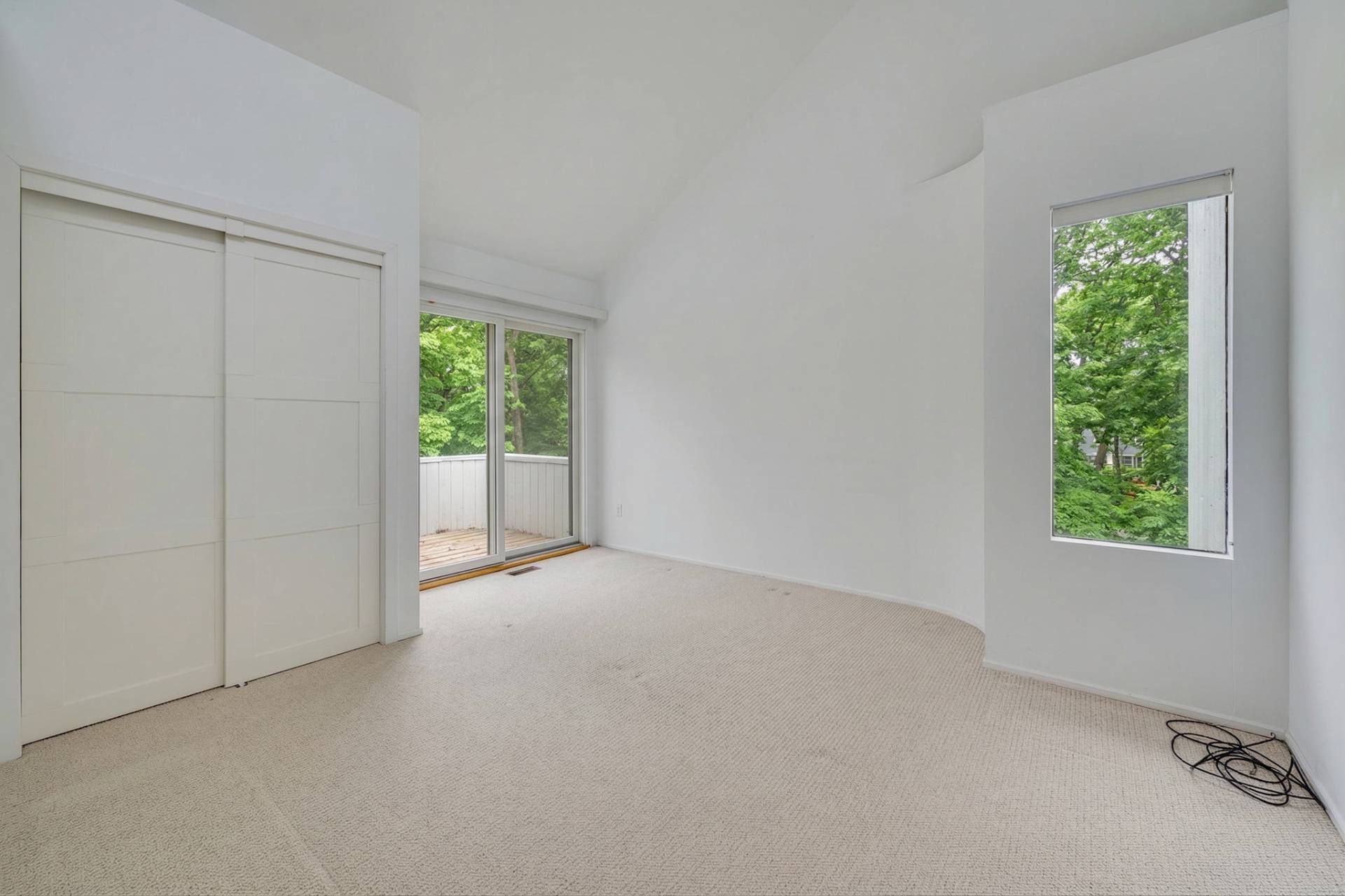 Originally designed and built in 1981 by renowned Argentine modern architect Jorge Sosa, this distinctive home is set on 0.98 acres just over a mile outside of East Hampton Village. A substantial 1,080 SF addition was completed in 1990, followed by a 150 SF screened porch in 2004, along with expansive decking and a saltwater pool. The home features soaring ceilings in every bedroom and in the dramatic living space, anchored by a large stone wood-burning fireplace. Rich in architectural character and scale, this is a rare opportunity to reimagine an original modern residence for the 21st century and significantly enhance its value. Ideally located just two minutes into East Hampton's Northwest Woods, approximately one mile from East Hampton Village, five minutes to the bay beaches, and ten minutes to the ocean.