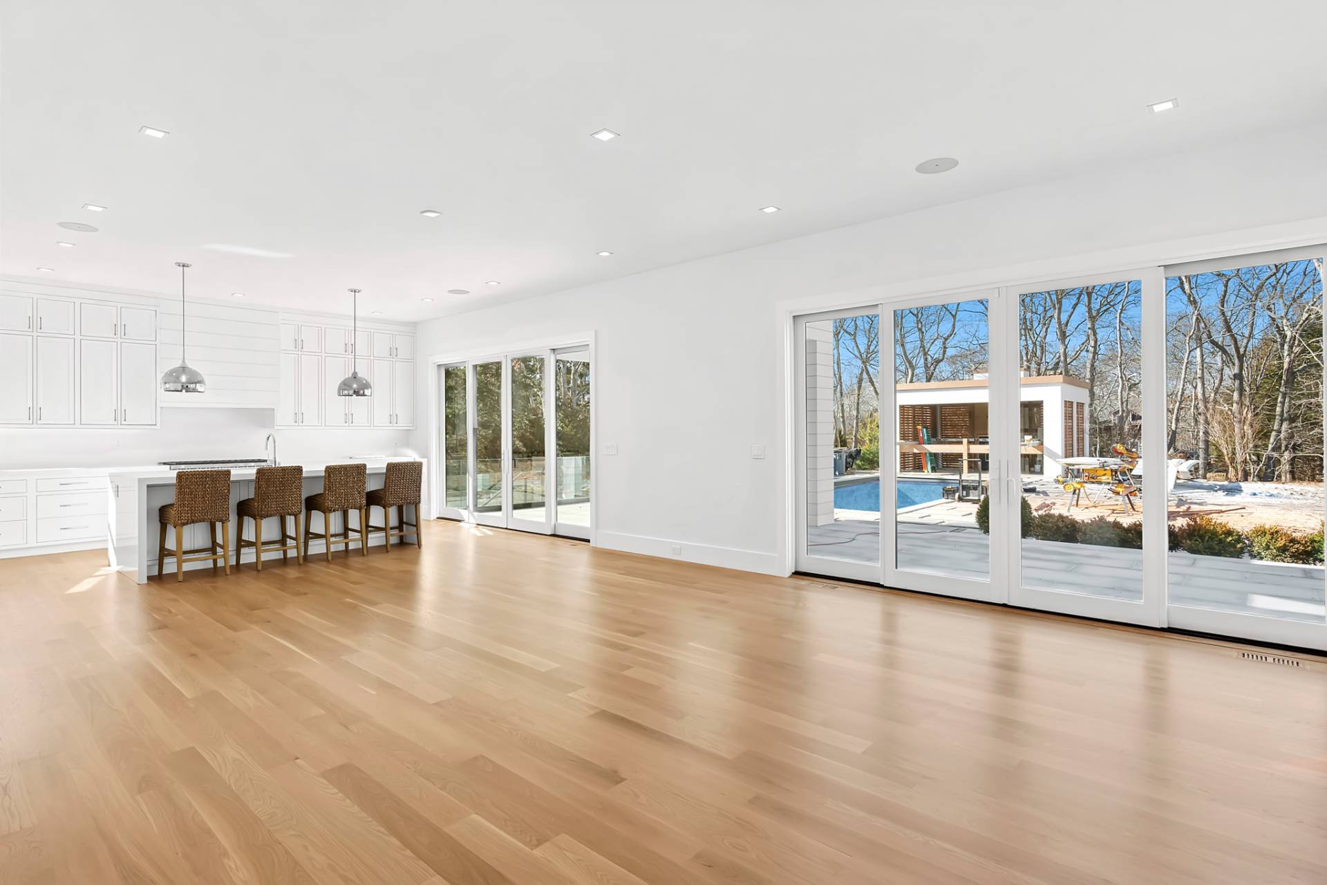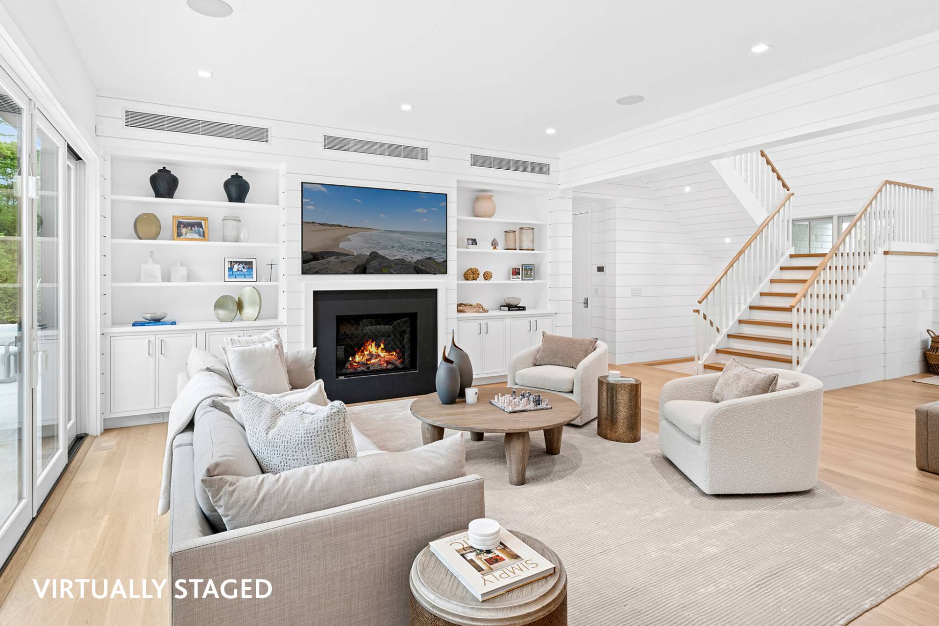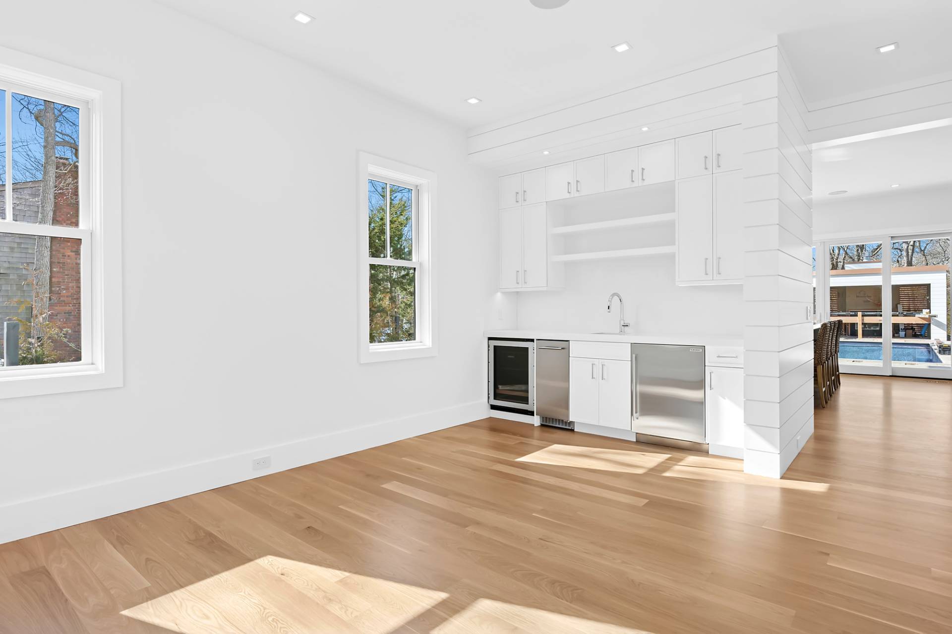 Experience luxury living in this stunning new construction by Robert Kacperski, LLC in East Hampton's highly sought after Lion Head Beach Community. On just shy of half an acre, this newly constructed masterpiece is 4,748 +/- sq. ft. including 1,344+/- finished sq. ft. in the lower level. The 6 bedroom, 6.5 bath house is designed for seamless indoor-outdoor living. Inside, enjoy light-filled spaces with 10' ceilings on all levels and white oak select floors on the first and second levels. On the first floor, the chef's kitchen impresses with 2"quartz countertops, custom cabinetry, Wolf appliances, two dishwashers, and a custom pantry. The great room, featuring a gas fireplace and expansive sliding doors that showcase the views and offer effortless access to the backyard oasis. The formal dining room which could also serve as a den or office boasts a wet bar complete with sink, wine cooler, beverage center and custom cabinetry. Also on the first floor is an ensuite bedroom with sliders out to the back deck and a powder room. Thoughtful touches like shiplap and beautiful wood staircases add a touch of sophistication. The second floor boasts the luxe ensuite primary with a gas fireplace, two custom fitted walk-in closets, a private balcony and a spa-like bath wrapped in porcelain with a heated floor, a soaking tub, an oversized shower and a double vanity with two sinks, a dressing table, and a 2" quartz countertop. Additionally on the second floor are three spacious ensuite bedrooms and a laundry room with custom cabinetry, shelving, and sink. The lower level features 10' ceilings, a sliding door walkout egress, and multiple large windows that allow plenty of natural light into the space. The large rec area has extra outlets, making it easy to install gym equipment. Also in the finished lower level are a wet bar with a dishwasher, sink, wine cooler, beverage center and custom cabinetry, a light-filled bedroom and a full bath. Outside, there is plenty of covered and open decking with an outdoor kitchen, an 18'x 40' heated saltwater gunite pool with Olympic stairs spanning one end, a pool pavilion with a wood-burning fireplace, a six person saltwater spa, and an outdoor shower. Some of the extras are the EV charger in the attached 2-car garage, a whole-house humidifying system and two hot water on-demand systems. Life in Lion Head is a luxury in itself, highlighted by quiet streets, bay breezes, and exclusive access to the private bay beach and marina offering kayak/paddleboard racks. This exceptional residence, near to multiple waterfront restaurants and just minutes from both Amagansett and East Hampton villages & ocean beaches is designed for the ultimate Hamptons lifestyle and ready for you to enjoy Summer 2026!