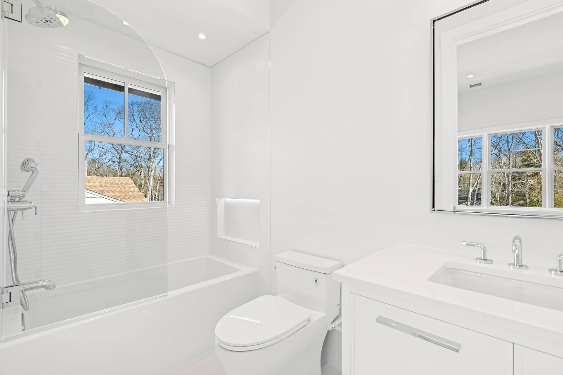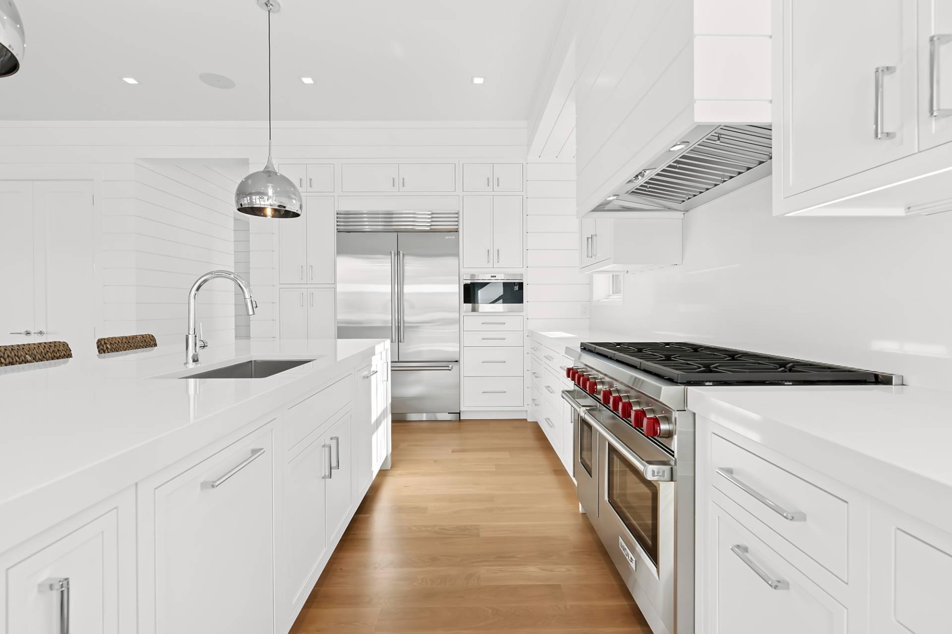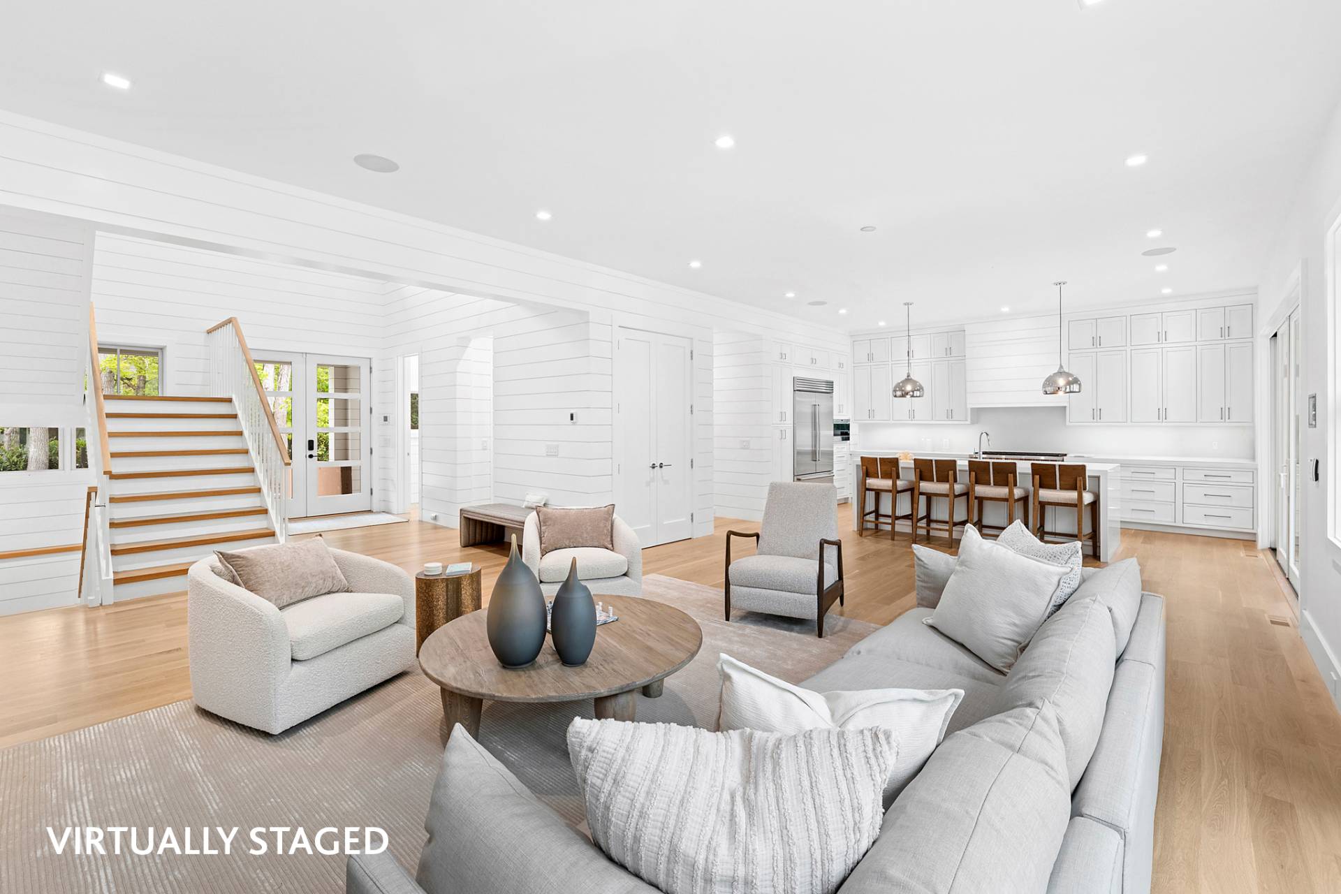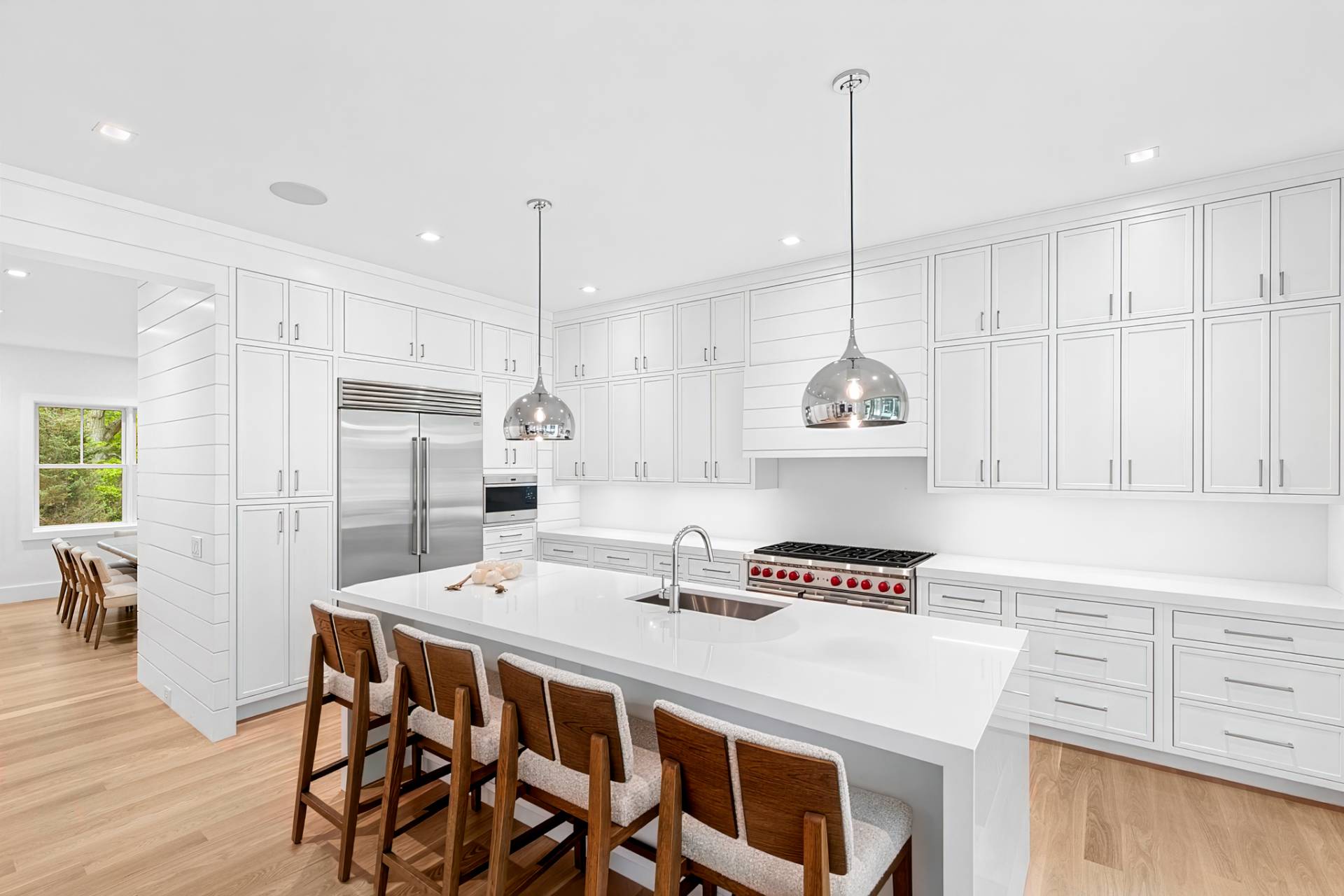 Experience luxury living in this stunning new construction by Robert Kacperski, LLC in East Hampton's highly sought after Lion Head Beach Community. On just shy of half an acre, this newly constructed masterpiece is 4,748 +/- sq. ft. including 1,344+/- finished sq. ft. in the lower level. The 6 bedroom, 6.5 bath house is designed for seamless indoor-outdoor living. Inside, enjoy light-filled spaces with 10' ceilings on all levels and white oak select floors on the first and second levels. On the first floor, the chef's kitchen impresses with 2"quartz countertops, custom cabinetry, Wolf appliances, two dishwashers, and a custom pantry. The great room, featuring a gas fireplace and expansive sliding doors that showcase the views and offer effortless access to the backyard oasis. The formal dining room which could also serve as a den or office boasts a wet bar complete with sink, wine cooler, beverage center and custom cabinetry. Also on the first floor is an ensuite bedroom with sliders out to the back deck and a powder room. Thoughtful touches like shiplap and beautiful wood staircases add a touch of sophistication. The second floor boasts the luxe ensuite primary with a gas fireplace, two custom fitted walk-in closets, a private balcony and a spa-like bath wrapped in porcelain with a heated floor, a soaking tub, an oversized shower and a double vanity with two sinks, a dressing table, and a 2" quartz countertop. Additionally on the second floor are three spacious ensuite bedrooms and a laundry room with custom cabinetry, shelving, and sink. The lower level features 10' ceilings, a sliding door walkout egress, and multiple large windows that allow plenty of natural light into the space. The large rec area has extra outlets, making it easy to install gym equipment. Also in the finished lower level are a wet bar with a dishwasher, sink, wine cooler, beverage center and custom cabinetry, a light-filled bedroom and a full bath. Outside, there is plenty of covered and open decking with an outdoor kitchen, an 18'x 40' heated saltwater gunite pool with Olympic stairs spanning one end, a pool pavilion with a wood-burning fireplace, a six person saltwater spa, and an outdoor shower. Some of the extras are the EV charger in the attached 2-car garage, a whole-house humidifying system and two hot water on-demand systems. Life in Lion Head is a luxury in itself, highlighted by quiet streets, bay breezes, and exclusive access to the private bay beach and marina offering kayak/paddleboard racks. This exceptional residence, near to multiple waterfront restaurants and just minutes from both Amagansett and East Hampton villages & ocean beaches is designed for the ultimate Hamptons lifestyle and ready for you to enjoy Summer 2026!