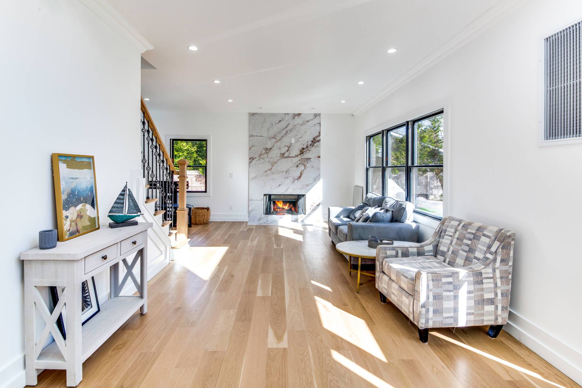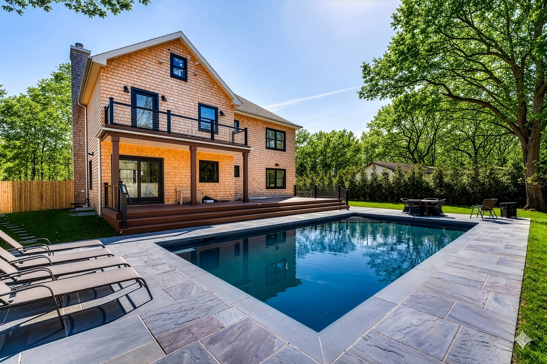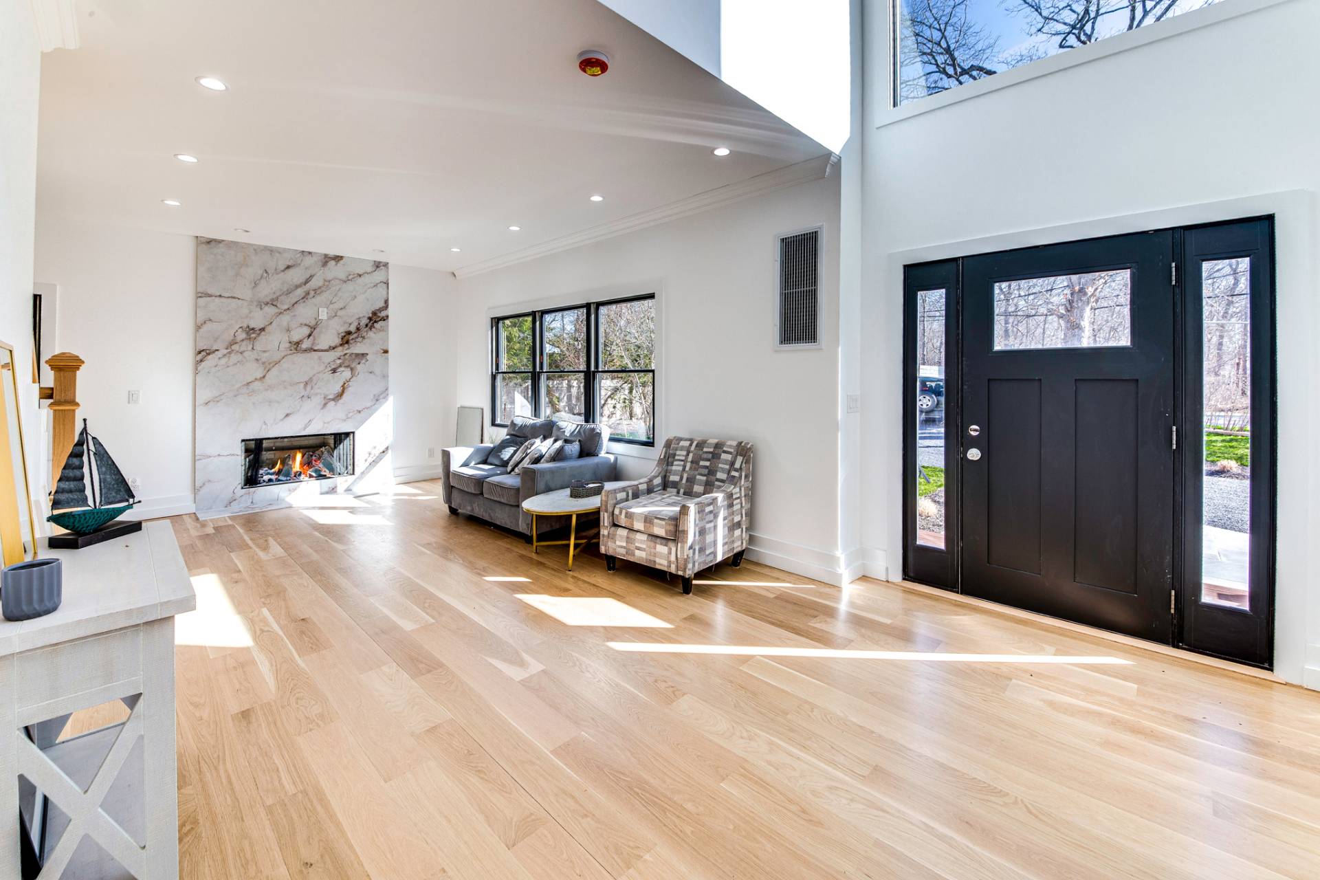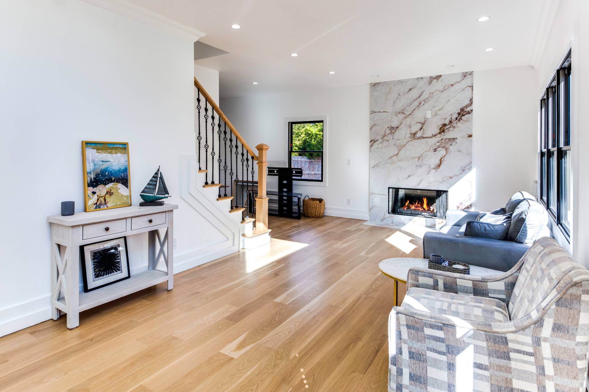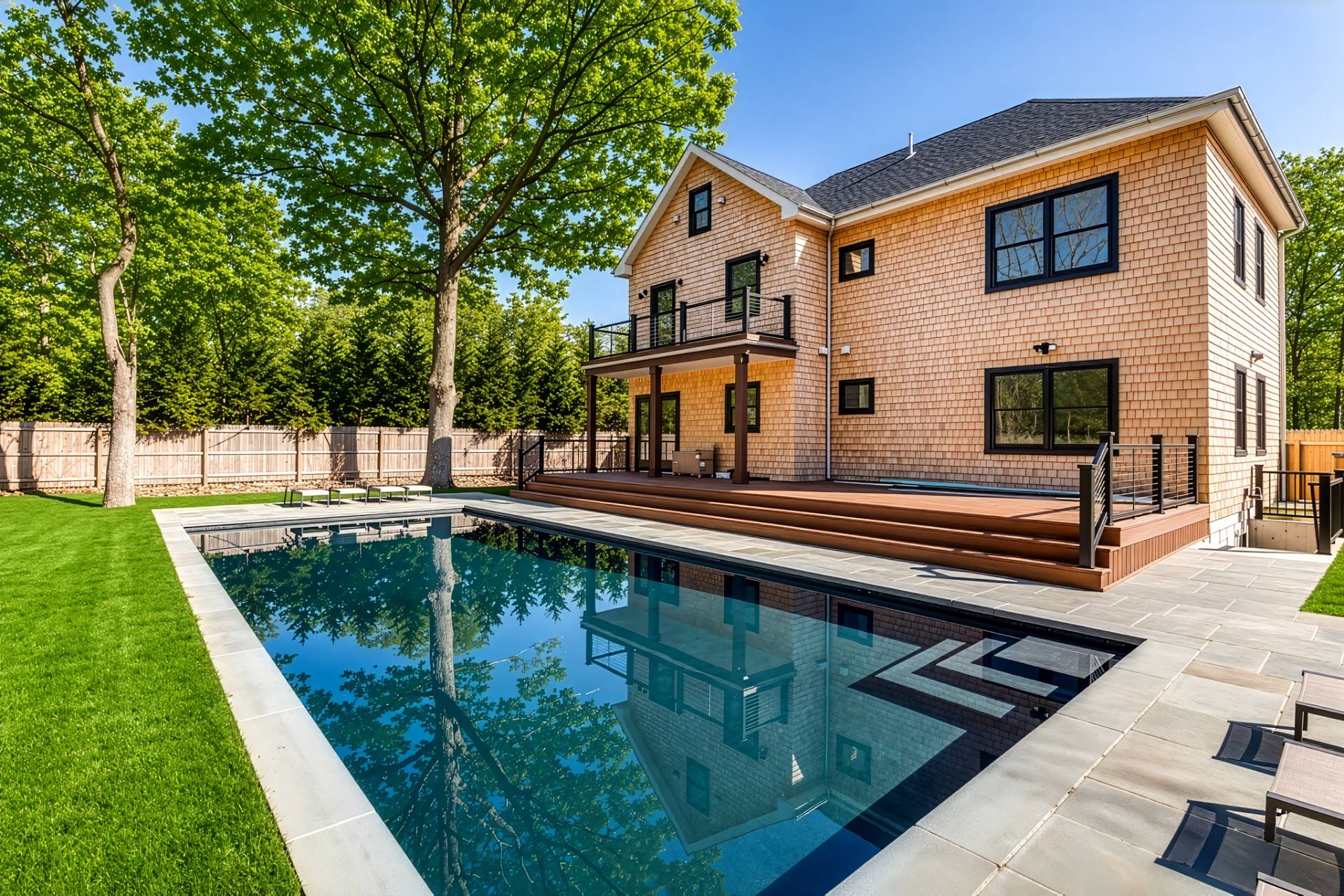 Welcome to 768 Bridgehampton-Sag Turnpike, a beautifully crafted 6 bedroom, 4 bath residence that blends modern luxury with timeless Hamptons style. Ideally located equidistant between Bridgehampton and Sag Harbor, this home offers convenient access to both villages' shops, dining, and ocean beaches. Designed for both everyday living and effortless entertaining, the home showcases exceptional finishes and thoughtful design throughout. The first floor opens with a welcoming foyer leading into a bright living room centered around a cozy gas fireplace. The chef's kitchen, outfitted with premium Bakes & Kropp cabinetry, features stainless steel Wolf, Viking, and Sub-Zero appliances, sleek quartz countertops, and a spacious eat-in area. Sliding glass doors provide seamless access to the outdoor entertaining space and pool. Two well-appointed bedrooms and a full bath complete this level. Throughout the home, 3/4-inch wide plank oak flooring adds warmth and sophistication. Upstairs, the primary suite offers a private retreat with a luxurious bathroom featuring a soaking tub, rain shower, and a private deck overlooking the serene backyard. Two additional bedrooms and a full bath provide comfortable accommodations for guests. The finished lower level boasts 9-foot ceilings and an open-concept layout ideal for entertaining, along with an additional bedroom, full bath, and a separate outside entrance. Step outside to enjoy a timberteck deck the entire length of the house and plenty for everything, perfect for lounging or dining. The 16' x 36' gunite pool is surrounded by an elegant bluestone patio and lush privacy landscaping, creating a tranquil outdoor oasis. This exceptional property offers the perfect balance of comfort, style, and resort-like living in one of the Hamptons' most desirable locations.